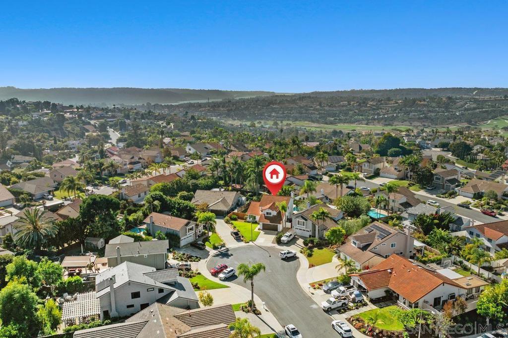 Beautifully updated, this La Costa home blends style and comfort within a thoughtfully designed floor plan featuring both formal and casual living spaces, along with a highly desirable main-floor bedroom. The first level includes inviting living and dining areas ideal for entertaining, as well as an open-concept kitchen and family room anchored by a cozy fireplace. A dedicated laundry room provides convenient access to the attached two-car garage, complete with epoxy flooring, built-in storage, and modern lighting. Upstairs, three additional bedrooms include a spacious primary suite and updated bathrooms with designer finishes, custom vanities, Silestone quartz countertops, and high-end fixtures. The light-filled interior is enhanced by large picture windows and natural oak flooring throughout. Sliding glass doors open to a generous backyard designed for both relaxation and entertaining, featuring a sparkling free-form pool and spa, ample lawn space, and an outdoor shower. Tucked away on a quiet cul-de-sac, the home is just minutes from beaches, golf courses, and top-rated schools. Move-in ready and thoughtfully upgraded, this residence offers an ideal blend of functionality, warmth, and the best of California living.