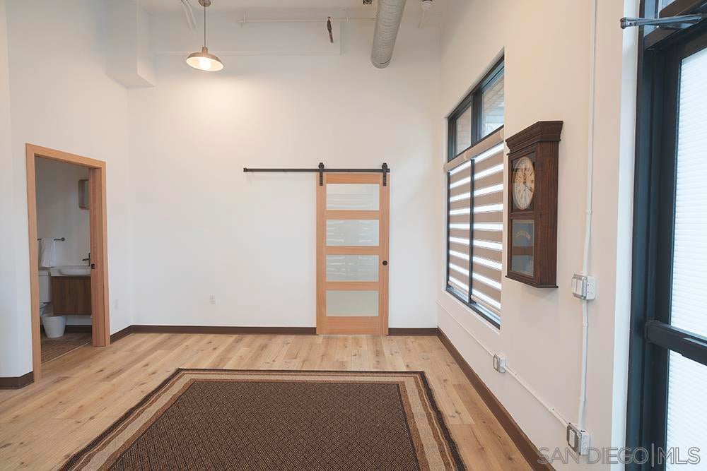 Variance granted condominium. Come savor the breezes of Oceanside's coastal lifestyle! This brand-new, unique live/work condominium offers exceptional flexibility with approved residential and retail use. It's ideal for owner-users, entrepreneurs or even investors. This 1 bedroom and 1.5 bath unit is highlighted by dramatic 15-foot ceilings and a modern storefront style industrial design. Interior is finished with luxury plank flooring, designer Bali "zebra" shades, and a sleek, contemporary aesthetic throughout. The kitchen is fully outfitted with all-new Samsung stainless electric appliances, including a counter-depth French door refrigerator, slide-in range/oven, and advanced microwave. Additional upgrades include shaker cabinetry, quartz countertop, and a new in-unit washer/dryer. Building features include fire sprinklers, central alarm system, and two exclusive parking spaces. Located in a prime Oceanside location, the condo is approx. 1 mile to Camp Pendleton's San Luis Rey gate and directly adjacent to San Luis Rey River. Seller financing available for qualified buyers. Buyer is required to purchase an annual Business License with the City of Oceanside currently $53.00. Photos are of sold staged unit.