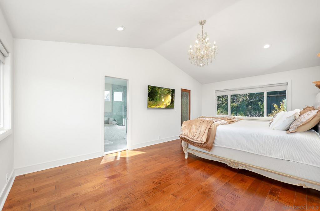 A dramatic re-imagining of California coastal living — this sleek, modern estate perched in North La Jolla delivers sweeping eastern and city-skyline views from multiple vantage points. Vaulted ceilings and skylights flood the interior with natural light, while large windows frame horizon views that shift from sunrise warmth to shimmering nighttime cityscapes. Three expansive view decks, along with generously proportioned living areas anchored by a dramatic, elongated fireplace, create a home that balances grandeur with comfort. The chef’s kitchen opens seamlessly to the great room with stone countertops and high-end finishes, ideal for both casual family meals and entertaining. Hardwood floors and cathedral ceilings throughout the home create a flowing, elegant atmosphere. With three fireplaces, split-level zones for climate control, two water-heaters, and a 3-car garage — the home was rebuilt with no expense spared. This is more than a home; it’s a rare opportunity to own a fully renovated, view-driven estate that pairs modern luxury with the signature La Jolla lifestyle.