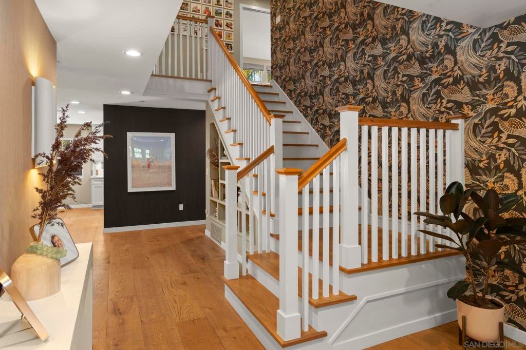 Amazing home W of 5. Rebuilt in 2019. Stunning chef’s kitchen opens to a large family room with 17’ doors that connect indoor/outdoor living. Thoughtful design details throughout, including custom lighting, designer wallpaper, and a beautifully updated fireplace. The luxurious primary suite has been completely remodeled. The yard is a tropical retreat designed for year-round entertaining, complete with pool/spa, cabana, fire pit, built-in BBQ, covered patio with TV and lounge area & more. Additional features include high-end landscape lighting, two EV chargers in the garage, a 14.2 kW solar system, and two Tesla PowerWall units. This is more than a home—it’s a lifestyle. In the heart of Leucadia—renowned for its vibrant coastal lifestyle—this exceptional Craftsman home sits west of the 5 on a quiet cul-de-sac, just moments from beaches, shops, and restaurants. Rebuilt in 2019 and continually enhanced since, the residence blends uncompromising quality with comfort, efficiency, and modern living. Spanning 3,992 sq ft, the flexible floor plan includes 5 bedrooms, an office, bonus space, and 5.5 bathrooms. The stunning chef’s kitchen features high-end appliances, quartz countertops, a spacious walk-in pantry, wine fridge, custom tile backsplash, and opens to a large family room with dramatic 17-foot pocket doors that seamlessly connect indoor and outdoor living. Thoughtful design details are found throughout, including custom lighting, designer wallpaper, and a beautifully updated fireplace with custom tile and a walnut mantle. The luxurious primary suite has been completely remodeled with a new soaking tub, custom tile, vanity, modern lighting, LED mirrors, heated bidet toilet, and a professionally designed closet. The upstairs features vaulted ceilings. The backyard is a private tropical retreat designed for year-round entertaining—complete with a pool and spa, cabana, fire pit, built-in BBQ, covered patio with TV and lounge area, sport court space, and versatile storage shed. Additional features include high-end landscape lighting, upgraded electrical panel, two EV chargers in the garage, a 14.2 kW solar system, and two Tesla PowerWall units. Walk or bike to the beach and experience the best of Leucadia living. This is more than a home—it’s a lifestyle.