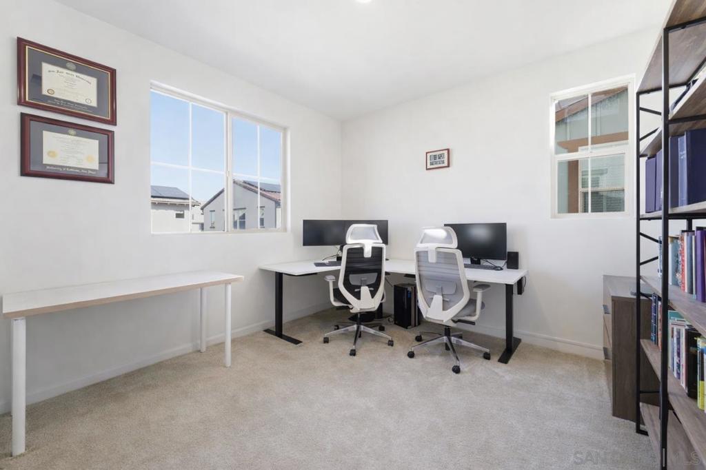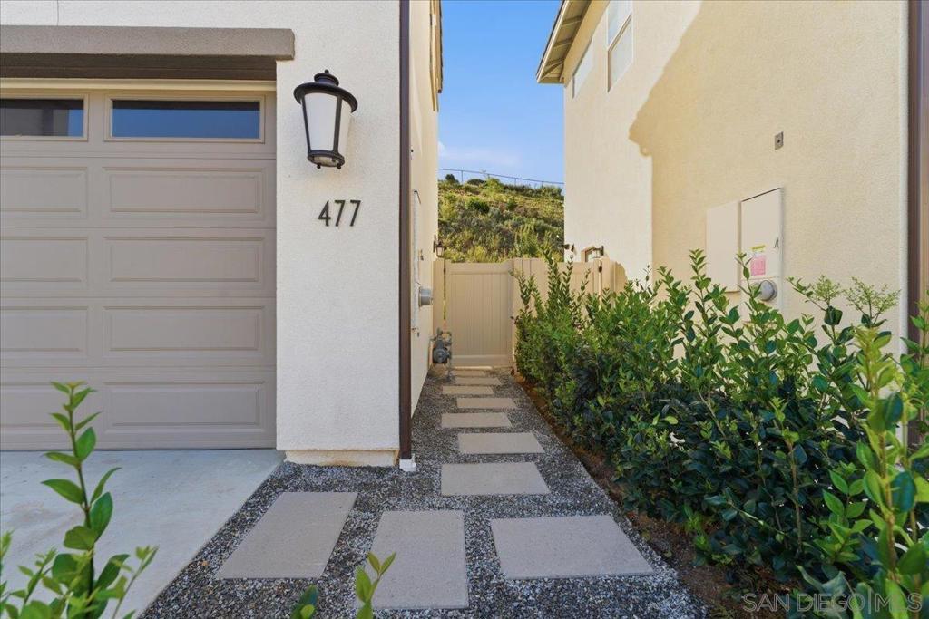Welcome to 477 Village Greens Way, located in the gated community of Mission Circle in San Marcos. Built in 2022, this home offers 3 bedrooms, 2.5 bathrooms, and a versatile main level office or den ideal for working from home, which can easily converted to a 4th bedroom. The layout is designed for everyday comfort with an upstairs laundry room, dual closets in the primary suite, and smart home features throughout. The home is energy efficient and thoughtfully upgraded for modern living. Enjoy a private, low maintenance backyard that is fully fenced and perfect for relaxing or entertaining. Mission Circle residents have access to resort style amenities including a pool and spa, BBQ areas, tot lots, and a dog park. The location offers convenient access to shopping, dining, and major freeways including the 15 and 78. A planned 16.5 acre park nearby will feature tennis, pickleball, basketball courts, and more. Move in ready and built with today’s lifestyle in mind, this home is a great opportunity in one of San Marcos’ most desirable newer communities.