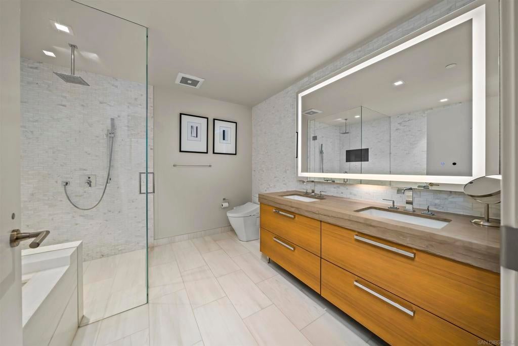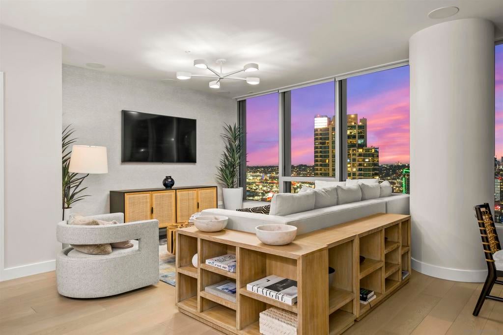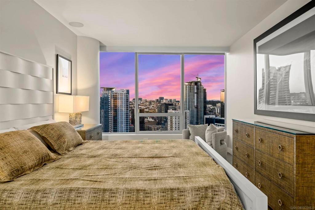 Experience elevated living at Pacific Gate in this fully furnished 30th-floor residence offering breathtaking city skyline and bay views. This 2-bedroom, 2-bathroom home features a spacious and thoughtfully designed layout with floor-to-ceiling windows, a private balcony, and power shades throughout. The primary suite includes a large walk-in closet and a spa-inspired bathroom with both a soaking tub, a separate shower and heated floors. The residence comes fully equipped, including furniture, kitchenware, plates, and glassware, providing a true turnkey living experience. Two assigned parking spaces are included. Pacific Gate offers world-class amenities including a pool, spa, steam and sauna, state-of-the-art fitness center, private movie theater, business center, conference room, and a dedicated dog relief area. Residents also enjoy concierge and security services, access to a fleet of four luxury vehicles, and the unique benefit of reserving the building’s private yacht at a preferred rate. A rare opportunity to lease a fully furnished residence in one of San Diego’s most iconic luxury towers.