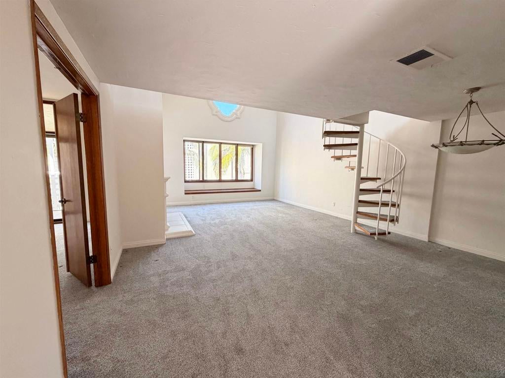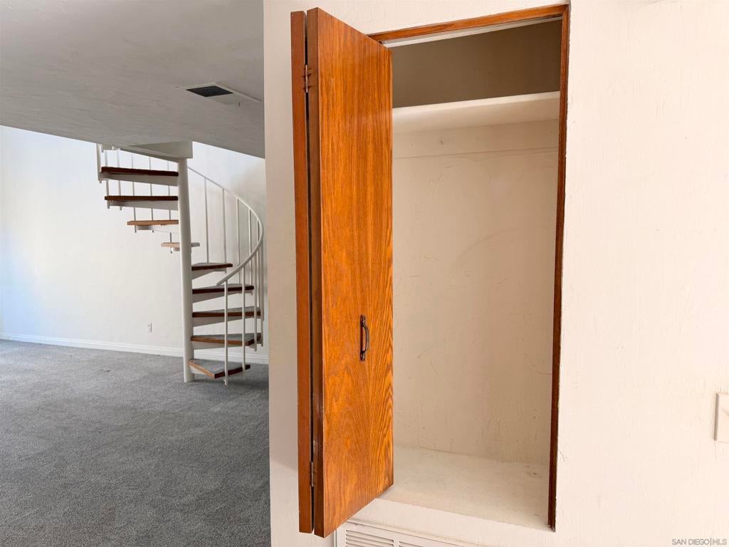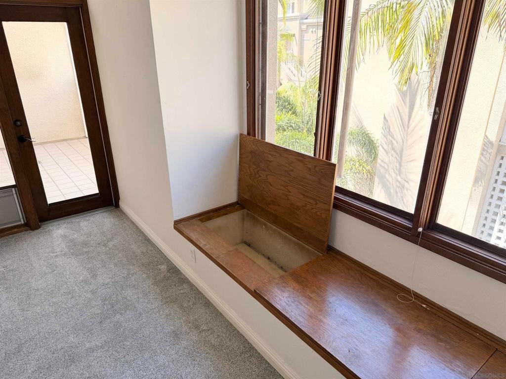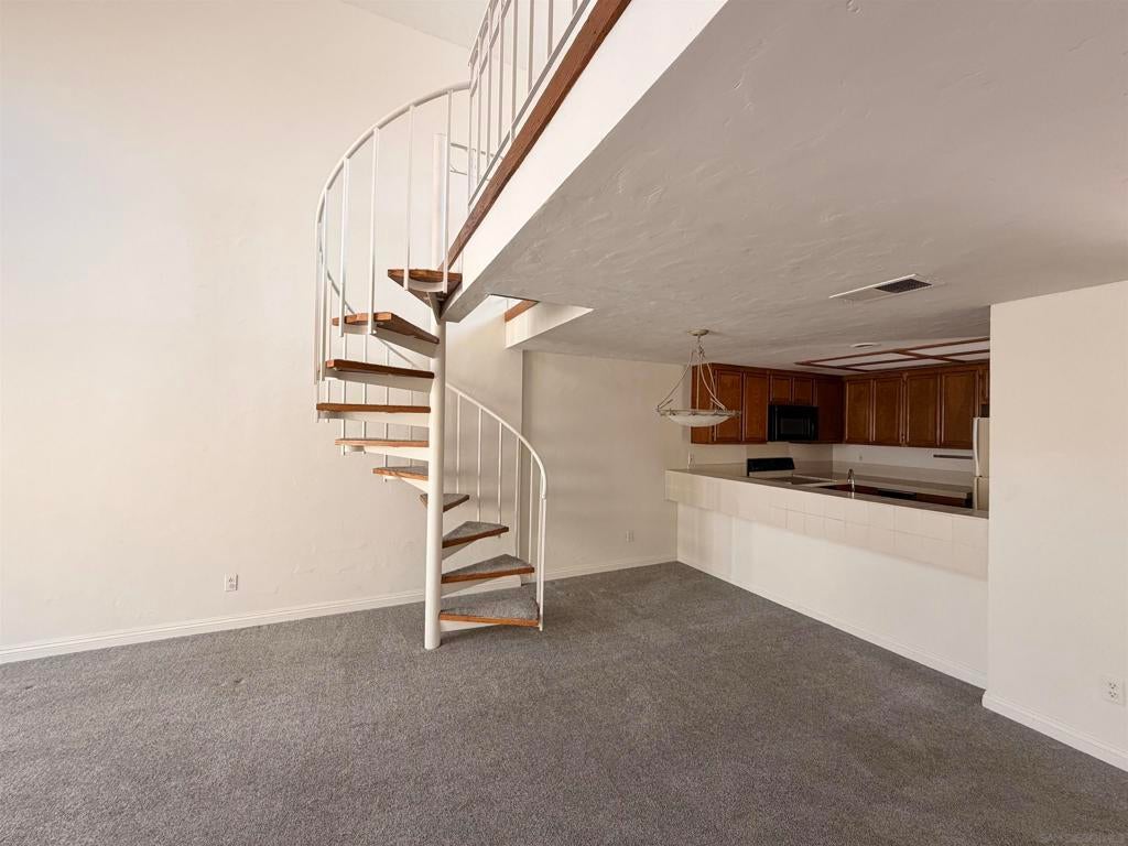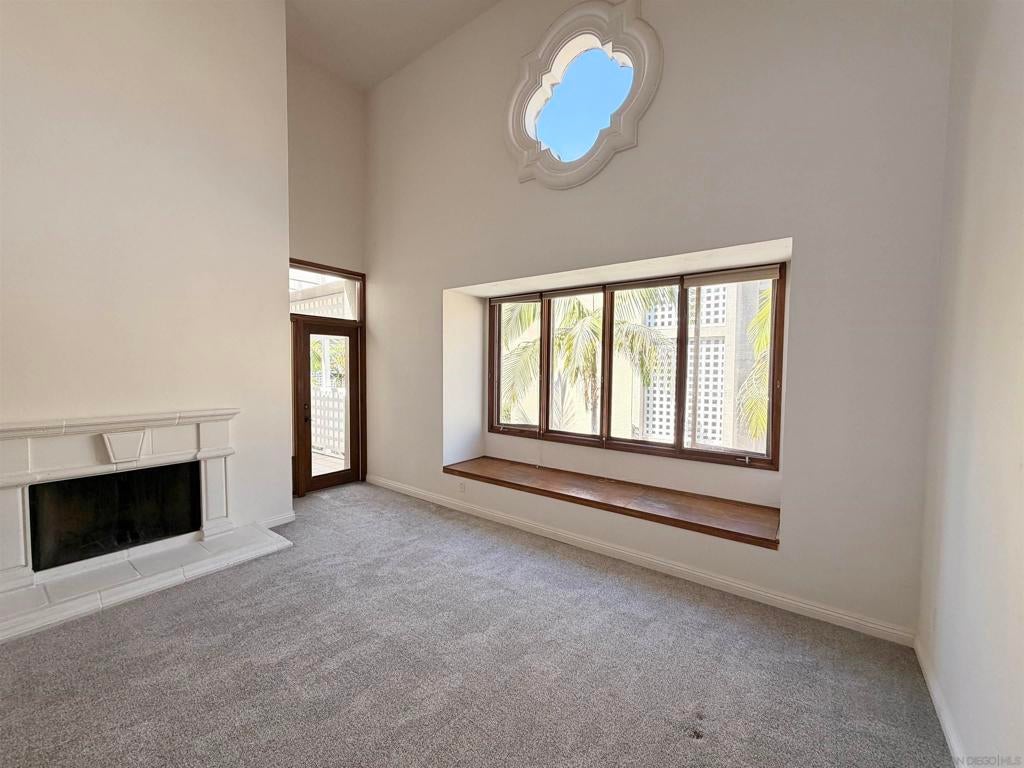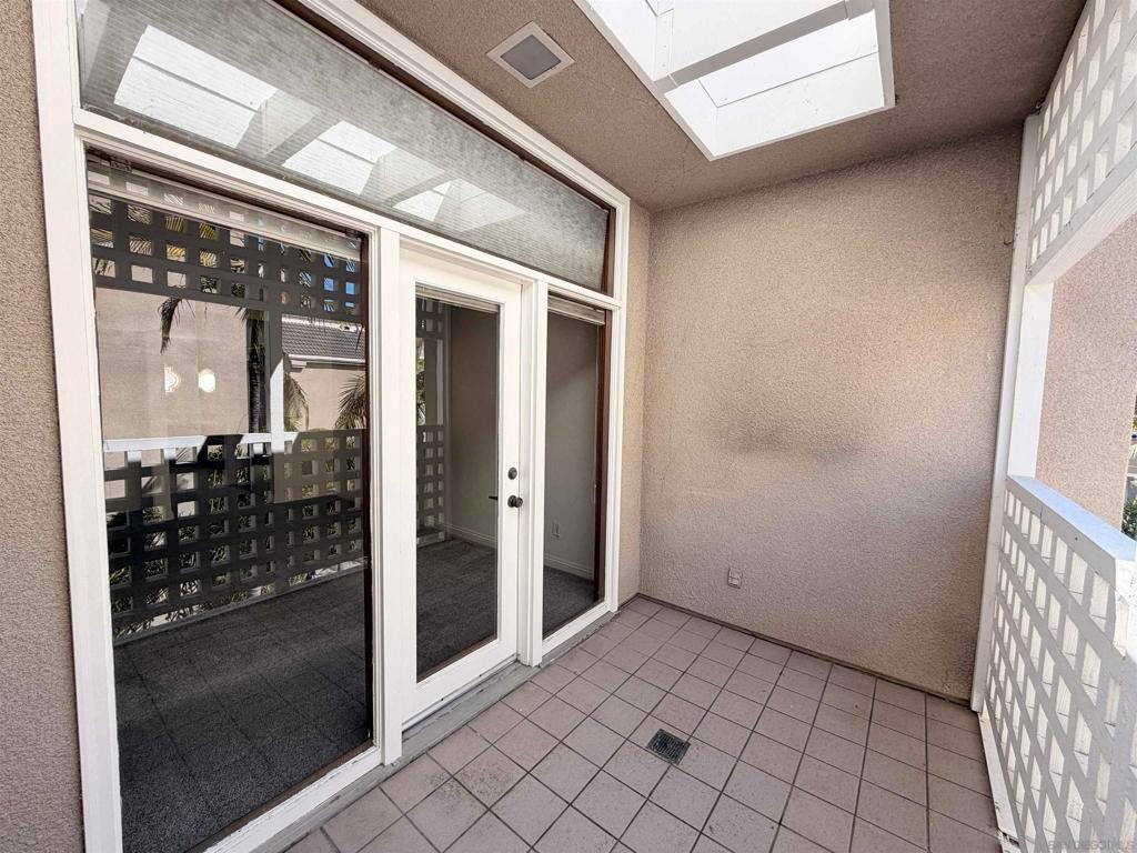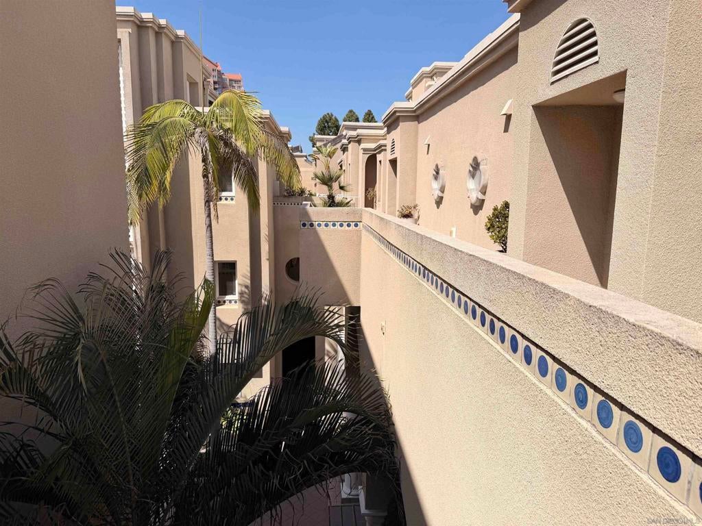 Beautifully designed residence in the heart of UTC featuring soaring ceilings and an open, light-filled layout. This unique unit offers a spacious living area with fireplace, large windows, and abundant natural light throughout. A charming spiral staircase leads to a versatile loft space—perfect for a home office, guest area, or additional living space. The kitchen opens to the dining and living areas, creating an ideal flow for everyday living and entertaining. Enjoy indoor-outdoor living with a private balcony overlooking a lush courtyard with fountain. The generously sized primary bedroom offers ample closet space and convenient access to the bathroom. Located in a well-maintained community with resort-style amenities including a pool, spa, and tennis courts. Assigned parking included. Prime location near UCSD, Westfield UTC, shopping, dining, and easy freeway access. Ideal opportunity for homeowners or investors seeking a central San Diego lifestyle.
