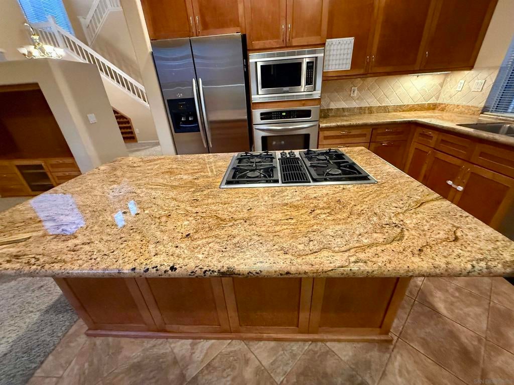 Beautiful Scripps/La Merida perfectly situated on a flat, end CUL DE SAC street! High vaulted ceilings. Modern Granite Kitchen With Center Island. Lots of cabinets, Granite counter tops. All Stainless Steel Appliances package. Gorgeous kitchen remodel with custom cabinetry, granite counters, stainless steel appliances and tile flooring. Floor plan offers 3 bedrooms plus loft(Large Bonus Room without closet) upstairs. spacious living & dining areas & indoor laundry with washer & dryer. Dining room has added built in shelving and wine racks. Neutral decor throughout. Lovely, private back yard with patio and lawn areas. Minutes to Schools, malls, hwy, Starbucks, restaurants. Quiet end of cul de sac charmer.$4650 rent & $4650 deposit with good credit moves you in.MUST SEE HOME! MUST SEE END UNIT CHARMING HOME BY QUIET CUL-DE-SAC IN DESIRABLE SCRIPPS/LA MERIDA. TRAVERTINE TILE ENTRY/BATH, VAULTED CEILINGS, GRANITE KITCHEN COUNTERS WITH TUMBLED TRAVERTINE BACKSPLASH, LARGE CENTER ISLAND IN KITCHEN, UPGRADED KITCHEN FLOOR TILE, UPGRADED CARPET, DESIGNER PAINT, 2-INCH WOOD BLINDS & RECESSED LIGHTING THROUGHOUT, LARGE LOFT(AS 4th BEDROOM BUT NO CLOSET) WITH PLANTATION SHUTTERS, MASTER HAS HIS & HER WALK-IN CLOSETS AND NEW SHOWER ENCLOSURE, CEILING FANS IN FAMILY ROOM AND MASTER BEDROOM, BEAUTIFUL LANDSCAPING WITH BLOOMING COLORS AND LARGE PRIVATE PATIO. PREFER 13 MONTHS LEASE.TENANTS PAY WATER/ELECTRICITY/GAS.GOOD CREDIT NEEDED.HIGHLY RATED SCRIPPS RANCH SCHOOLS.