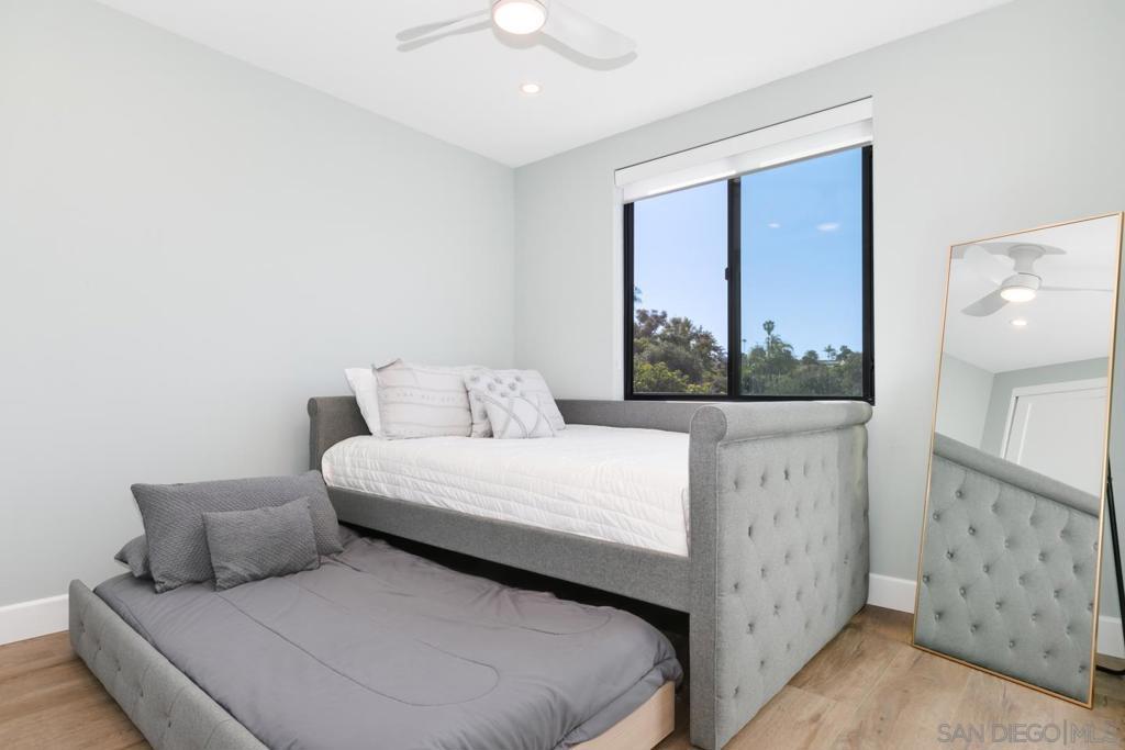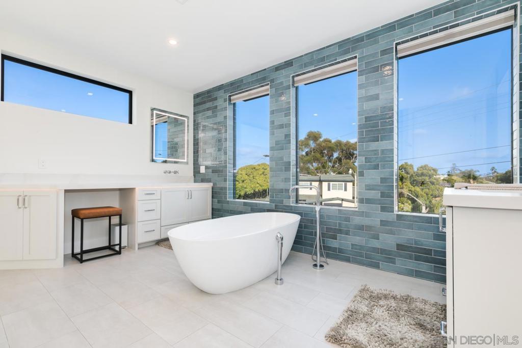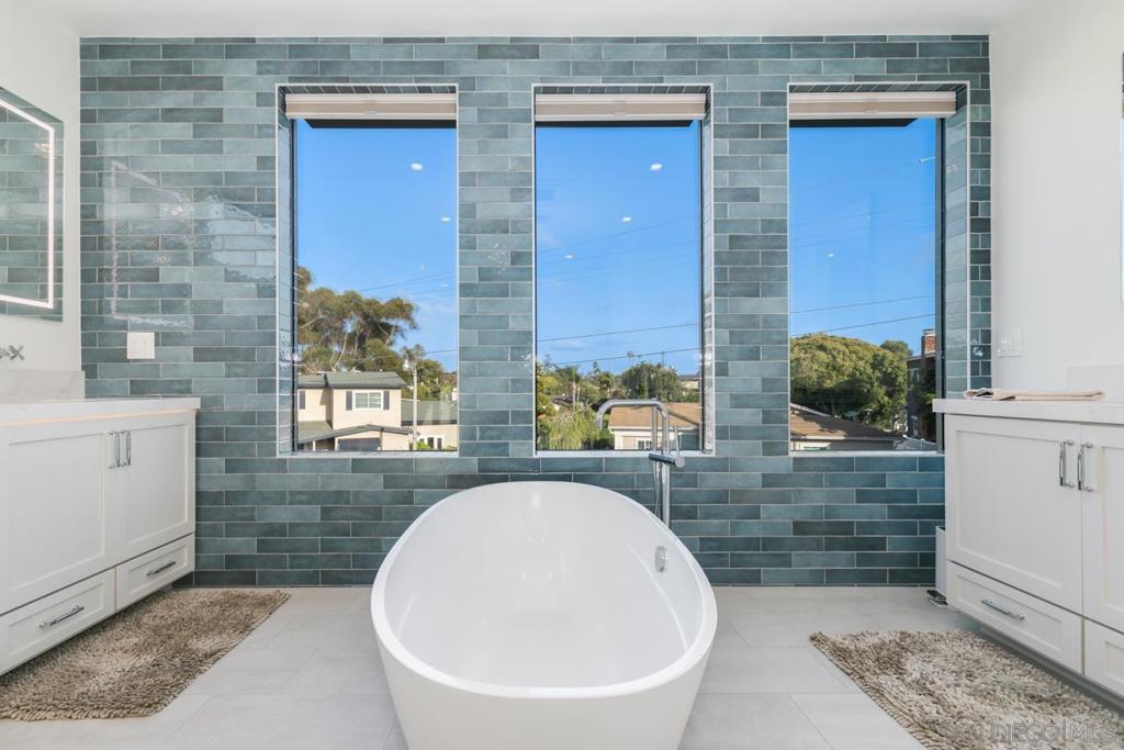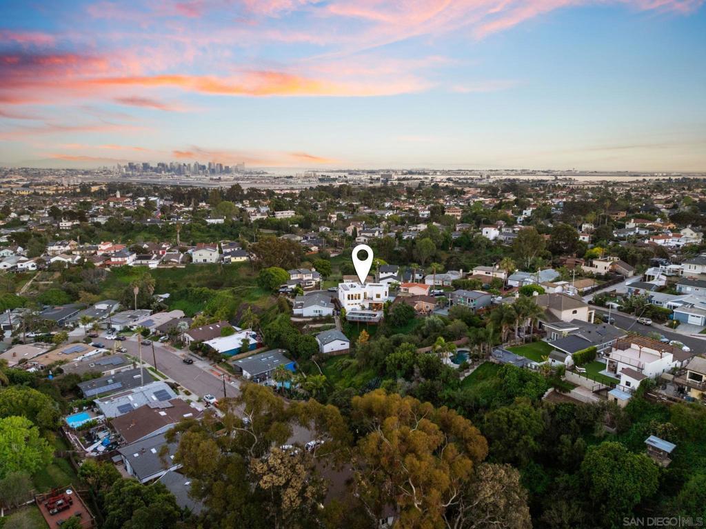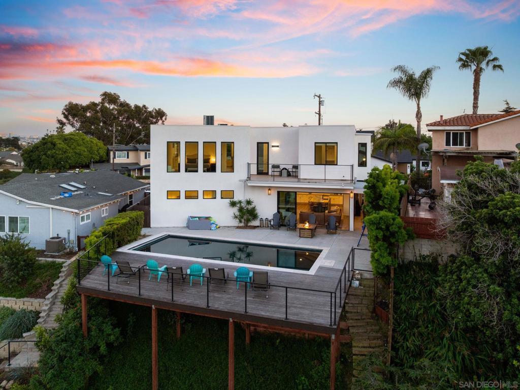 Experience elevated coastal living in this exceptional, 5-bedroom, 4.5-bath, 3,269 sqft home located in the highly coveted Loma Portal neighborhood of Point Loma. Unlock additional income potential with the first-floor ensuite conversion into a separate ADU or in-law suite. Currently operating as a top-performing short-term rental generating $270K+ annually, this property has projected upside exceeding $300K+ through strategic amenity enhancements. Designed for luxury living through high-performance rental income, the home features an open-concept layout anchored by a grand staircase, a chef’s kitchen with premium stainless steel appliances and a built-in Thermador espresso system, and fully integrated motorized blinds. Fleetwood floor-to-ceiling glass systems define the home, featuring a dramatic oversized pivot front entry and dual rear pocketing glass walls that fully retract to create seamless indoor-outdoor living. The private outdoor retreat includes a heated saltwater pool, recessed ceiling-mounted patio heaters, and multiple lounge and dining areas. Convert the expansive lower yard space for a mini pickleball court, further enhancing guest appeal and revenue potential. Energy-efficient features include solar panels integrated with a TPO roofing system and a 220V EV charging outlet in the attached two-car garage. Situated on a quiet cul-de-sac with views of SeaWorld fireworks, this home is just minutes from Liberty Station, Sunset Cliffs, San Diego’s iconic beaches, waterfront dining, and downtown.