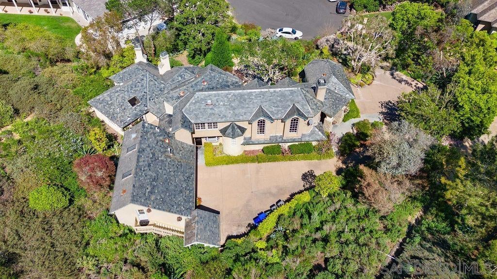Situated behind the gates of Del Mar Country Club, this beautiful chateau presents a rare opportunity to reimagine and make your own. Privately positioned at the end of a cul-de-sac on an elevated homesite, the residence enjoys serene golf course views and a sense of quiet seclusion.Thoughtfully designed, the main level features a desirable ground-floor primary suite, a dedicated office with 2 en-suite bedrooms on the second floor. A detached studio apartment above the garage provides flexible space for guests or a private retreat. Complete with a timeless slate roof and set on a private lot, this home offers the perfect canvas to create a truly bespoke estate in one of Rancho Santa Fe's most coveted communities.