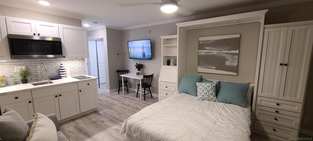 Furnished ground level unit with assigned parking space in close proximity to the unit. Enjoy the lovely community of La Playa Village, adjacent to the San Diego Yacht Club, great shops, and Shelter Island. Walking distance to restaurants, the Bessemer Trail and beautiful scenery along the boat docks & clubs. The Yacht Club Condo complex has a central pool, multiple laundry rooms & great community room with gym, pool table & tv area. Unit has a new queen memory foam mattress, new sofa, dining area and kitchenette. Full bathroom. Available with security deposit, credit check and completed application on rentspree. Pets only with permission and pet fee/deposit. No smoking. No vaping. Lease required. Short term monthly is higher rate