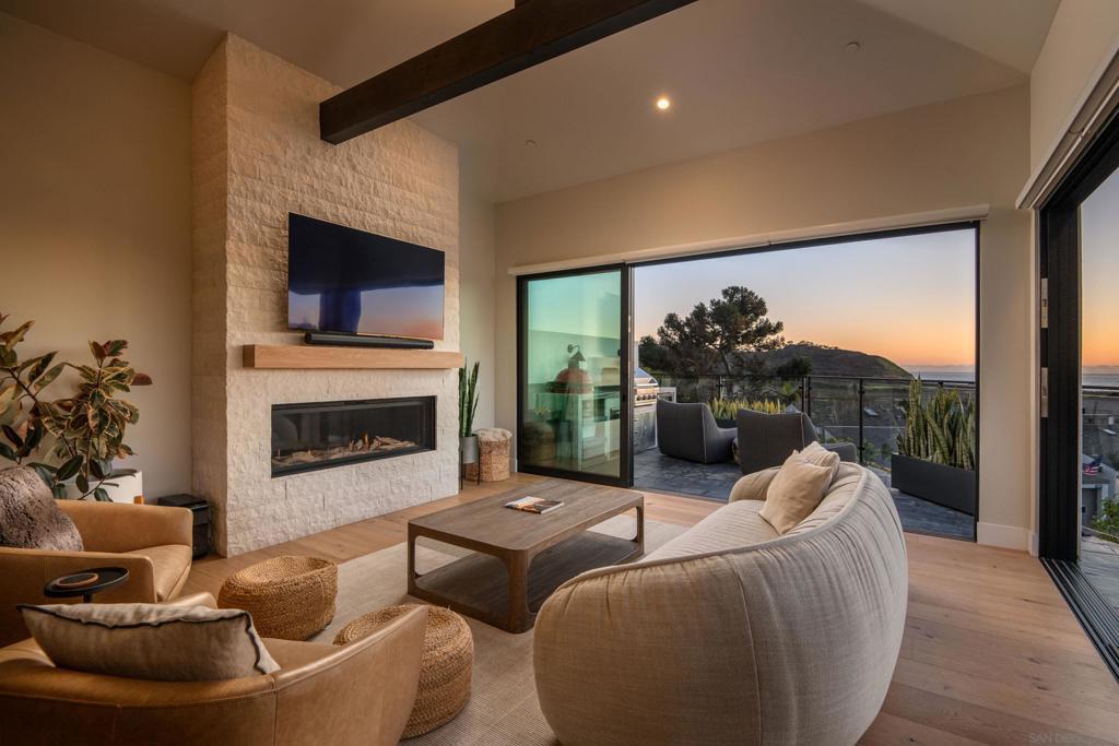 The four most compelling words in coastal real estate: Del Mar New Construction. Completed in 2023, this stunning contemporary residence is perched atop a premier southwest-facing promontory in Del Mar Heights, showcasing truly unobstructed ocean vistas framed by dramatic floor-to-ceiling glass. Designed to capture both light and landscape, the home offers a seamless indoor-outdoor experience, with a soaring, vaulted great room that effortlessly connects the living area and chef’s kitchen—each oriented toward sweeping coastal panoramas. From nearly every vantage point, enjoy iconic views spanning Torrey Pines State Beach, Los Peñasquitos Lagoon, the Torrey Pines Gliderport, and the renowned Torrey Pines Golf Course. This newly built 4-bedroom, 4.5-bath home embodies the quintessential Del Mar lifestyle—where ocean views are not a luxury, but a daily backdrop, and walkability to coffee, dining, and the beach is simply expected. A rare offering that delivers both the irreplaceable appeal of location and the unmatched advantage of brand-new construction.
