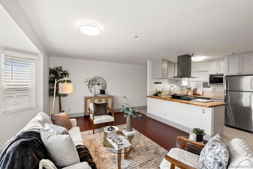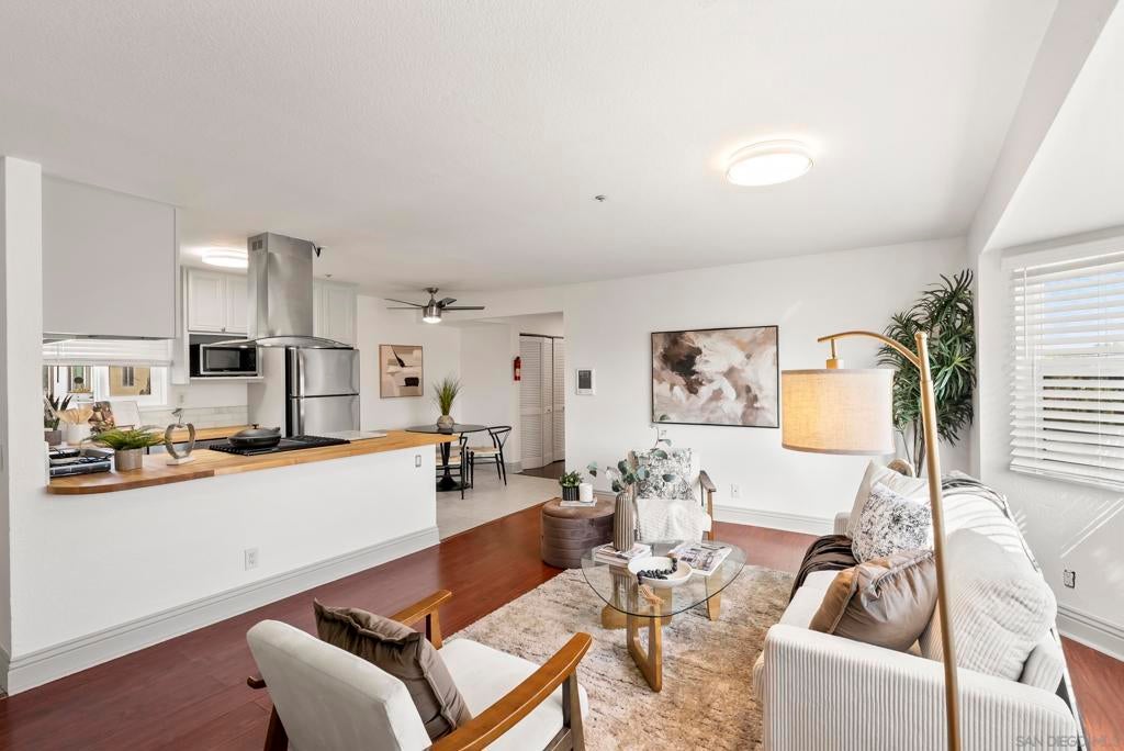 VA APPROVED! Rarely available 2 bed 1 bath condo in Imperial Beach with a spacious, functional layout and laminate flooring throughout. The kitchen has been thoughtfully remodeled with a custom backsplash, butcher block countertops, and newer appliances, giving the space a fresh, modern feel. The entire unit has also been recently repainted, making it truly move-in ready. Additional features include a full-size washer and dryer replaced in October 2021 and a water heater replaced in June 2020. Both bedrooms offer comfortable space and great natural light. The unit includes two dedicated side-by-side parking spaces with storage in a gated underground garage. Ideally located less than a mile from the beach, 15 minute drive to Coronado, close to local shops, dining, walking/biking trails, and several naval bases.