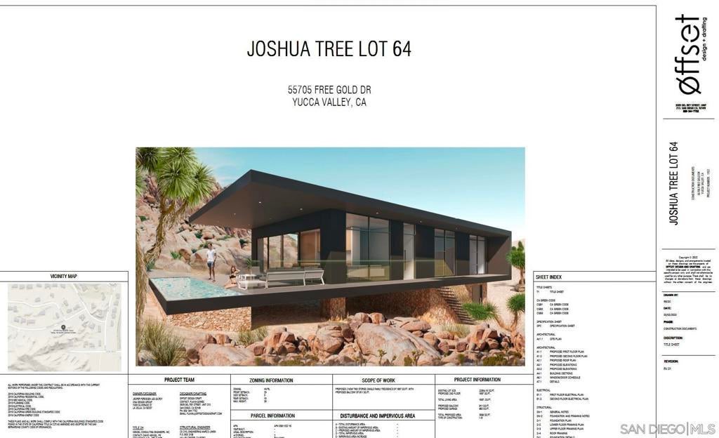 Rare and beautiful parcel located on a paved road above town. This elevated site offers great views, privacy, and no through traffic, situated in the desirable Juniper Terrace neighborhood known for its peaceful setting. Property includes custom modern home plans ready for submission, providing a streamlined path to development. The proposed contemporary residence is thoughtfully designed to maximize the surrounding desert landscape and indoor-outdoor living. City water, electricity, and fire hydrant available at the street. Property has already been assigned an official street address. Conveniently located near Joshua Tree National Park, dining, and local amenities, while enjoying cooler temperatures up to 15 degrees lower than the Palm Springs area. Ideal for a primary residence, second home, or investment opportunity. Buyer to investigate zoning, permits, short-term rental regulations, and all development requirements with the County of San Bernardino. Buyer to investigate zoning, permits, and all development requirements with the County of San Bernardino.