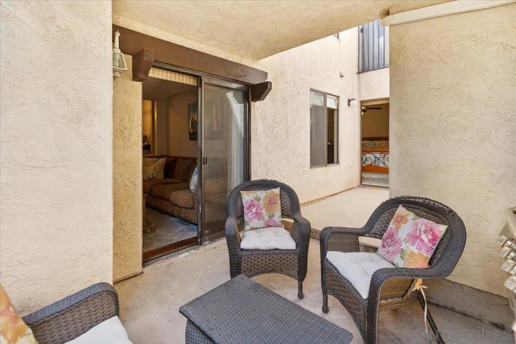 Tucked within a serene Del Mar enclave west of I-5, this thoughtfully updated single-level residence offers effortless coastal living in one of San Diego’s most coveted beachside communities. Rich wood flooring and timeless finishes set the tone, while an open-concept design creates a natural flow between living spaces. The inviting living room is anchored by a striking floor-to-ceiling stone fireplace with a complementary granite hearth—an elegant focal point for both relaxing evenings and refined entertaining. Expansive sliding doors extend the living experience outdoors to a private patio, perfectly suited for al fresco dining and seamless indoor–outdoor gatherings. The well-appointed kitchen blends style and functionality with stainless steel appliances, generous granite countertops, and designer lighting, all opening gracefully to a versatile dining area ideal for both intimate meals and hosting. Privately situated, the spacious primary suite offers a tranquil retreat with a large walk-in closet, direct patio access, and an ensuite bath featuring abundant cabinetry and stone surfaces. A well-proportioned secondary bedroom and beautifully updated guest bath complete the interior. Additional highlights include in-unit side-by-side laundry, a one-car garage with extra storage, and an additional permitted parking space. Residents enjoy a lushly landscaped community with a pool and spa, ample guest parking, and exceptional walkability to acclaimed dining, shopping, and everyday conveniences. Just moments from Del Mar’s pristine beaches, the Village, Torrey Pines State Natural Reserve, the iconic racetrack and fairgrounds, and world-class golf—this is coastal living at its finest.
