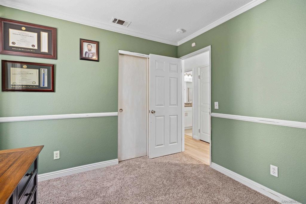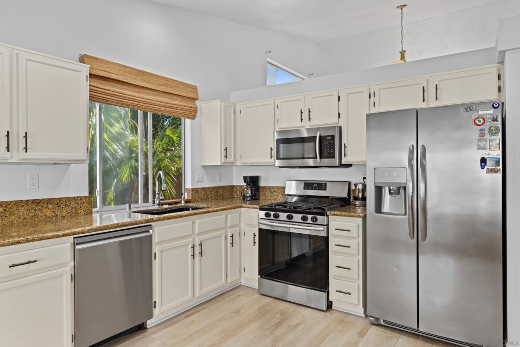 Remodeled single-story home in the desirable Santa Fe Hills community of San Marcos. Move-in ready, with solar that covers the electricity bill. Bright and open floor plan with high vaulted ceilings, luxury vinyl plank flooring, and modern finishes throughout. The kitchen opens to the living, dining, and outdoor areas, ideal for everyday living and entertaining. Updated bathrooms, a spacious primary bedroom with direct backyard access, and an oversized lot with no rear neighbors. Backyard includes a built-in BBQ, fruit trees, and space to relax or entertain. RV parking and access available. Conveniently located near Cal State San Marcos, Palomar College, schools, trails, shops, and dining.