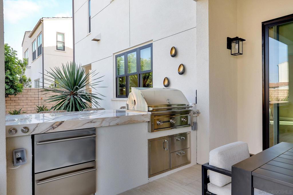A private casita with its own entrance and full bath makes this Pacific Highlands Ranch home one of the more versatile floor plans you’ll find in Carmel Valley; whether you’re housing extended family, a long-term guest, or simply want a completely separate space to work from home. Inside, the open layout centers around a large kitchen with generous storage and counter space that serious cooks will appreciate. The great room flows naturally toward the covered California room, a genuinely impressive outdoor living space built around a custom BBQ and designed for year-round use. It’s the kind of setup that makes you rethink how much time you actually need to spend indoors. Upstairs, the primary suite delivers with a beautifully finished bath and an oversized balcony that stands out even by Carmel Valley standards, the kind of space where a morning coffee or evening wind-down becomes a ritual rather than an afterthought. Paid solar, a three-car garage, low-maintenance yard, and a serene waterfall round out the package. Canyon Crest Academy and Pacific Trails Middle School are both within easy reach, and The Village at Pacific Highlands Ranch puts dining and shopping just minutes away.