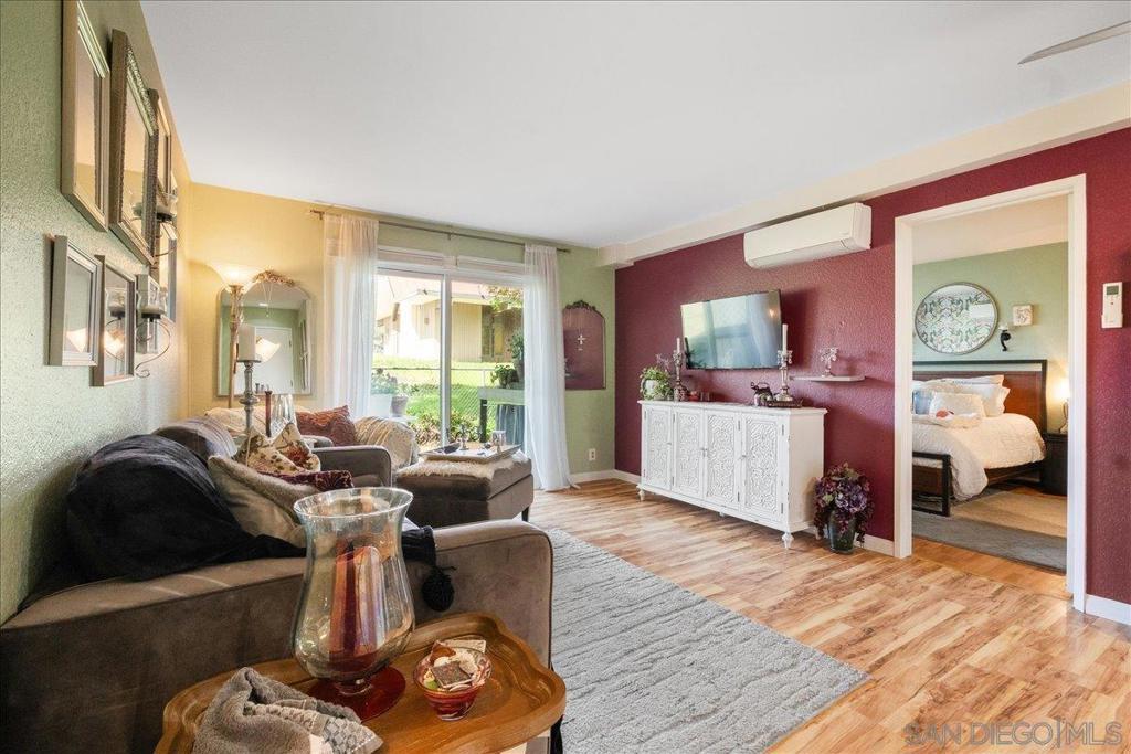 Welcome to this beautifully maintained ground floor condo in a desirable 62+ community in University City. At least one resident must be 62 years or older. This thoughtfully designed home features durable vinyl flooring, two mini-split A/C + heating units, and a private patio complete with a dog run, perfect for comfortable indoor-outdoor living. The open concept layout flows seamlessly with the bedrooms thoughtfully positioned on opposite sides of the unit to provide privacy. The fully equipped kitchen showcases stainless steel appliances and overlooks a peaceful greenbelt, while the patio invites in a refreshing breeze. Residents enjoy a quiet, well-kept community with access to a newly updated laundry facility and a clubhouse featuring a meeting space, pool table, piano, fitness center, and full kitchen. Ideally located across the street from a variety of shops and dining, this home also offers easy freeway access and is just minutes to La Jolla beaches, UTC Mall, and world-class medical facilities. This condo offers the perfect blend of comfort, convenience, and low maintenance living in a welcoming, age-qualified community, move in ready and waiting to be enjoyed!