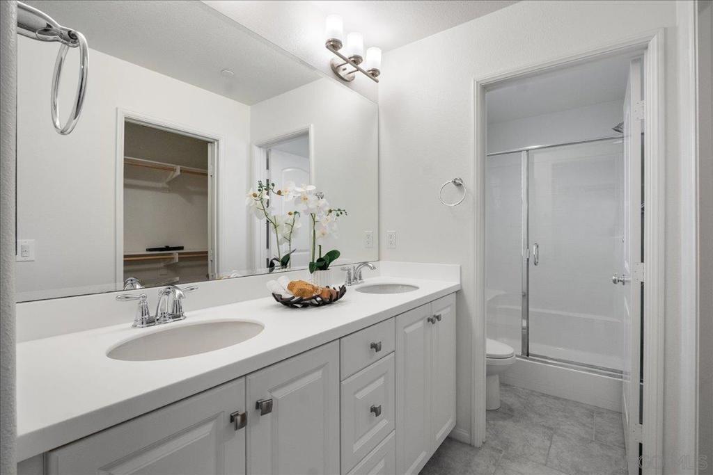 Why rent when you can own? This upgraded, newer home offers an extraordinary opportunity —helping significantly reduce your monthly payment while making homeownership far more attainable. Start building equity in a prime location that delivers Carlsbad-adjacent living without the Carlsbad price, all while securing a below-market rate that makes this home an exceptional value in today’s market. Located in a gated community within the highly regarded San Marcos School District, this home delivers the convenience and lifestyle buyers want. Enjoy walkable access to Starbucks, Target, dining, and everyday shopping, plus quick access to Bressi Ranch, Carlsbad beaches, LEGOLAND, Encinitas, and major employment hubs. Inside, the bright open-concept layout is designed for modern living. The kitchen features white cabinetry, quartz countertops, and a custom island with seating—perfect for gathering and entertaining. Durable laminate plank flooring enhances the main level, while upstairs, two spacious bedrooms each offer en-suite baths, providing flexibility for guests, roommates, or work-from-home setups. Additional highlights include smart home features and a two-car garage with epoxy flooring and overhead storage. Community amenities include a pool, spa, clubhouse, playground, and dog park—everything you need right at home. This is more than a condo—it’s a smart investment in both lifestyle and long-term savings.