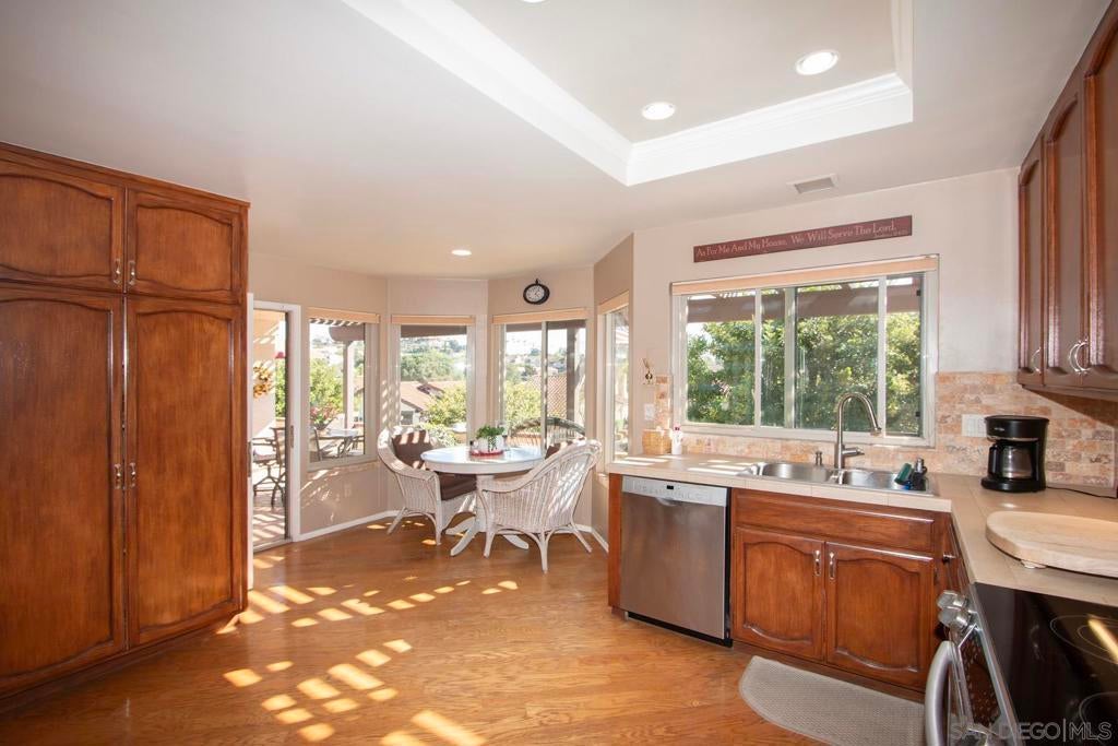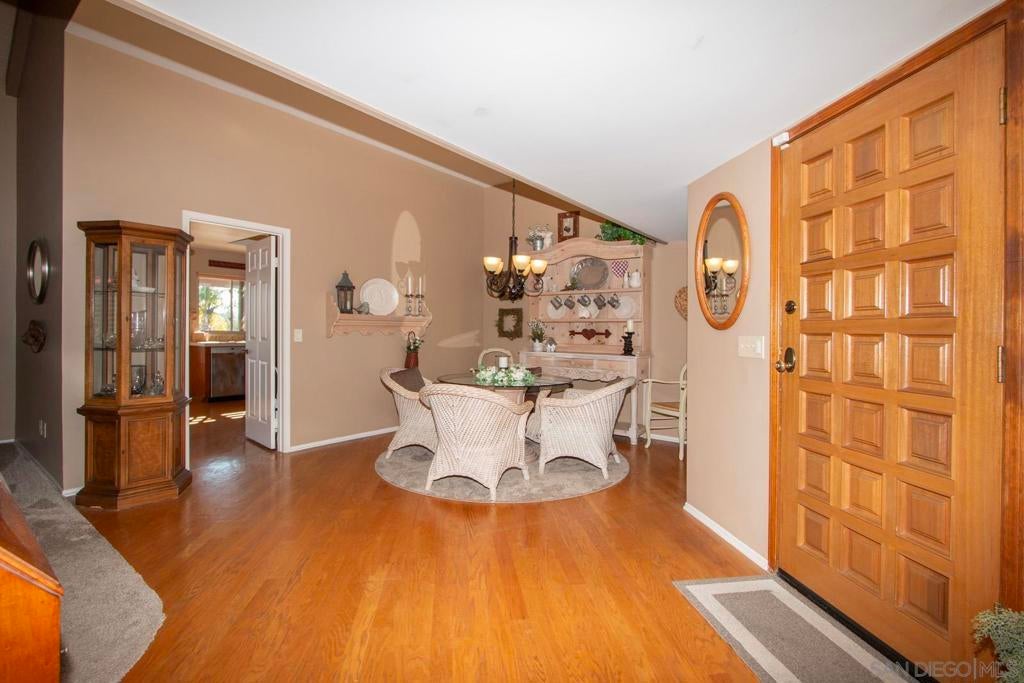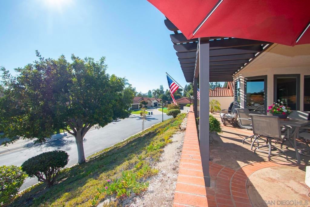Panoramic views from the expansive patio, breakfast nook and primary bedroom of this stunning Chapala home. The wrap-around patio, with patio cover, is perfect for outdoor entertainment. Experience the magic of Chapala from the moment you pass through the private gates and drive through the tree-lined streets until you enter the front door of this magnificent home. Vaulted ceilings in the living room and dining room add warmth and light to this home. Hardwood floors and highly upgraded carpet grace this home throughout. Solar, dual pane doors and windows make this home energy efficient. The third bedroom serves as a cozy den. The oversized garage is large enough for two full-size cars and a golfcart. Join your friends at the Oaks North Community Center for pickleball, tennis, lawn bowling, or other activities. Chapala is a community for those 55 years old and older.