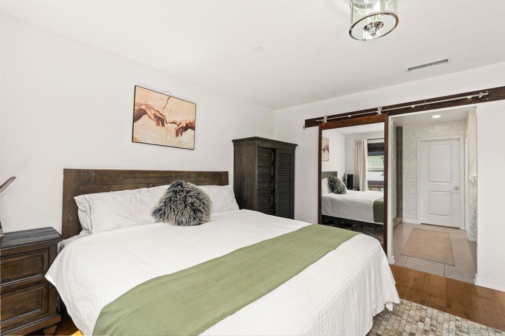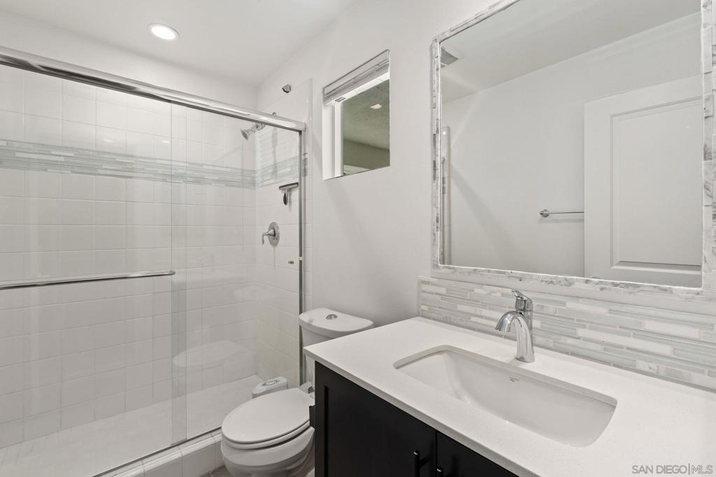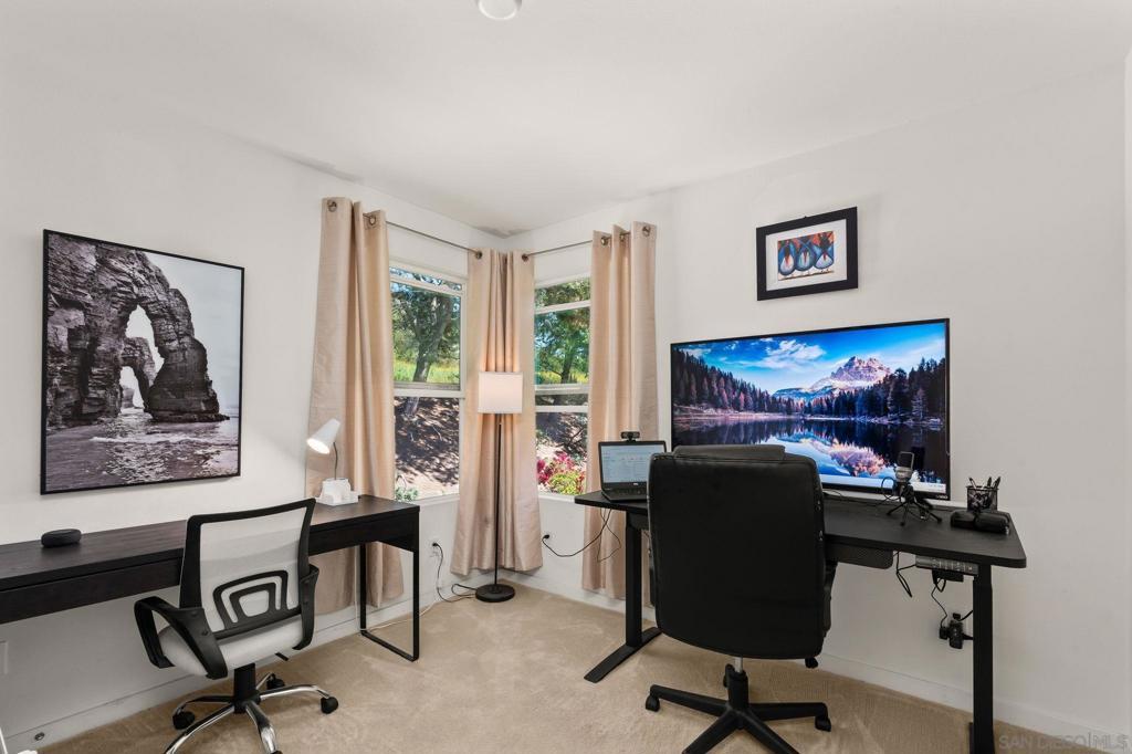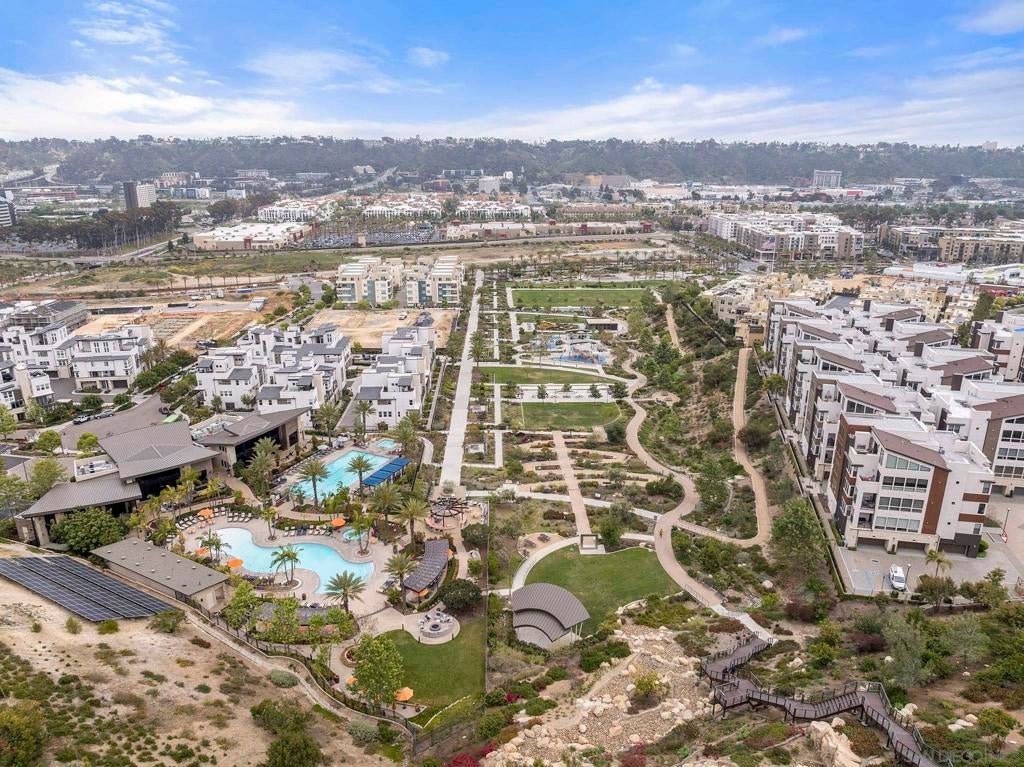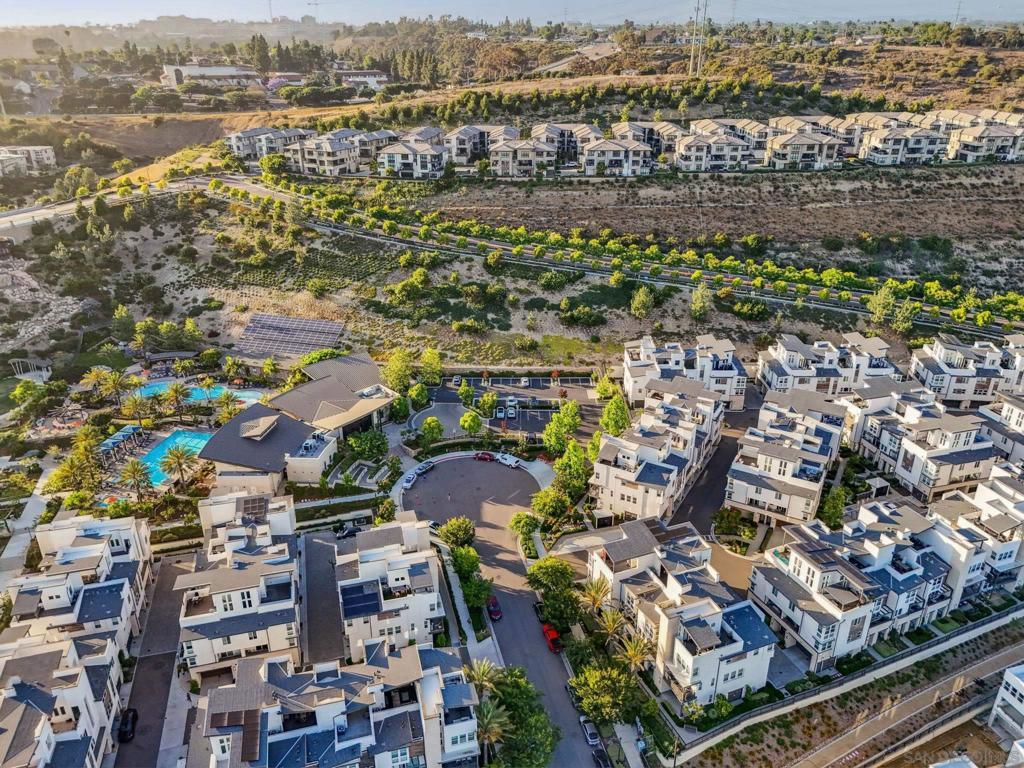 Rare 4 Bed + Office Detached Home in the coveted Apex at Civita! Offers a thoughtfully designed split-level layout and neutral aesthetics. Perfectly suited spaces for both everyday living and entertaining needs. Beautiful hardwood flooring extends throughout most of the home. A separate room off the main living area provides versatility for remote work or additional living needs. The chef’s kitchen features built-in Bosch appliances, sleek quartz countertops, a stylish tile backsplash, and abundant shaker cabinetry—seamlessly connecting to the living and dining areas and cozy covered tile balcony. The staircase transitioning from main to upper level is framed by windows, decorative wrought iron railings and high ceilings. The spacious primary suite serves as a true retreat and welcomes you into the spa inspired bath through sliding barn door access with a walk-in shower, mother of pearl accent wall, dual sinks and ample closet & cabinet space. Two additional bedrooms and a shared bath offer separation on the same floor. The lower level offers added privacy with a bedroom and full bath along with direct access to the 2-car garage + driveway. Step outside to a private backyard garden complete with a living wall, creating a serene outdoor escape. Civita is an award-winning master-planned community known for its modern design, walkability, and vibrant lifestyle in the heart of Mission Valley. With expansive parks and open space, a private resort-style recreation center with pools and fitness facilities and a central location with easy access to all San Diego has to offer.