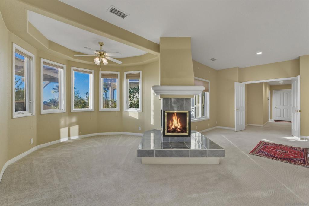 Welcome Home! Spanning 4,500 square feet, this custom estate offers a spacious, open floor plan with stunning 360-degree panoramic views. Enjoy the sunset on your private balcony or clear your mind in your peaceful in-home sauna and pool. Best of South Escondido Estate home living. A large foyer is architecturally designed to capture lovely views from all main living areas. Large master suite on main level with a fireplace, walk-in closet, dual sink, garden tub, separate shower, attached sitting area, indoor sauna, close to North County Fair Mall, shopping centers, restaurants, and freeway lake Hudges. The house is freshly painted throughout, and brand-new epoxy in the garage.
