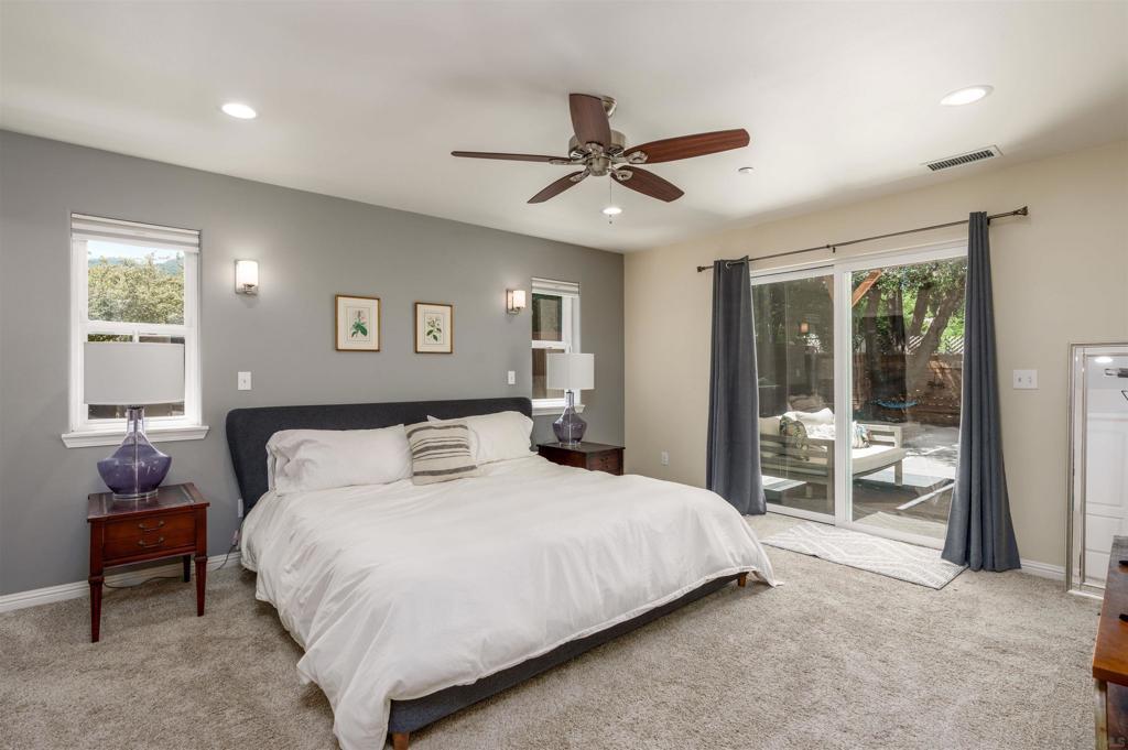 A rare find in Ukiah, a newer home! offering exceptional flexibility and strong income potential with a beautifully designed main residence and a fully equipped ADU. The primary home features 4 bedrooms and 2.5 baths across approximately 2,250 sq ft, with an open-concept layout, modern finishes, and abundant natural light. Elevated positioning provides a unique layout, rear access at ground level with an upper-level street presence in front. The chef’s kitchen showcases a large center island, custom cabinetry, and seamless flow into the dining and living areas—perfect for everyday living and entertaining. The spacious living room features vaulted ceilings, a striking fireplace, and expansive picture windows that capture southern exposure, filling the home with natural light and showcasing beautiful sunrise and sunset skies. The impressive primary suite offers a true retreat, complete with a spa-inspired bathroom featuring a large soaking tub, oversized two-person shower, and direct access via sliding doors to the newly installed backyard complete with deck, outdoor shower, custom gate, driveway and lawn and garden space. Ideal for indoor-outdoor living. Downstairs, a private 700 sq ft 1-bedroom ADU includes tiled floors, a full kitchen, in-unit laundry, and separate entrance. Currently, the property generates approximately $6,000/month in rental income ($4,200 from the main home + $1,800 from the ADU), with the ADU previously achieving up to $2,000/month, offering excellent potential for investors or buyers looking to offset their mortgage.