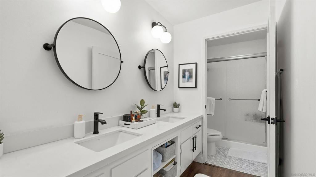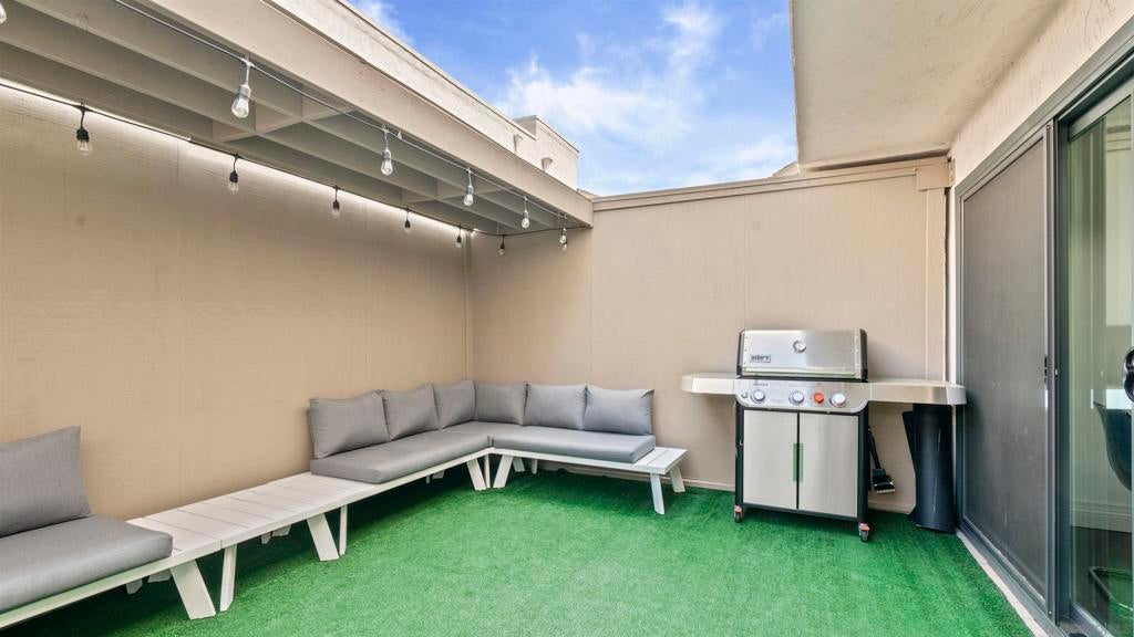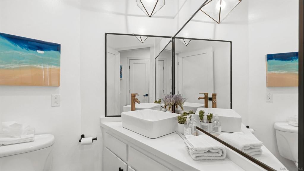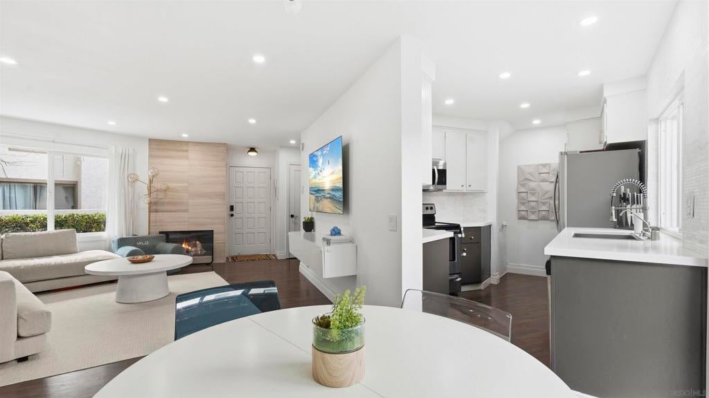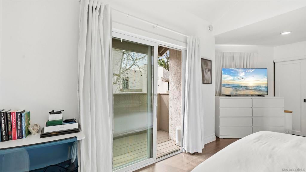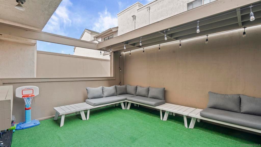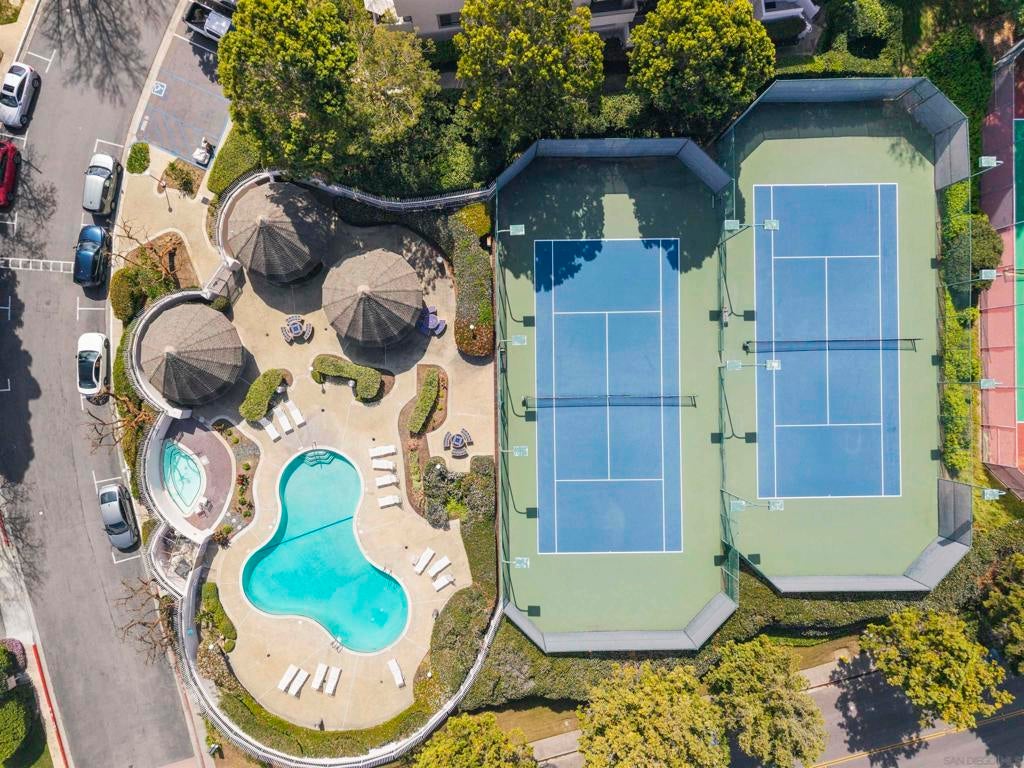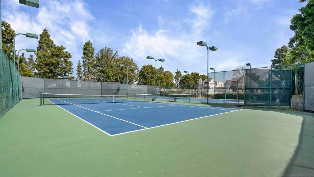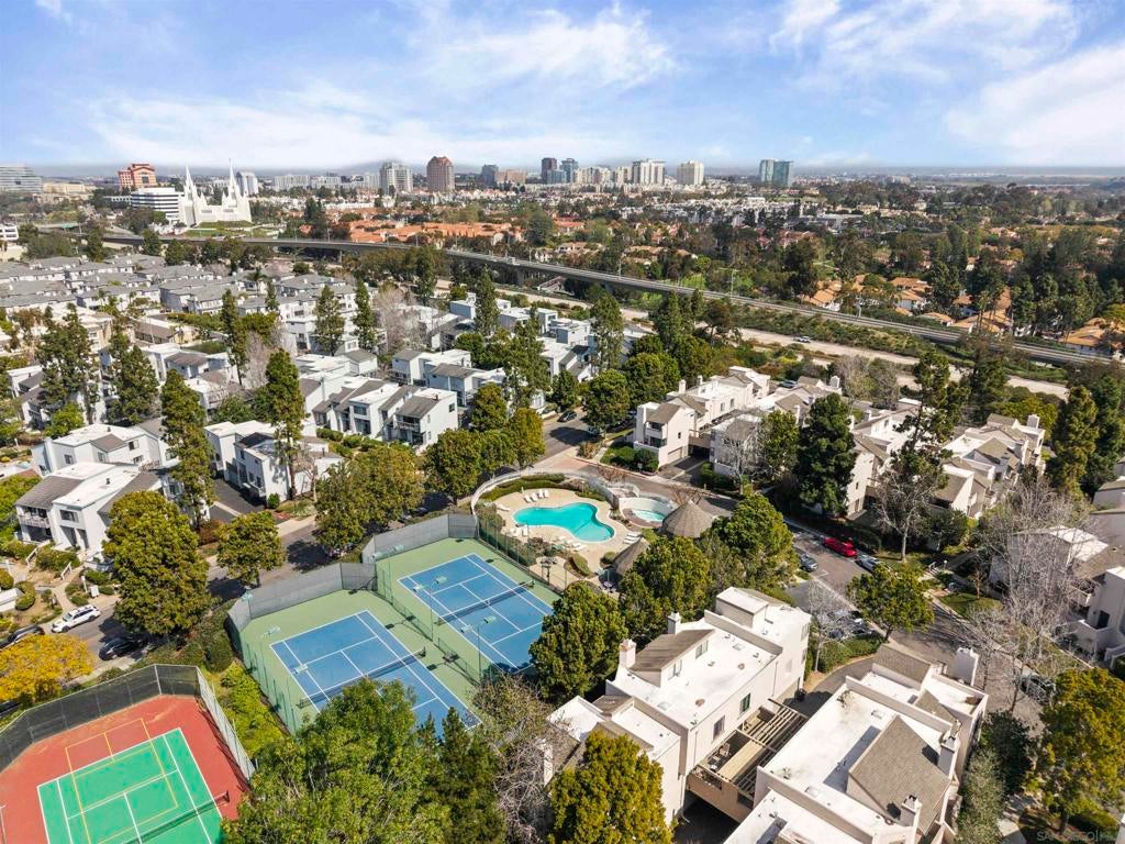 Welcome to 8490 Via Sonoma, Unit 10—an exquisite townhome that redefines modern living in the coveted enclave of La Jolla. This elegant 2-bedroom, 2.5-bathroom residence spans 1,074 square feet of thoughtfully curated luxury, blending contemporary design with everyday comfort. Step into an inviting interior where sleek hardwood laminate floors set the tone for sophistication. The chef-inspired kitchen dazzles with white quartz countertops, carrara marble tile backsplash and premium appliances, ready to bring your culinary visions to life. The open-concept layout seamlessly connects the kitchen to the living area and private outdoor deck, creating an ideal flow for both intimate evenings and lively gatherings. Ascending to the second floor, you’ll find two serene bedrooms, including a capacious primary suite featuring a private deck for relaxation and adorned with an ensuite bathroom featuring a double vanity with white quartz, plus walk-in shower. A great sized second bedroom, plus upgraded 2nd bathroom boasting a shower over the bath. The convenience of an attached 2 car garage offers both secure parking and ample storage, along with a conveniently situated in-unit washer and dryer. Beyond the walls, step into a world of leisure with access to meticulously maintained community amenities. Unwind by the sparkling pool, challenge friends on the tennis court, or enjoy quiet moments under the private cabana. Nestled in a tranquil, highly sought-after neighborhood of Woodlands West 2, this home provides the perfect balance of sophistication and low-maintenance living. Moments from La Jolla’s world-class dining, shopping, and coastline, this property offers a lifestyle as exceptional as its address.