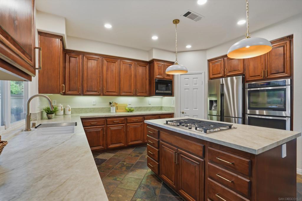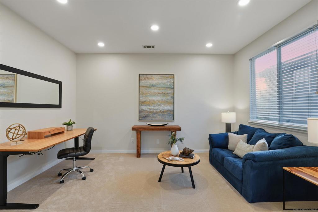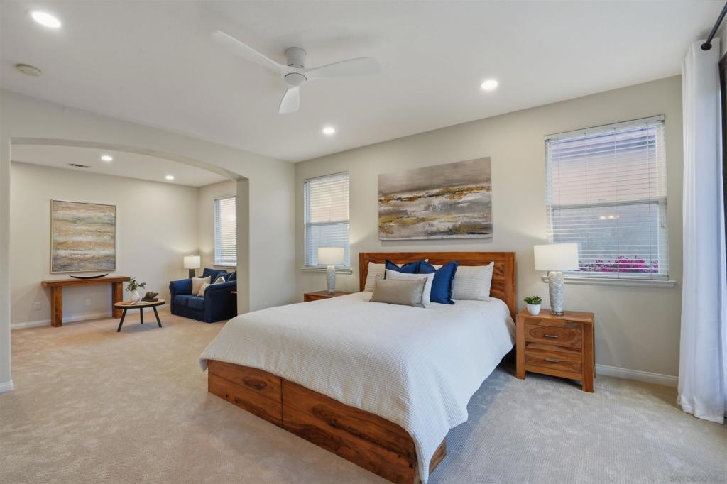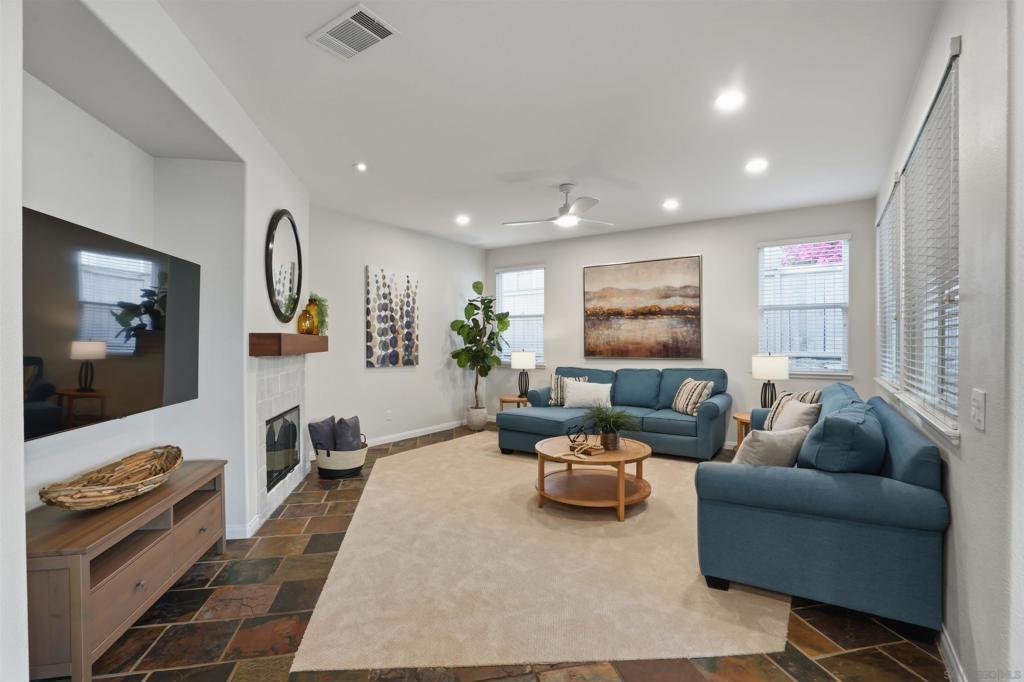 Welcome to the highly sought-after Rancho Carrillo community of Carlsbad. This spacious 4-bedroom home plus a large office offers over 3,100 square feet of comfortable living with 3 full bathrooms and a thoughtfully designed floor plan ideal for both everyday living and entertaining.The light-filled interior features a generous family room with a cozy fireplace, overhead lighting throughout, and ceiling fans in every bedroom and the family room. The kitchen has been refreshed and includes newer stainless steel appliances—oven, dishwasher, microwave, and refrigerator—while offering an opportunity to customize finishes to your personal style. Fresh paint and carpet provide a clean, move-in ready feel. Upstairs, the expansive primary suite is a true retreat, complete with a private sitting room and a deck to enjoy peaceful mornings or unwind in the evening. Additional bedrooms are well-sized, and the versatile office space is perfect for working from home, a playroom, or guest overflow.The 2-car garage has been upgraded with epoxy flooring and enhanced lighting, previously used as a home gym. Outside, enjoy a drought-tolerant yard, newly added front hardscaping with widened driveway and steps, and a refurbished back deck for outdoor living.Located in a quiet, well-maintained neighborhood with access to a community pool/spa, this home is just one block from a scenic trailhead and within walking distance to a top-rated California Distinguished elementary school. Close to shopping, dining, and all that North County has to offer, this home combines space ,location and convenience.