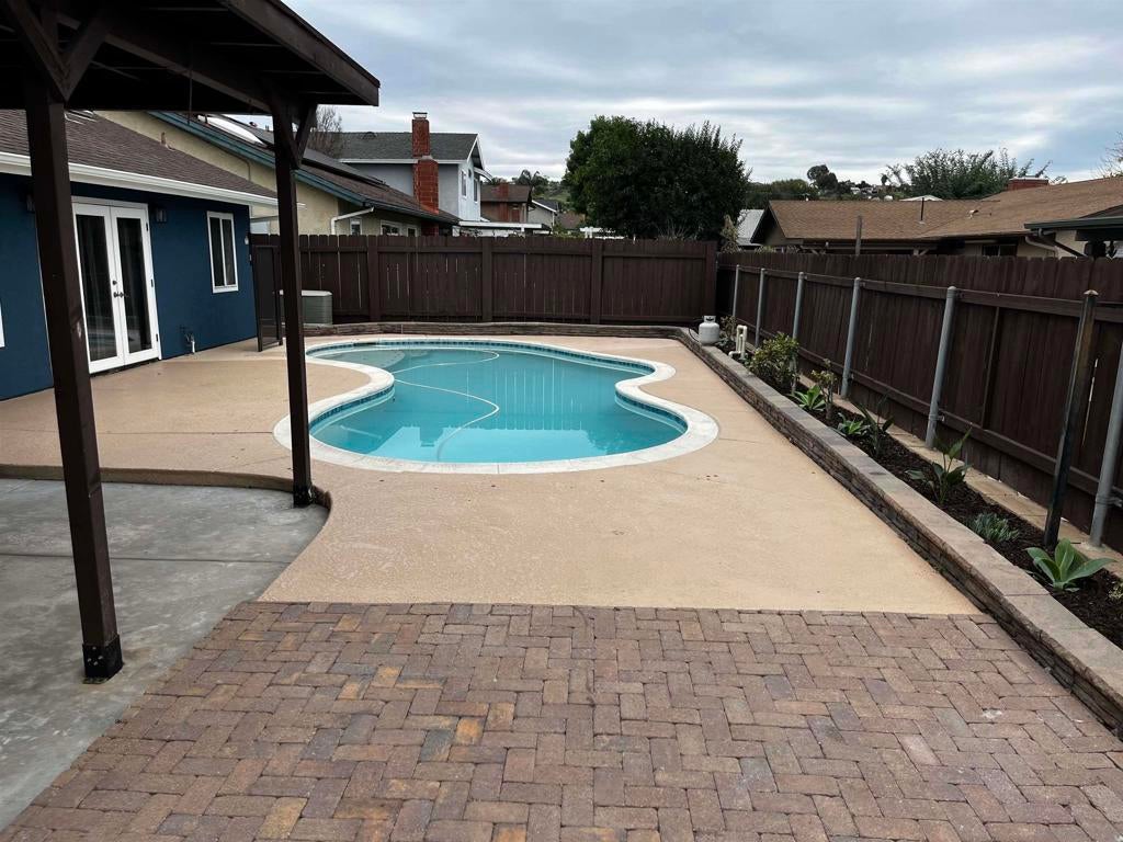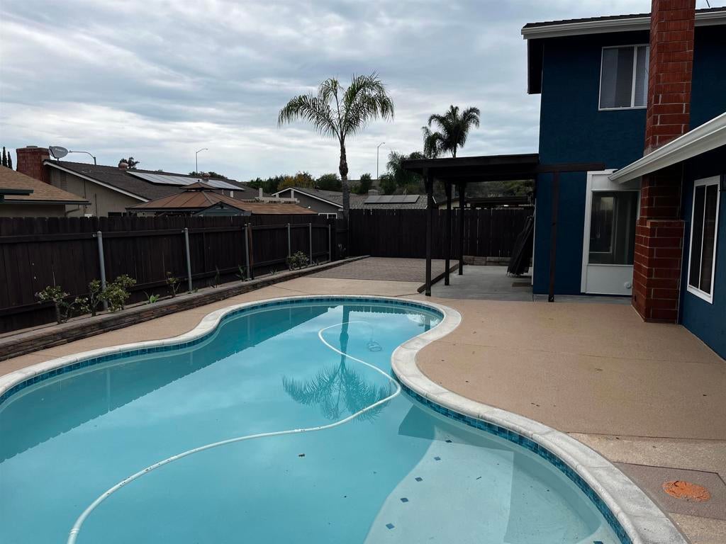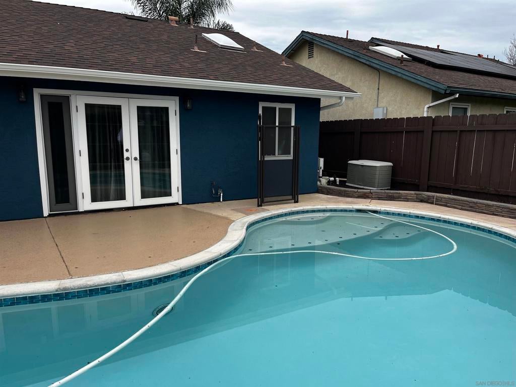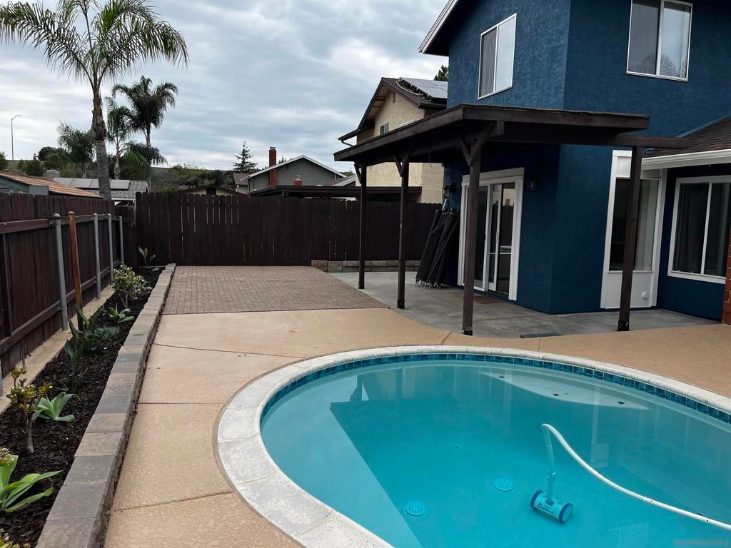 This spacious, newly refurbished home is located towards the end of a Cul-de-Sac and is ideal for the large family. The first floor features two bedrooms, a full bathroom and the large Primary bedroom with full bathroom has French doors that open to the beautiful below-ground pool. Two bedrooms are upstairs and the full bathroom between the bedrooms has a dual sink vanity. The long gated right side yard and the large concrete pad that adjoins the driveway provides lots of parking and storage options. This home has a great location in Santee: stores, groceries, shops, services, freeways and all school levels are close!