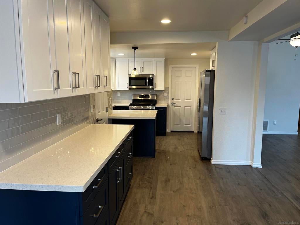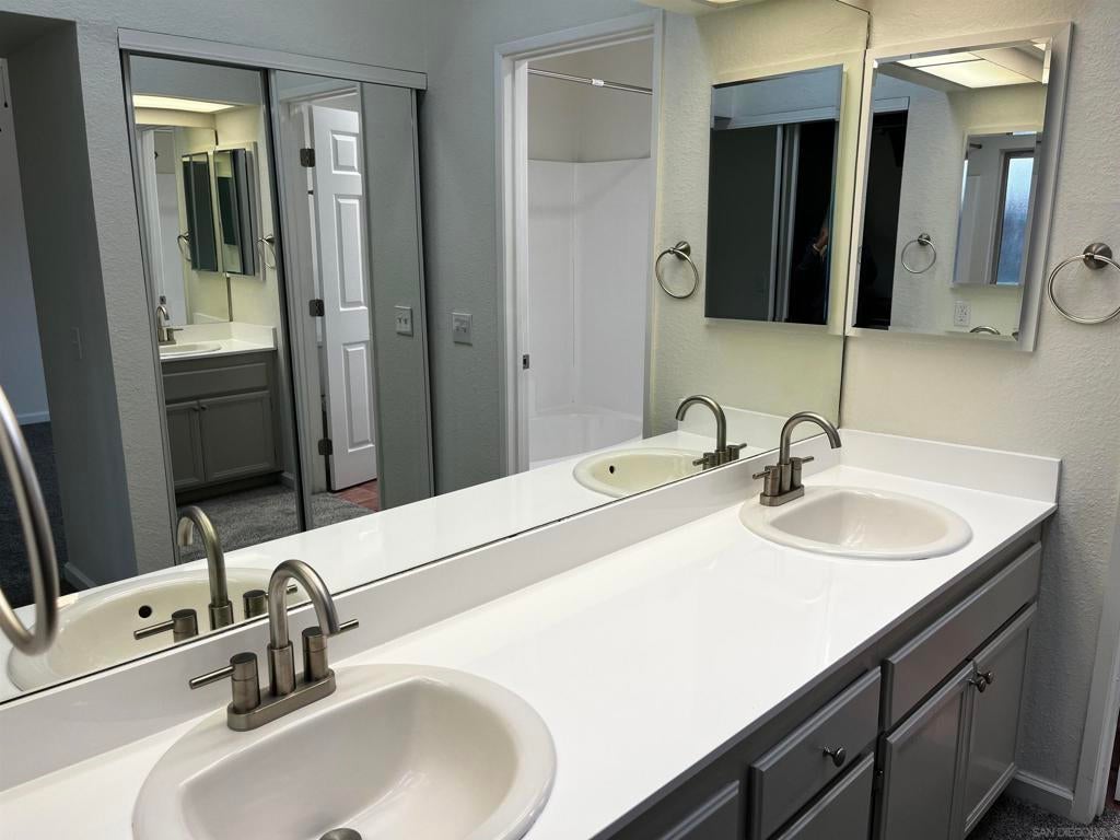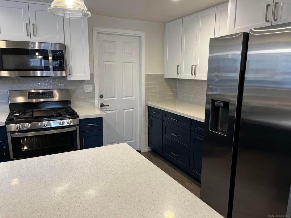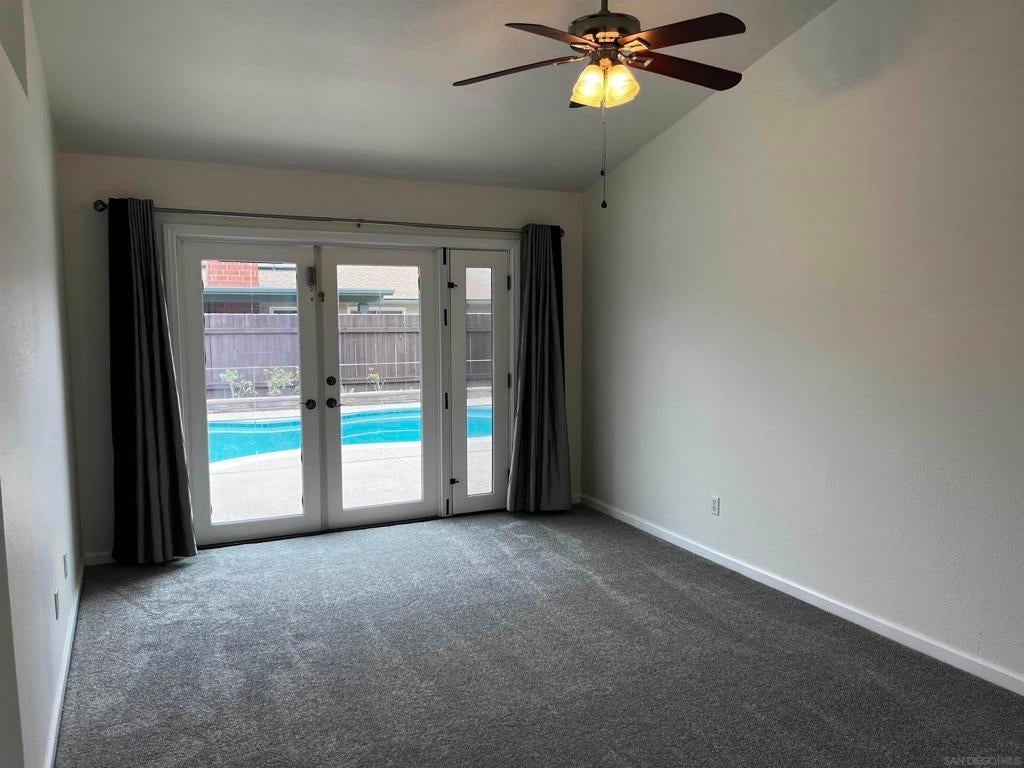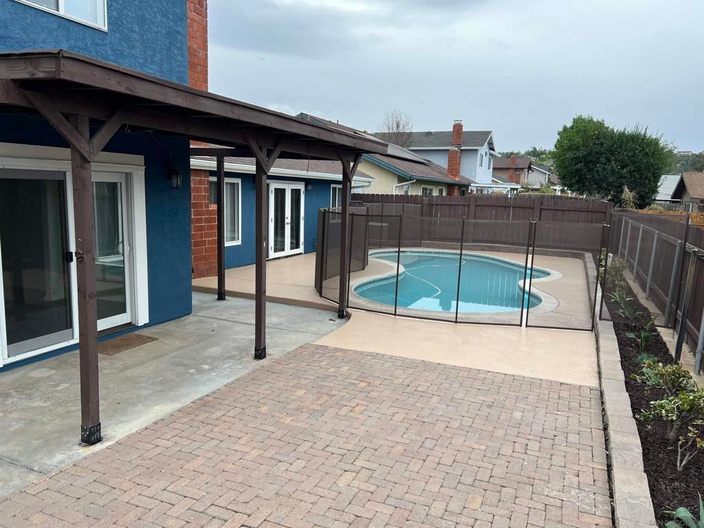 This spacious, newly refurbished home is located towards the end of a Cul-de-Sac and is ideal for the large family. The first floor features two bedrooms, a full bathroom and the large Primary bedroom with full bathroom has French doors that open to the beautiful below-ground pool. Two bedrooms are upstairs and the full bathroom between the bedrooms has a dual sink vanity. The long gated right side yard and the large concrete pad that adjoins the driveway provides lots of parking and storage options. This home has a great location in Santee: stores, groceries, shops, services, freeways and all school levels are close!