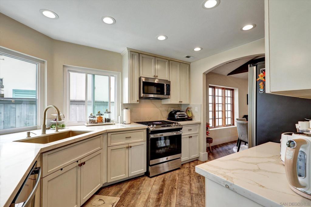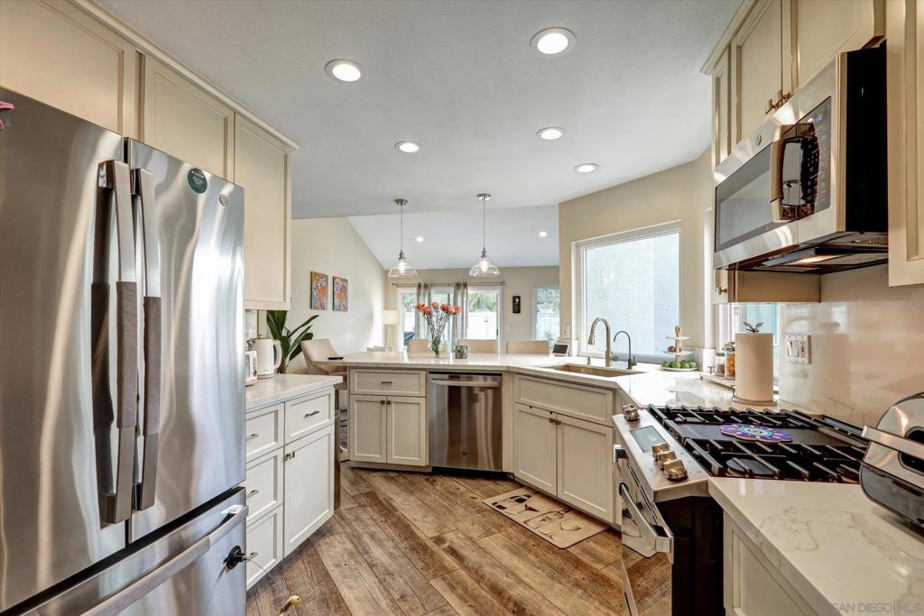 Beautifully upgraded 4 bed, 2 bath single-story home in Rancho Bernardo within the Poway Unified School District. This move-in ready home features quartz countertops, fresh interior paint, recessed lighting throughout, and a modern kitchen with new sink/faucet, stainless steel appliances: new refrigerator and stove/oven. Enjoy fully paid solar, updated wiring, and EV-ready electrical setup for electric vehicle charging. Additional wiring/lighting in the front and backyard. Improvements include newer washer/electric dryer, updated door knobs, and a finished garage with epoxy flooring, drywall, fresh paint, and added ladder storage. Private backyard with mature fig, orange, and passion fruit trees. Convenient location near shopping, parks, trails, and freeway access. Beautifully upgraded 4 bed, 2 bath single-story home in Rancho Bernardo within the Poway Unified School District. This move-in ready home features quartz countertops, fresh interior paint, recessed lighting throughout, and a modern kitchen with new sink/faucet, stainless steel appliances: new refrigerator and stove/oven. Enjoy fully paid solar, updated wiring, and EV-ready electrical setup for electric vehicle charging. Additional wiring/lighting in the front and backyard. Improvements include newer washer/electric dryer, updated door knobs, and a finished garage with epoxy flooring, drywall, fresh paint, and added ladder storage. Private backyard with mature fig, orange, and passion fruit trees. Convenient location near shopping, parks, trails, and freeway access. HOA fee is $50/M and RB Swim & Tennis club $466.50/Y