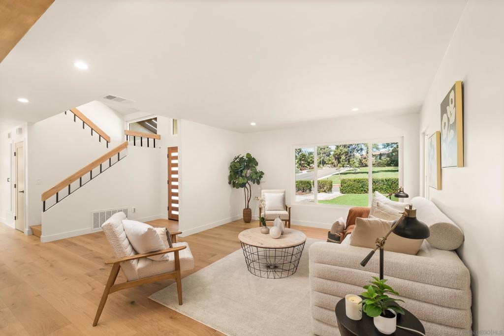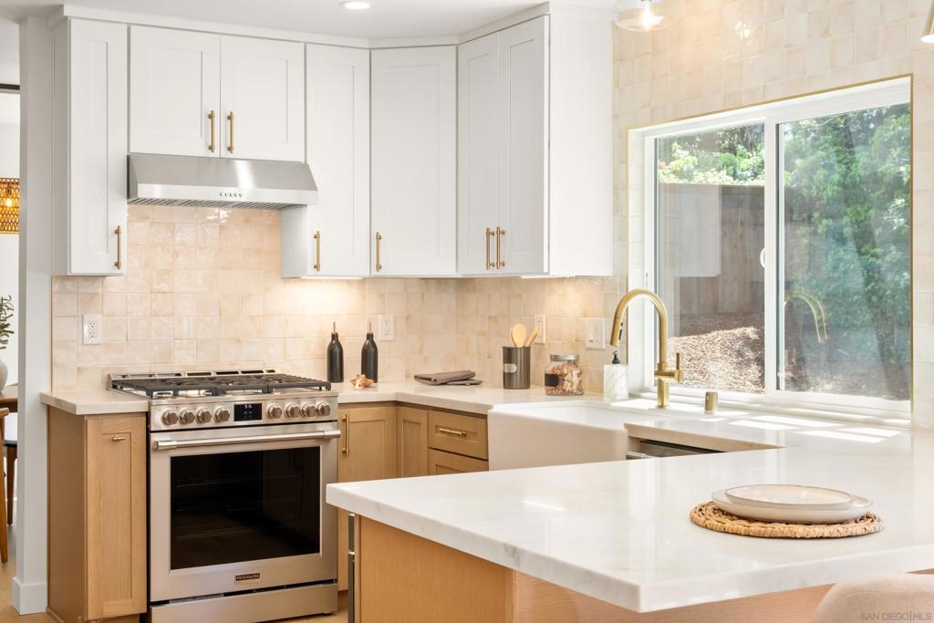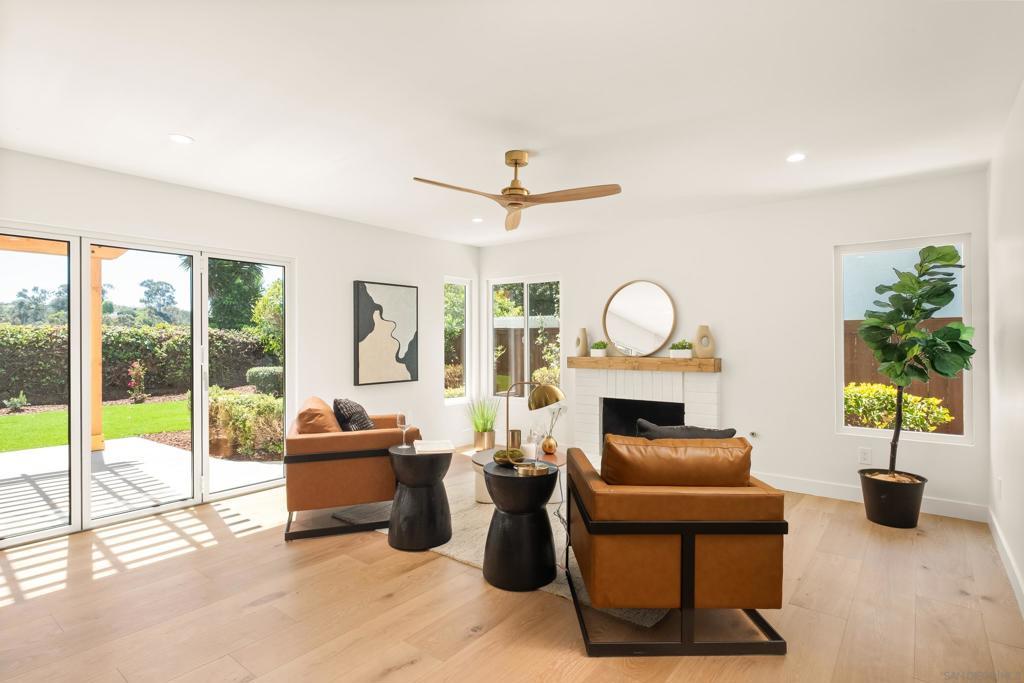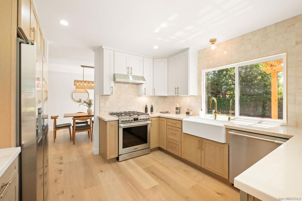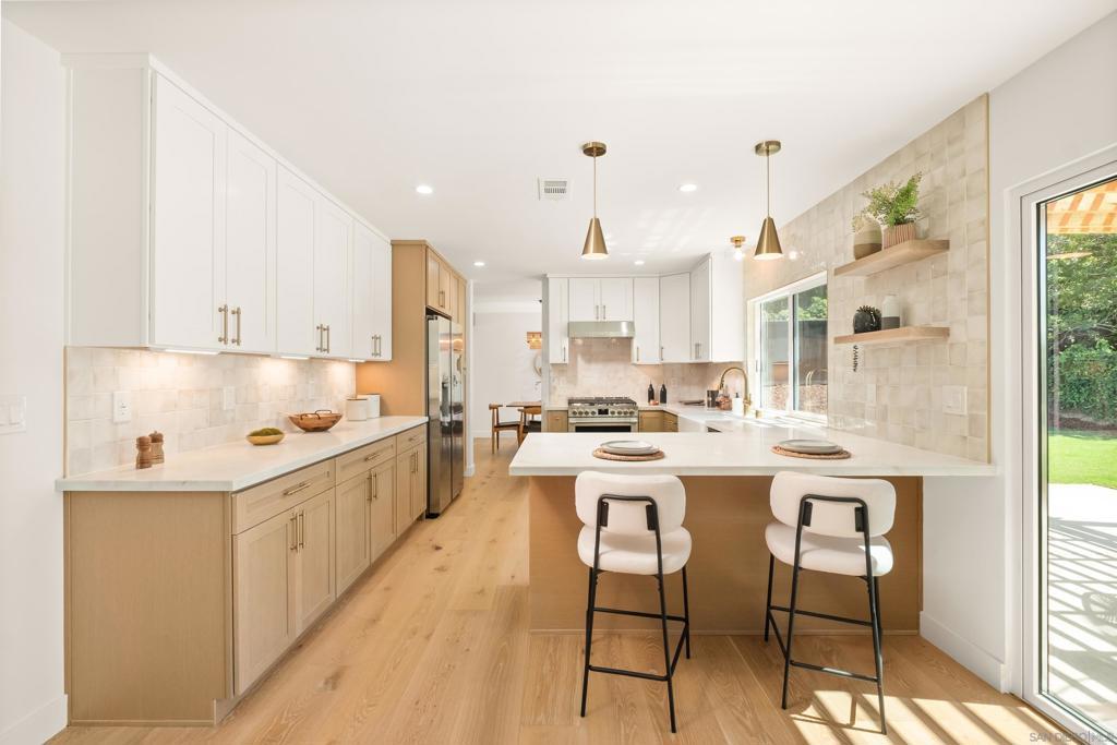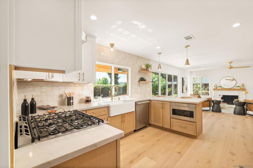 Discover luxury in this meticulously reimagined Rancho Ponderosa home. Ideally situated with views over Macarena Park, where families, kids and dogs gather to play and socialize. This move-in ready home offers a perfect blend of sophistication, tranquility and sweeping area views. Seamless indoor-outdoor living via a 10 ft Cantina-style door connecting the family room to a covered patio for year-round gatherings and entertaining. The south-facing backyard offers privacy, abundant sunlight, views and a refreshing coastal breeze. Thoughtfully remodeled in 2026 from top to bottom with refined finishes and quality workmanship. Sun-drenched spaces feature a soft white palette, custom cabinetry, light wood accents and brushed gold fixtures. Smooth hand-troweled walls and engineered White Oak flooring elevate the space. The designer kitchen includes state-of-the-art appliances, White Oak shaker cabinets, Taj Mahal quartzite countertops, under-cabinet lighting and a fireclay apron sink. The primary suite offers a spa-like bath, dual vanity, multiple closets and views toward Encinitas. All new landscaping with modern hardscape, Bermuda grass and drought-tolerant plants on drip irrigation. Finished garage with epoxy flooring and Hex lighting. Low HOA and top-rated Carlsbad schools including La Costa Canyon High.