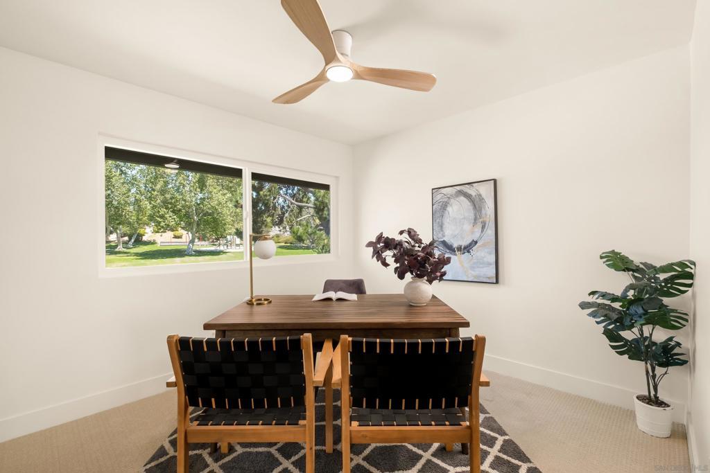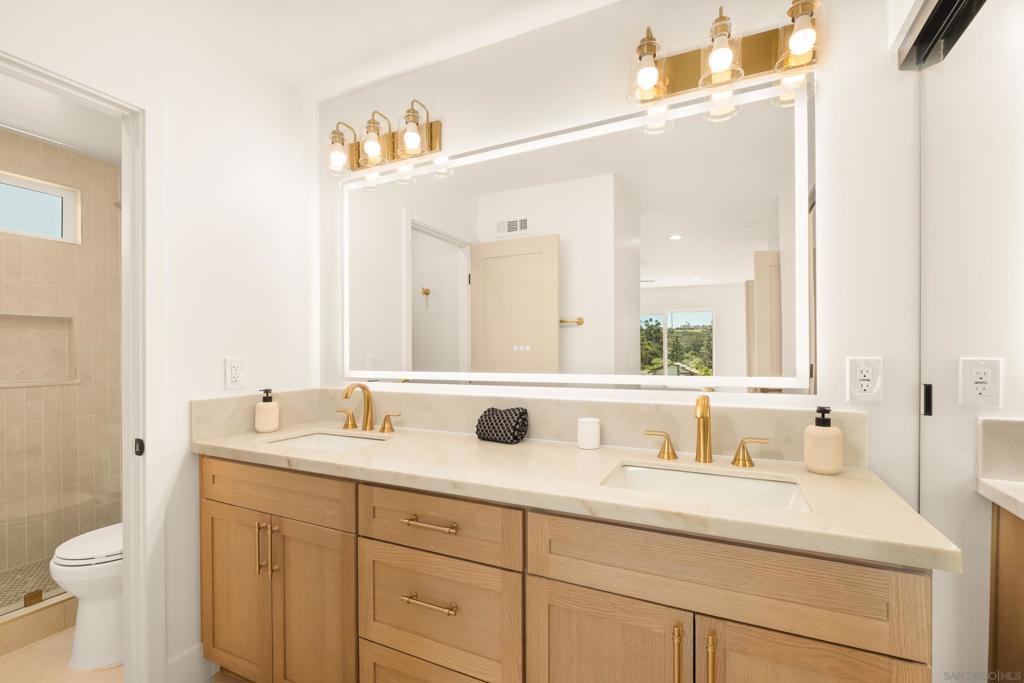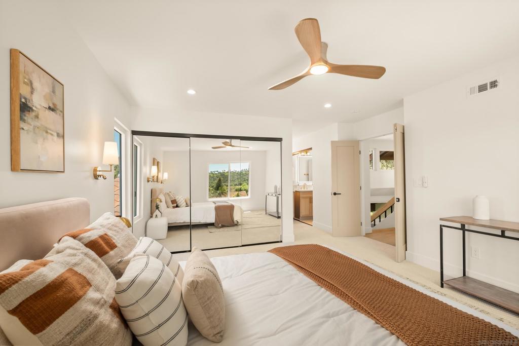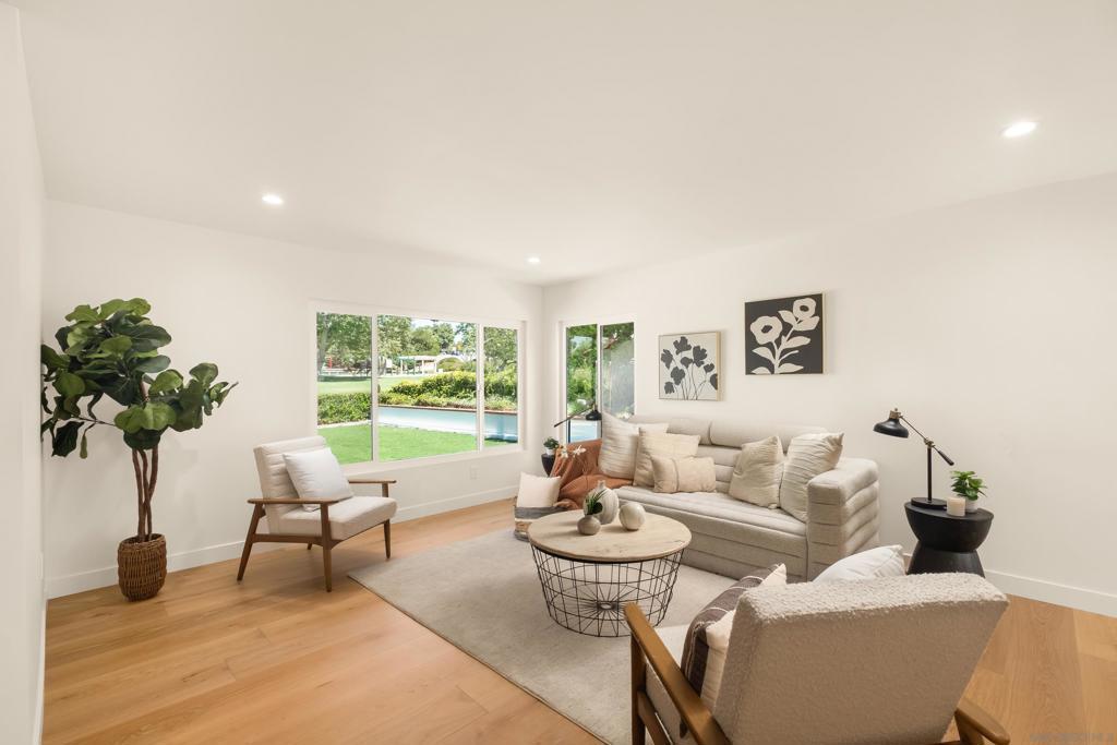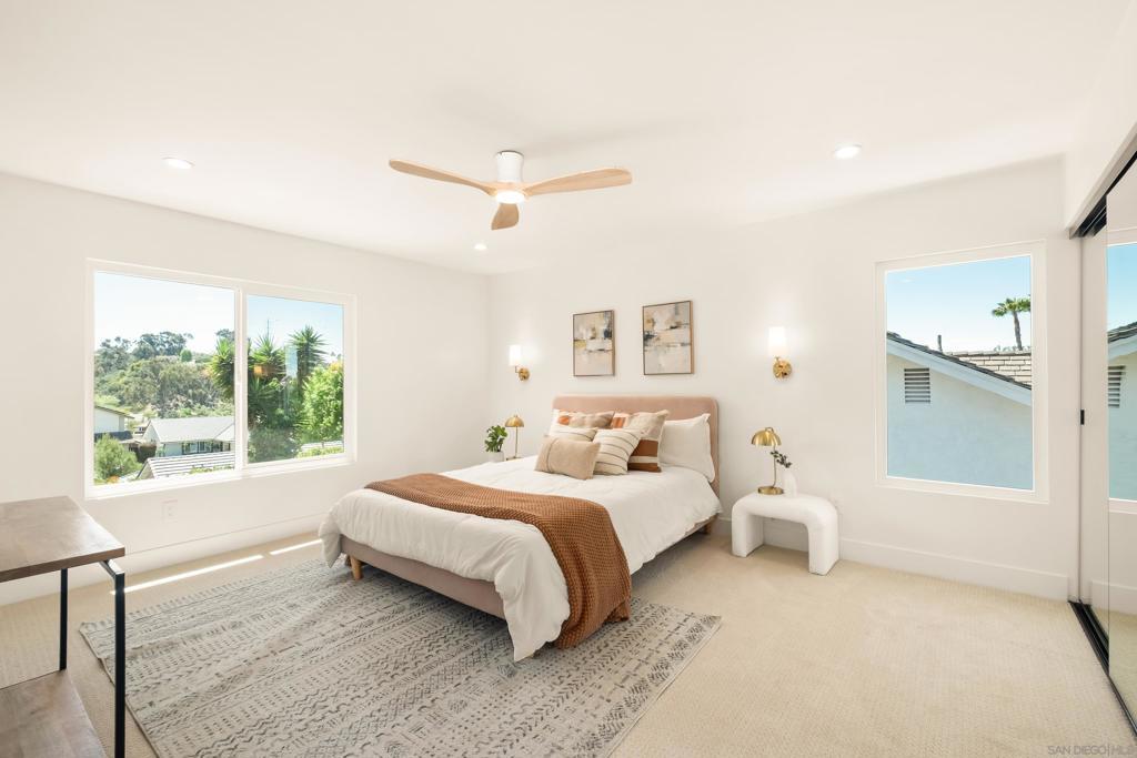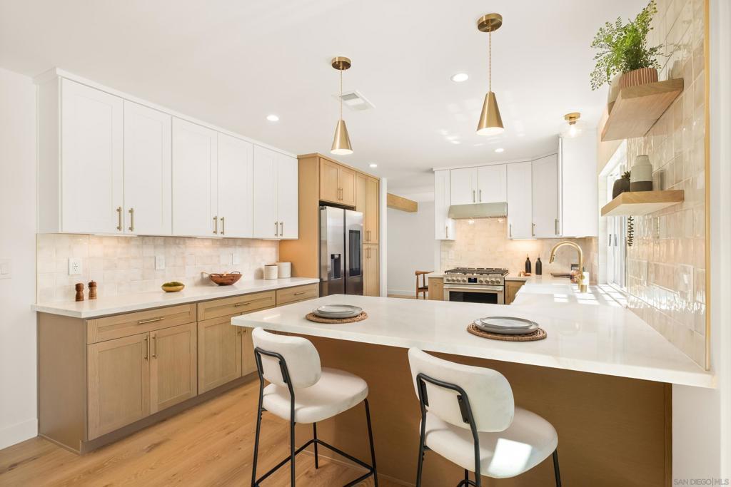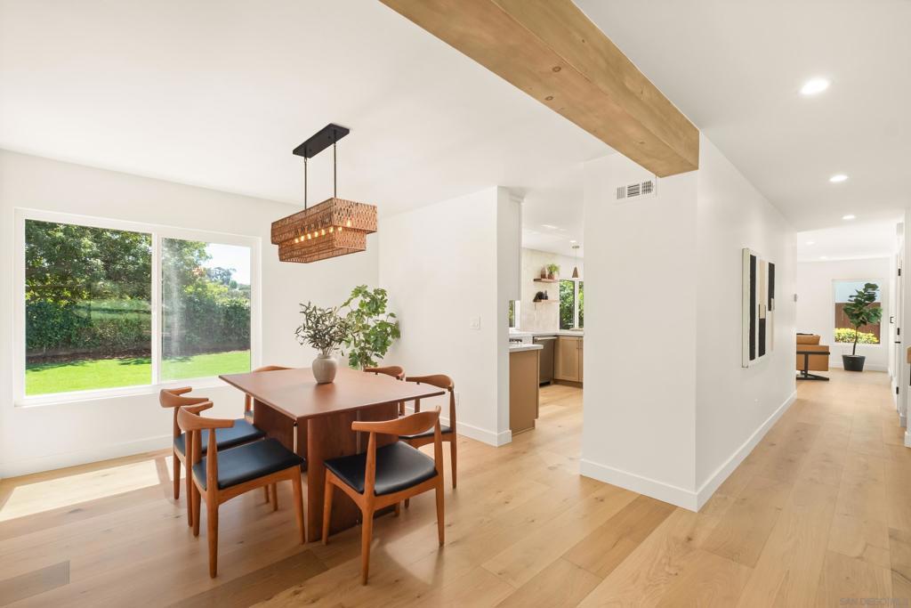 Discover luxury in this meticulously reimagined Rancho Ponderosa home. Ideally situated with views over Macarena Park, where families, kids and dogs gather to play and socialize. This move-in ready home offers a perfect blend of sophistication, tranquility and sweeping area views. Seamless indoor-outdoor living via a 10 ft Cantina-style door connecting the family room to a covered patio for year-round gatherings and entertaining. The south-facing backyard offers privacy, abundant sunlight, views and a refreshing coastal breeze. Thoughtfully remodeled in 2026 from top to bottom with refined finishes and quality workmanship. Sun-drenched spaces feature a soft white palette, custom cabinetry, light wood accents and brushed gold fixtures. Smooth hand-troweled walls and engineered White Oak flooring elevate the space. The designer kitchen includes state-of-the-art appliances, White Oak shaker cabinets, Taj Mahal quartzite countertops, under-cabinet lighting and a fireclay apron sink. The primary suite offers a spa-like bath, dual vanity, multiple closets and views toward Encinitas. All new landscaping with modern hardscape, Bermuda grass and drought-tolerant plants on drip irrigation. Finished garage with epoxy flooring and Hex lighting. Low HOA and top-rated Carlsbad schools including La Costa Canyon High.