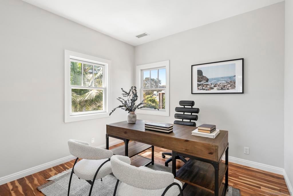 Welcome to a truly rare offering in the highly sought-after Walking District of Cardiff-by-the-Sea. The main residence features 3 bedrooms and 2 bathrooms, thoughtfully designed to capture natural light and coastal breezes. Enjoy ocean views from multiple vantage points, including an executive office—ideal for working from home in an inspiring setting. A versatile bonus room provides flexibility for a fourth bedroom, home gym, media room, or play space. Adding to the home’s exceptional value is a detached 1-bedroom, 1-bathroom studio complete with a full kitchen, private entrance, and in-unit washer and dryer—perfect for guests, extended family, or potential rental income. The uncommon and highly coveted feature in this coastal neighborhood is its private backyard offering a phenomenal setting for outdoor entertaining and relaxation. Perfectly positioned just moments from the heart of town, this fully detached single-family residence places you within a short 5-minute stroll to Cardiff’s most desirable attractions—including the iconic 101 corridor, Seaside Market, Cardiff State Beach, Glen Park, and an array of popular restaurants, cafés, and boutiques.