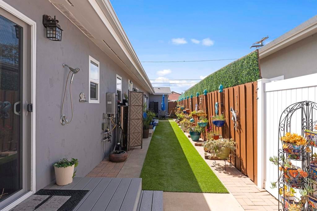 Beautifully updated duplex in a premier beachside location! The main residence features 4 bedrooms, 2 bathrooms. The open floor plan includes a dining area and a thoughtfully upgraded kitchen with quartz countertops and perfect for everyday living and entertaining. A spacious laundry area with ample counter space provides convenient access to the 2-car garage. The second unit offers a charming 1 bedroom, 1 bathroom layout with a large open-concept living area that flows seamlessly into the kitchen—ideal for guests, rental income, or extended family. Includes a full-size washer and dryer. A fantastic opportunity to own a versatile property just moments from the beach!
