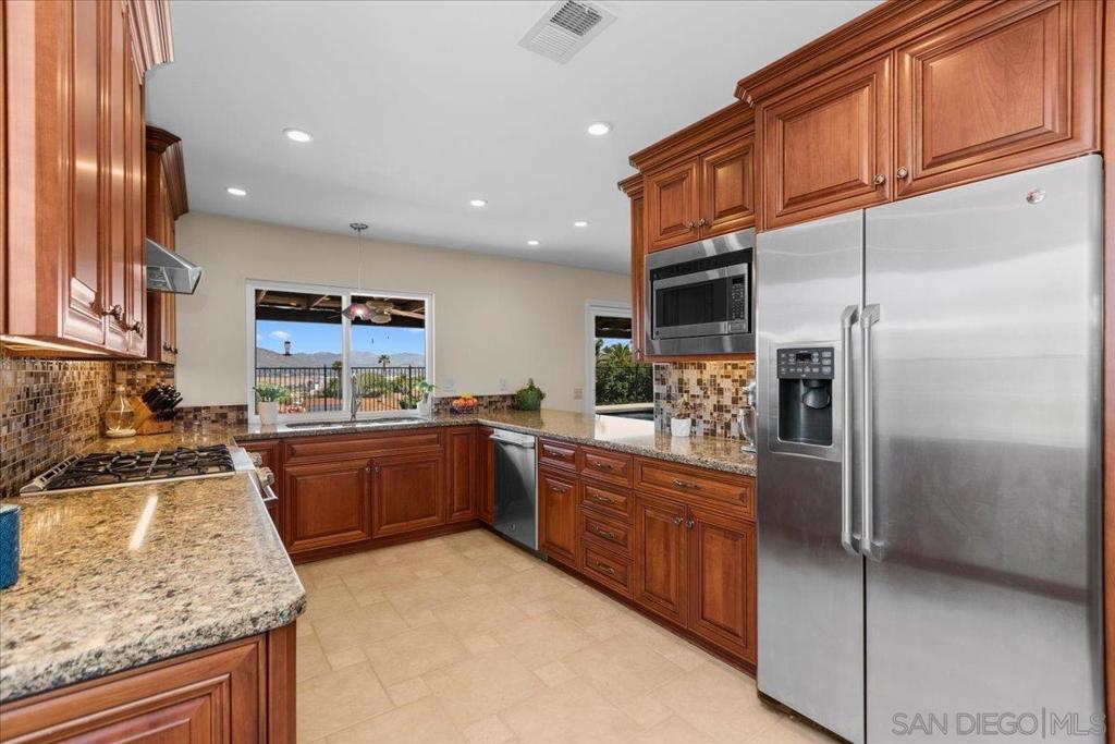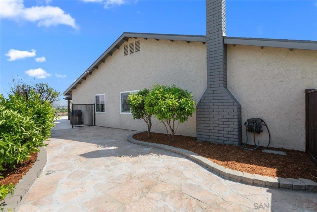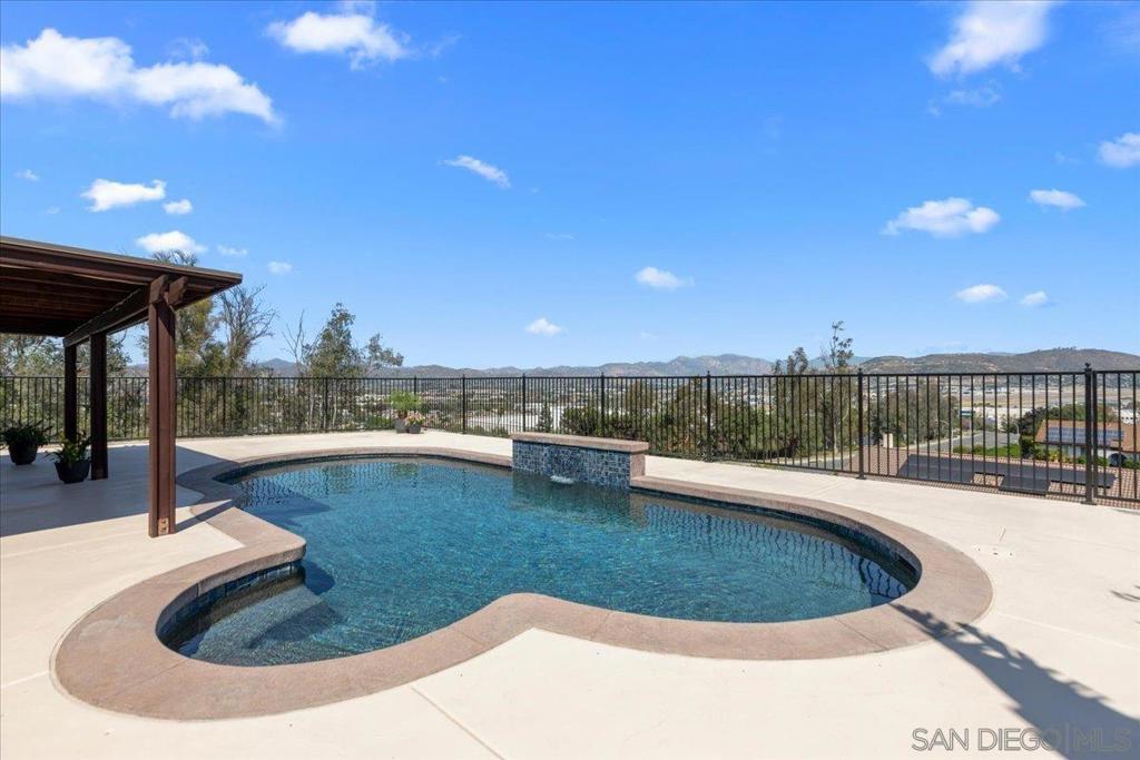 Rare opportunity in this highly desirable Fletcher Hills neighborhood! Spectacular city and mountain views from this upgraded single-story home situated on a cul-de-sac, . The kitchen offers custom cherry cabinetry, soft-close doors, pull-outs, stainless appliances, and solid surface counters. Features include a stamped concrete driveway, 3-car garage, and beautiful landscaping. Interior highlights include custom built-ins and closets. Private yard with Pebble Tec pool, waterfall, covered patio, fruit trees, and owned Solar. Spectacular panoramic city and mountain views set the tone for this beautifully upgraded home, ideally situated on a quiet cul-de-sac, where quality craftsmanship and thoughtful design are evident throughout. Perched on a hillside, the property is surrounded by a sculpted landscape featuring a dry river bed and beautifully maintained grounds. The front of the home is enhanced by custom redwood fencing, a stamped concrete driveway, and a spacious 3-car garage, adding to its exceptional curb appeal. The kitchen showcases custom hand-crafted cherry wood cabinetry with soft-close doors and pull-out shelving, complemented by stainless steel appliances, solid surface countertops, and maple wood shelving. The inviting living spaces feature crown molding, a gas fireplace with a custom cherry wood mantle, and a dining room enhanced by a custom cherry wood built-in cabinet. All bedrooms offer custom closet systems, while dual-pane windows throughout and plantation shutters on the front windows provide comfort and efficiency. Step outside to a private backyard retreat featuring a refreshing pool with Pebble Tec finish, a sheer descent waterfall, and a safety net. Enjoy outdoor living on the spacious covered patio with ambient lighting. Additional highlights include custom walnut and cherry wood bathroom cabinetry, an owned solar system, a limestone-paved walkway bordered by mature citrus and plum trees, and a stunning mahogany entry door with leaded glass.