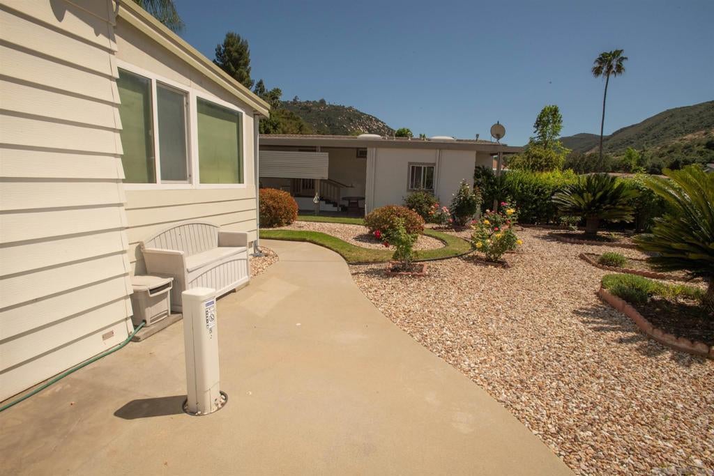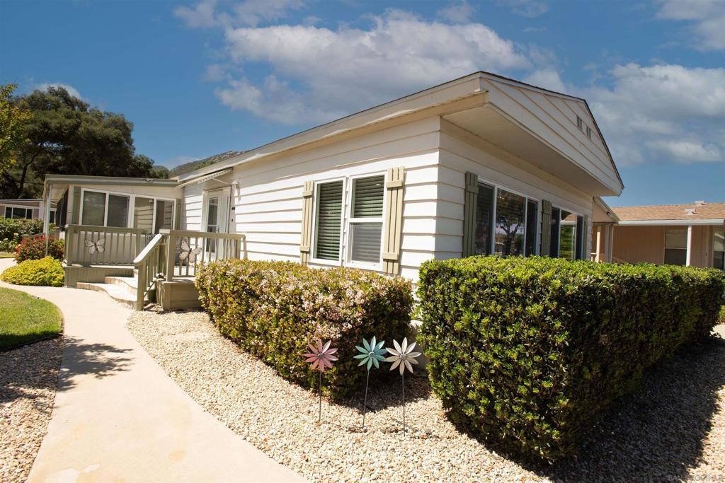 Experience easy, comfortable living in Champagne Village, a gated 55+ community connected to Lawrence Welk Resort. This updated home is move-in ready and built for simple, low-maintenance living. What stands out right away: Front porch with a beautiful rose garden, Bright interior with new luxury vinyl plank flooring. Clean, modern finishes throughout. Key features: 2 bedrooms and 2 remodeled bathrooms. Spacious primary suite with washer and dryer in the closet, New luxury vinyl plank flooring throughout, Electric stove with double oven, Whole house fan for efficient cooling, Outside, you get a yard with grass for the grandkids kids to play, plus two detached storage units with built-in shelving. Easy to maintain and easy to lock up when you travel. Community perks: Guard-gated entry for added security, Clubhouse with regular social events, Pool, tennis, and pickleball, Access to resort amenities next door, Location: Quick freeway access, Easy drive to San Diego and Riverside, If you want a home that feels clean, updated, and ready from day one, this one delivers
