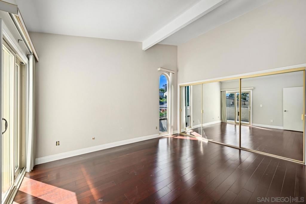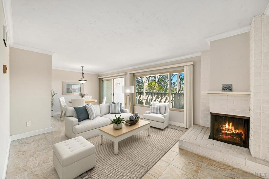 Offering the privacy and presence of a detached residence, this fully updated home in La Jolla Village Estates opens to breathtaking city views that unfold the moment you step inside. Designed to capture abundant natural light and sweeping scenery, the home features dual-paned windows throughout and fully owned solar for exceptional efficiency and minimal electric costs. A beautifully appointed kitchen anchors the living spaces, while a cozy fireplace adds warmth and ambiance to the main living area. Seamless indoor-outdoor living defines the home, with two expansive patios and a private balcony, including a wraparound entertaining terrace perfectly positioned to showcase dramatic city lights and unforgettable sunset views. The spacious primary suite offers a serene retreat with direct balcony access, ideal for morning coffee or evening relaxation. Residents enjoy resort-style community amenities including a pool, spa, and playground, all set within a lush, park-like setting. A two-car garage adds convenience, while the prime location—just blocks from UCSD and minutes to freeway access, UTC Mall, La Jolla Shores, and the best of coastal living—delivers an exceptional blend of comfort, sophistication, and coveted La Jolla lifestyle.