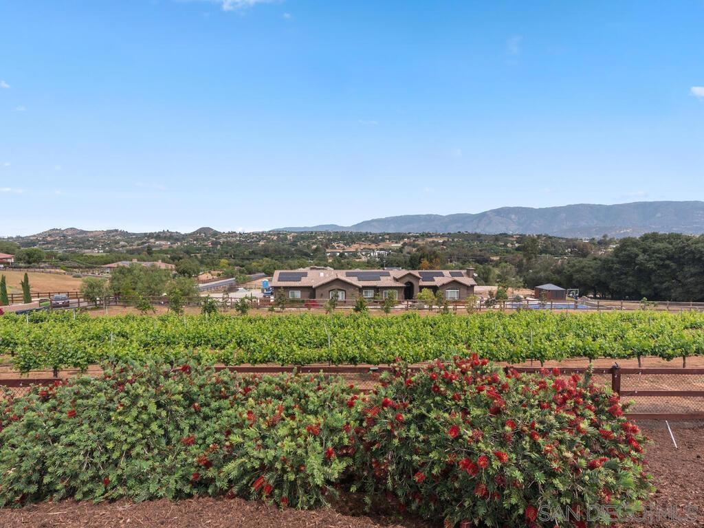 IMMACULATE VINYARD LUXURY HOME! Located within the exclusive Citrus Pointe Estates & gated community, This home sits on 2.09 acres of lush landscape, wine producing Syrah grapevines & magnificent PANORAMIC VIEWS! Enjoy the spacious layout of this 4 bed, 3 bath home designed with meticulous detail from high end cabinetry throughout, top end appliances, with fine finishings, & upgrades galore. Included is a 6 car garage, fully gated & fenced, owned 40 panel solar with 2 Tesla backup batteries, RV parking.