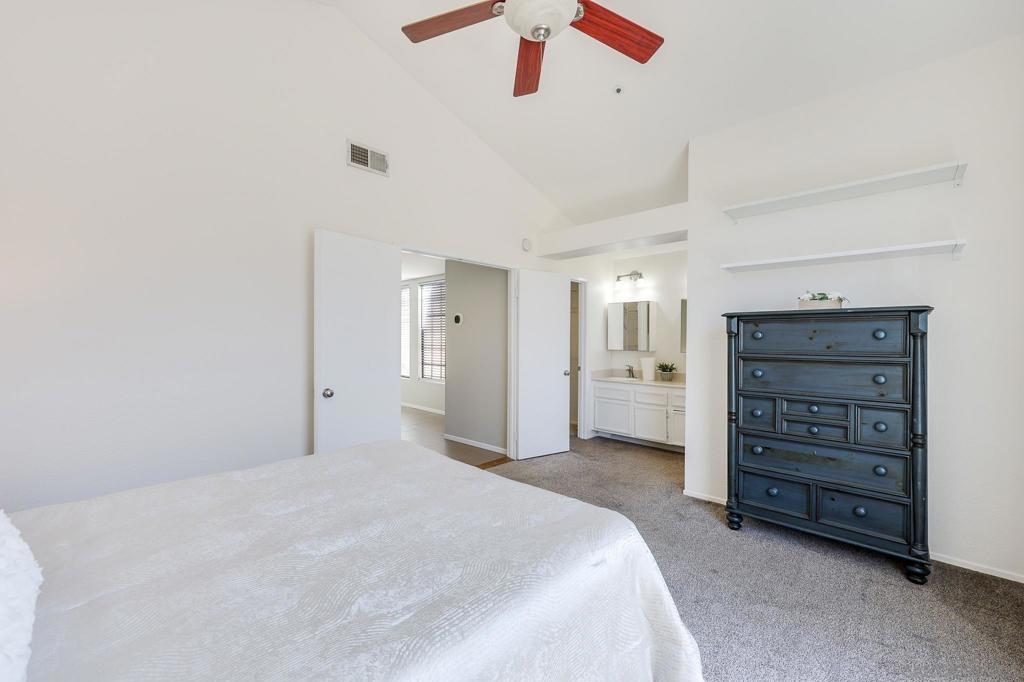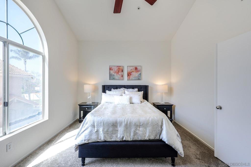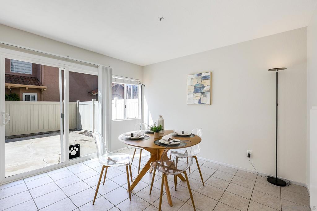 Located in the gated community of California Villas, this 3-bedroom, 2.5-bath townhome features vaulted ceilings, tall windows, and great natural light. The living area offers tile flooring, a fireplace, and an open layout that connects to a functional kitchen with plenty of storage. Upstairs, the primary bedroom includes a walk-in closet and a bathroom with dual sinks. All bedrooms have ceiling fans, and the home includes a new A/C unit and new water heater. An attached 2-car garage with direct access and a private patio offers extra storage and outdoor space. Community amenities include a large greenspace, tot-lot, and guest parking. HOA covers roof maintenance, plus water, sewer, and trash. Conveniently located near Hwy 78, Costco, dining, and everyday essentials, with easy access to nearby beaches just a short drive away.