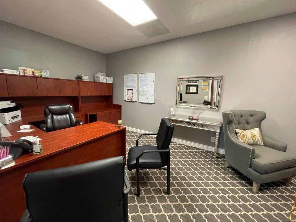 1317 Sqft. Beautifully remodeled office condo. This commercial condo features a private lobby guest area, 5 spacious office rooms, an extra large conference room (currently used as a large office suite), a utility closet/copy room, a brand new kitchen, and new hvac installed in 2022. This commercial office condo has been elegantly remodeled with beautiful charcoal grey wood design plank flooring, crystal chandelier in the lobby, large drum pendant lighting in hallway, elegant moulding accents in hallway, premium designed carpet flooring in the conference room, and an executive style barn door entrance to the remodeled kitchen. Remodeled kitchen features beautiful midnight blue wood cabinetry with oversized gold handles, farm style porcelain sink, and shiny red retro style refrigerator and microwave. Why continue to pay rent to run your business when you can enjoy owning the real estate your business runs in! 1317 Sqft. Beautifully remodeled office condo. This commercial condo features a private lobby guest area, 5 spacious office rooms, an extra large conference room (currently used as a large office suite), a utility closet/copy room, a brand new kitchen, and new hvac installed in 2022. This commercial office condo has been elegantly remodeled with beautiful charcoal grey wood design plank flooring, crystal chandelier in the lobby, large drum pendant lighting in hallway, elegant moulding accents in hallway, premium designed carpet flooring in the conference room, and an executive style barn door entrance to the remodeled kitchen. Remodeled kitchen features beautiful midnight blue wood cabinetry with oversized gold handles, farm style porcelain sink, and shiny red retro style refrigerator and microwave. Why continue to pay rent to run your business when you can enjoy owning the real estate your business runs in!