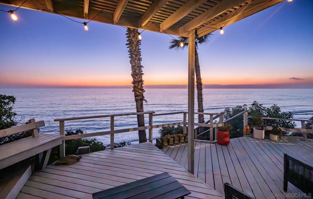 Legacy property first time on the market! One-of-a-kind oceanfront estate with private stairs to the sand. Savor the endless views throughout the home from vibrant sunsets to watching dolphins cross the horizon & ride the waves alongside surfers. Several landings & decks are interlaced in the stairs down to the beach allowing for multiple spots to dine, entertain & relax outdoors. The front of the home offers a generous courtyard lushly landscaped. This property has been thoughtfully cared for & features new solar, new HVAC, new AC, new furnace, new water heater, new outdoor deck floors + new carpet & paint throughout. Walk & bike to the best restaurants. shops & attractions in Encinitas. Do not miss this opportunity to own a slice of Southern California prime coastline!