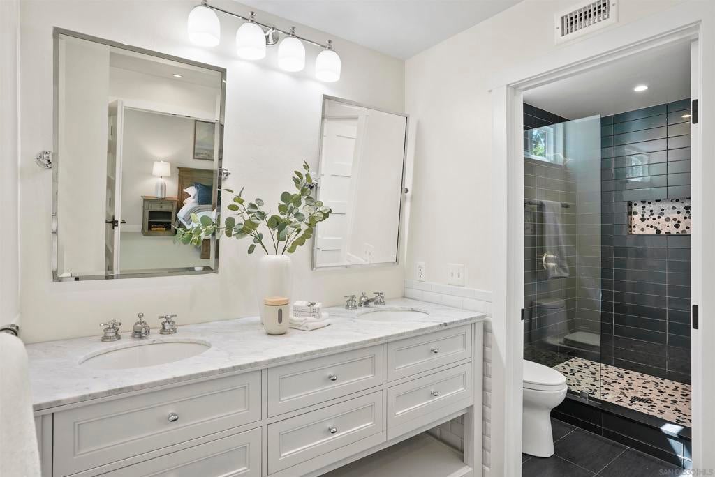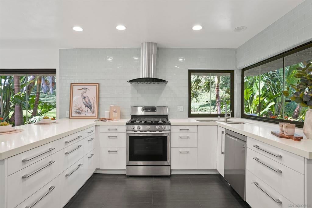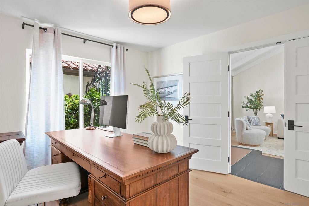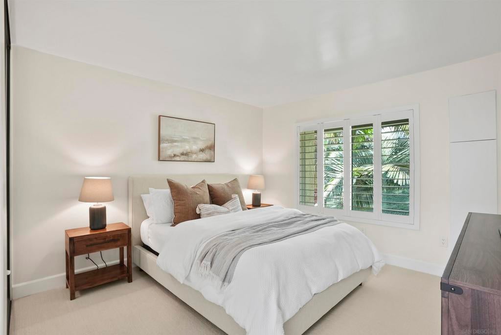 Welcome to your new home! Tucked away in the highly sought-after St. Francis community, this largest floor plan residence offers a rare combination of space, privacy, and thoughtful updates. Set back from the road, the home enjoys a quiet, serene setting surrounded by lush greenery, creating a true sense of retreat. Inside, the home has been beautifully updated with a blend of tile, engineered hardwood, and carpeted flooring, bringing both style and comfort throughout. The kitchen has been tastefully remodeled with clean, modern finishes and opens seamlessly to the main living spaces—ideal for both everyday living and entertaining. Bathrooms have also been beautifully updated, offering a fresh, cohesive feel. The flexible floor plan includes a full bedroom or office on the main level with an adjacent full bathroom, perfect for guests, multigenerational living, or a private workspace. Upstairs features two large bedrooms sharing a beautiful bathroom and an expansive, gorgeous primary retreat. Large windows and sliding doors bring the outdoors in, with views of the surrounding greenery and easy access to private outdoor spaces—ideal for relaxing or hosting. Located within the St. Francis HOA, residents enjoy a well-maintained community in a convenient location adjacent to the Lomas Santa Fe Golf Course, close to shopping, dining, freeway access and coastal amenities. This is a rare opportunity to own one of the community’s most desirable floor plans, offering both privacy and modern updates in an exceptional setting. Come see it today!
