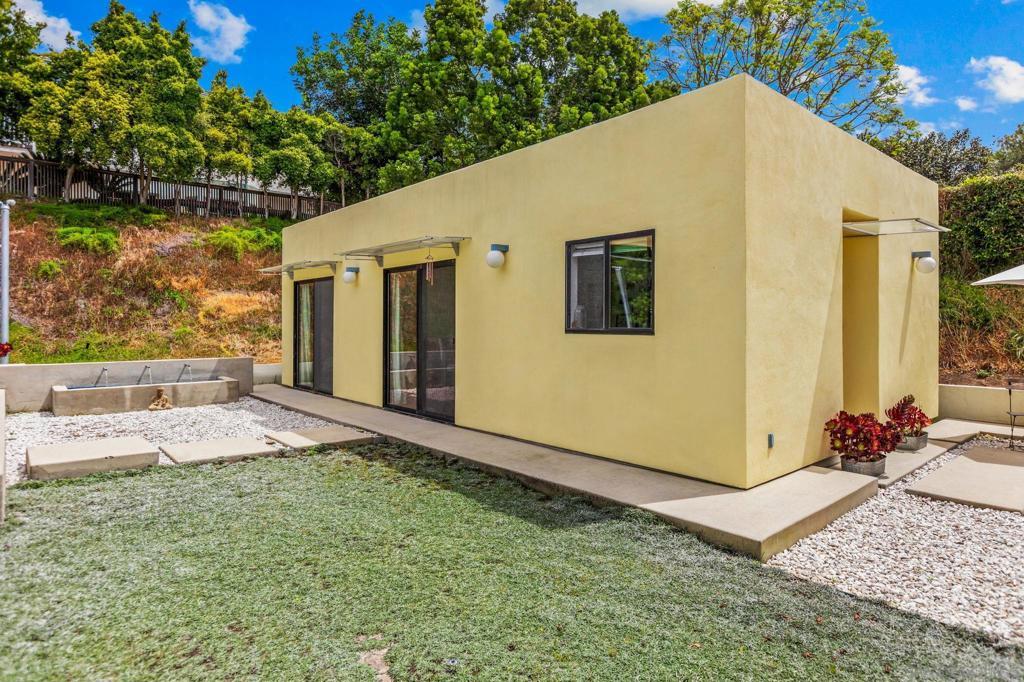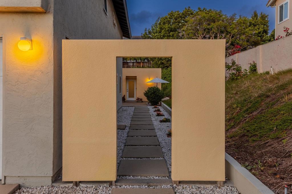 One-of-a-kind modern retreat in the heart of Old La Costa with a detached ADU and resort-style grounds. Set within one of North County’s most sought-after neighborhoods known for its custom and eclectic homes, this architecturally distinct residence offers a rare blend of design, functionality, and flexibility. Inside, curated upgrades create a sleek, contemporary feel, including a striking concrete surround fireplace, bamboo cabinetry, frosted glass accents, and granite flooring throughout. The home’s design is centered around seamless indoor-outdoor living, highlighted by a dramatic architectural archway that opens to a private backyard retreat. The outdoor space is built for entertaining, featuring resort-style grounds and an expansive raised platform patio-perfect for hosting or enjoying quiet evenings at home. A true standout feature is the approximately 500 sq ft detached ADU, complete with a kitchenette, full bathroom, living area, and private bedroom, offering ideal space for guests, multigenerational living, or potential rental income. Ideally located just minutes from shopping, dining, and North County’s renowned beaches, this property presents a rare opportunity to own a truly distinctive home in Old La Costa.
