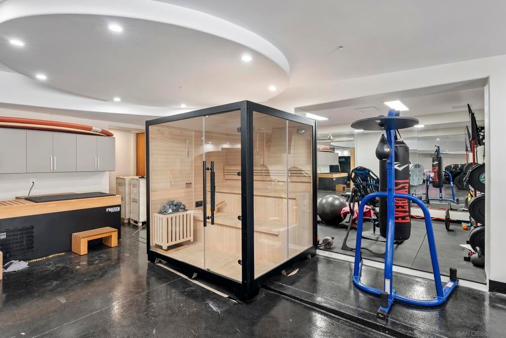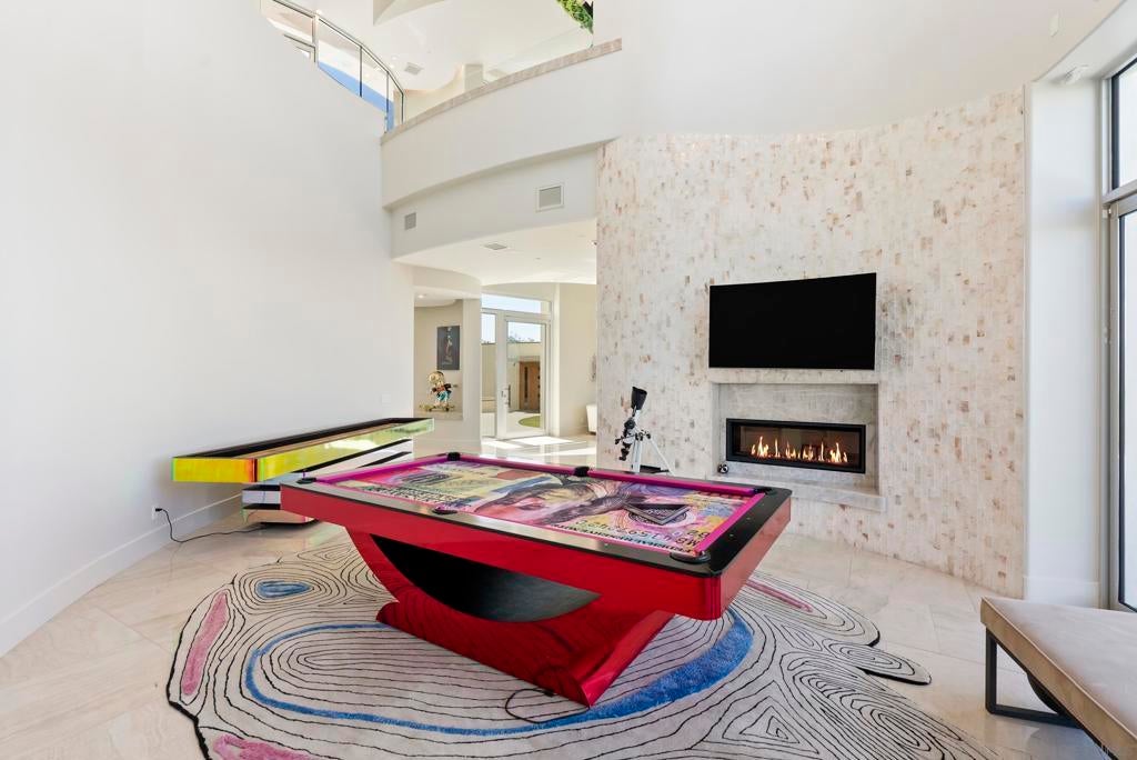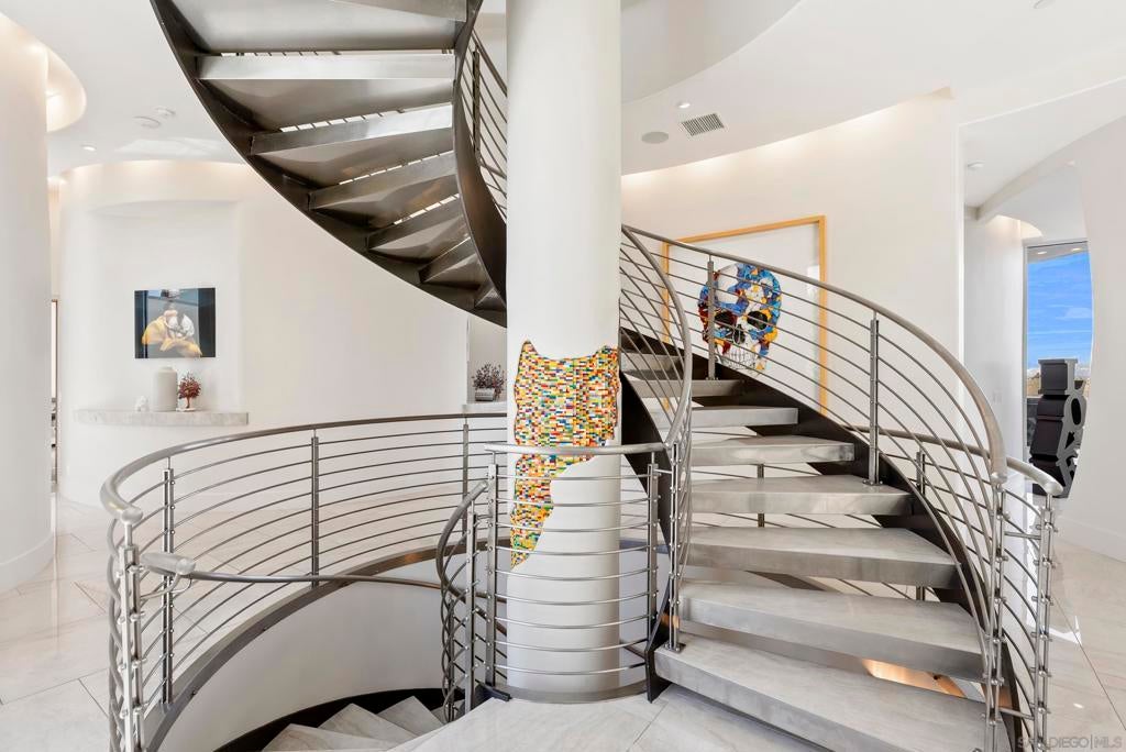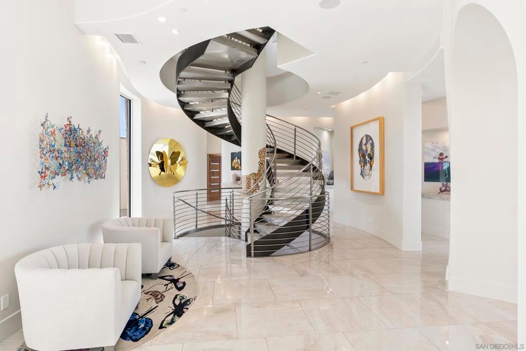 One of a kind resort like estate showcasing some of the most breathtaking views San Diego has to offer, this exceptional 11,080 square-foot home is gracefully set on a private one-acre lot. Designed as a true architectural masterpiece, the property offers unparalleled scale, elegance, and functionality—including an expansive garage accommodating approximately 20 vehicles. A grand driveway leads to a serene front courtyard, creating an immediate sense of privacy. Upon entry, walls of glass frame sweeping panoramic views in every direction, with each room thoughtfully designed to capture the home’s remarkable vantage point—perched as if atop of the world. The main level features an oversized living room and formal dining area, both highlighted by soaring ceilings and an abundance of natural light. The gourmet chef’s kitchen is impeccably appointed with premium stainless-steel appliances, large center island, and a spacious walk-in pantry. Adjacent to the kitchen, an inviting family room and informal dining area provide the perfect setting for everyday living. Completing the main floor are three generously sized ensuite bedrooms and private office. The upper-level primary retreat with truly unrivaled views creates a serene and luxurious escape. The primary suite boasts a spa-inspired bath with a striking freestanding soaking tub and expansive, custom-designed walk-in closets. The lower level is a haven for entertainment and leisure, featuring a car enthusiast’s dream garage, a state-of-the-art home theater, and a stylish bar. Outdoors, the estate continues to impress with a spectacular infinity-edge pool overlooking the surrounding landscape, a fully equipped outdoor kitchen, and multiple flat areas of turf for recreation and play. Fully owned solar enhances efficiency, completing this exceptional property.