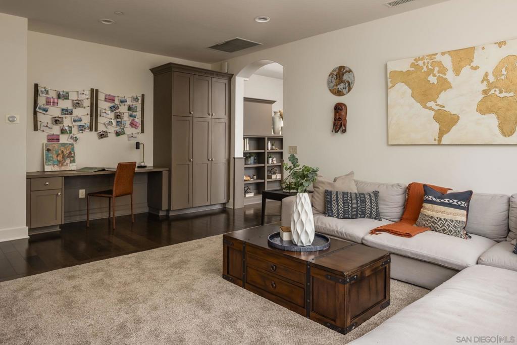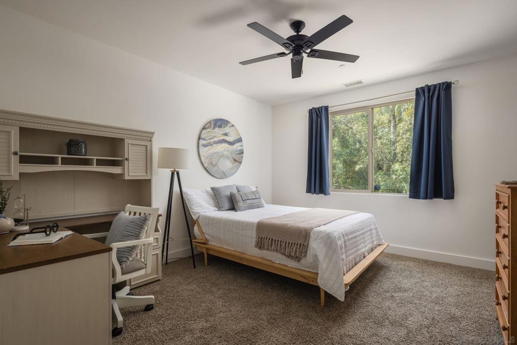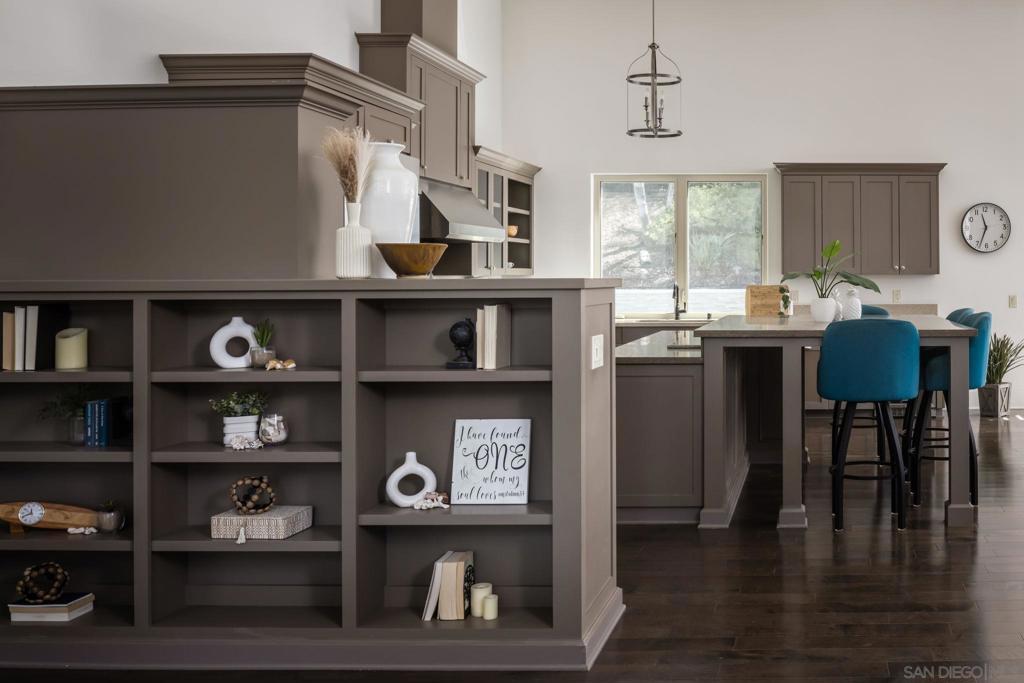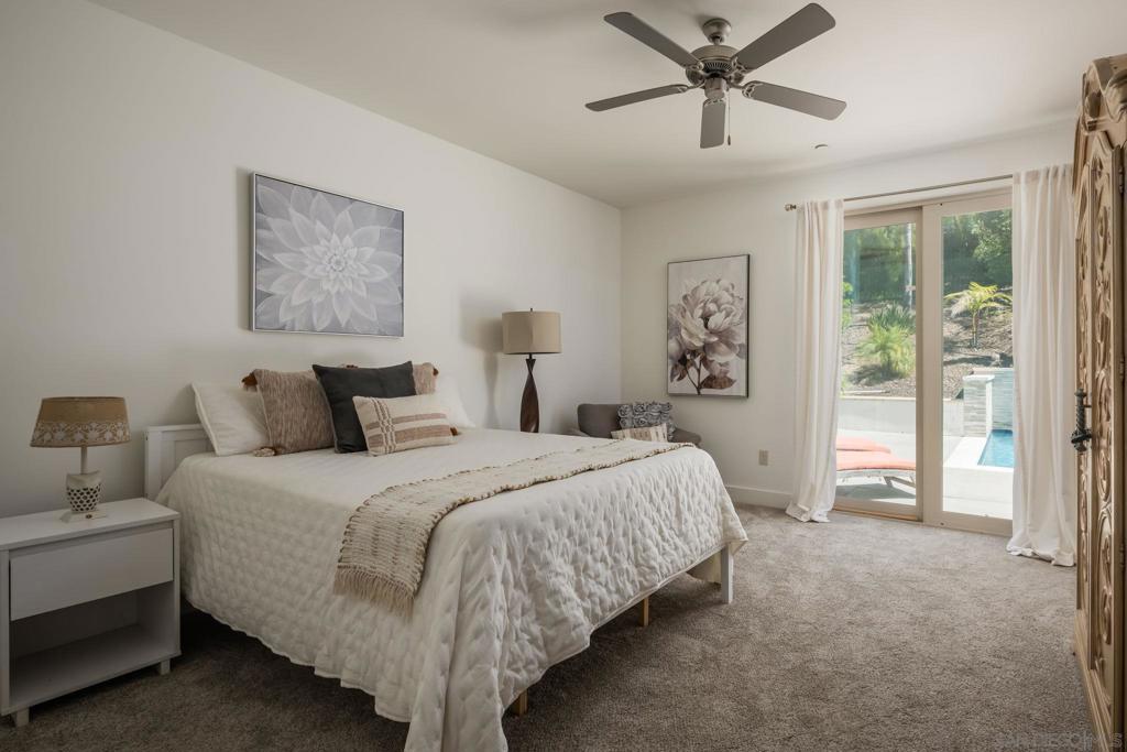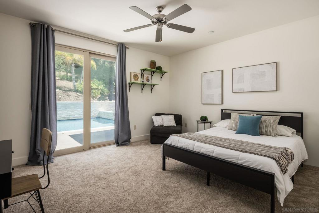 Nestled on a serene one-acre corner lot in the prestigious Trails of Rancho Bernardo, this custom single-story home offers resort-style living at its finest. Classic and timeless in design, the 2015-built residence delivers exceptional multi-generational versatility through a private detached casita (ADU), generous living spaces, and a backyard oasis built for year-round enjoyment. Inside, soaring ceilings flood the home with light and enhance the flow between living spaces. The heart of the home, the chef’s kitchen, overlooks the pool and is appointed for both daily living and entertaining, featuring an oversized island with seating, dining nook, wine fridge, and premium Thermador appliances including a built-in refrigerator, 6-burner range with griddle, and double ovens. The formal dining room, currently styled as a game room with billiards, speaks to the home’s flexibility. Folding glass doors span the great room, creating seamless indoor-outdoor living. The primary suite, privately positioned in its own wing, offers backyard access and a spa-like bath with soaking tub, walk-in shower, dual vanities, and an oversized walk-in closet. Each secondary bedroom is a generous en-suite. A family room with built-ins, spacious laundry room, and dedicated flex space complete the interior. The detached casita (ADU) offers a private bed/bath, kitchenette, and garage on one level. The backyard features a solar-heated pool and spa, convertible patio cover, and mature landscaping. Owned solar and a 3-car garage complete the offering, all within Poway Unified and minutes to I-15.