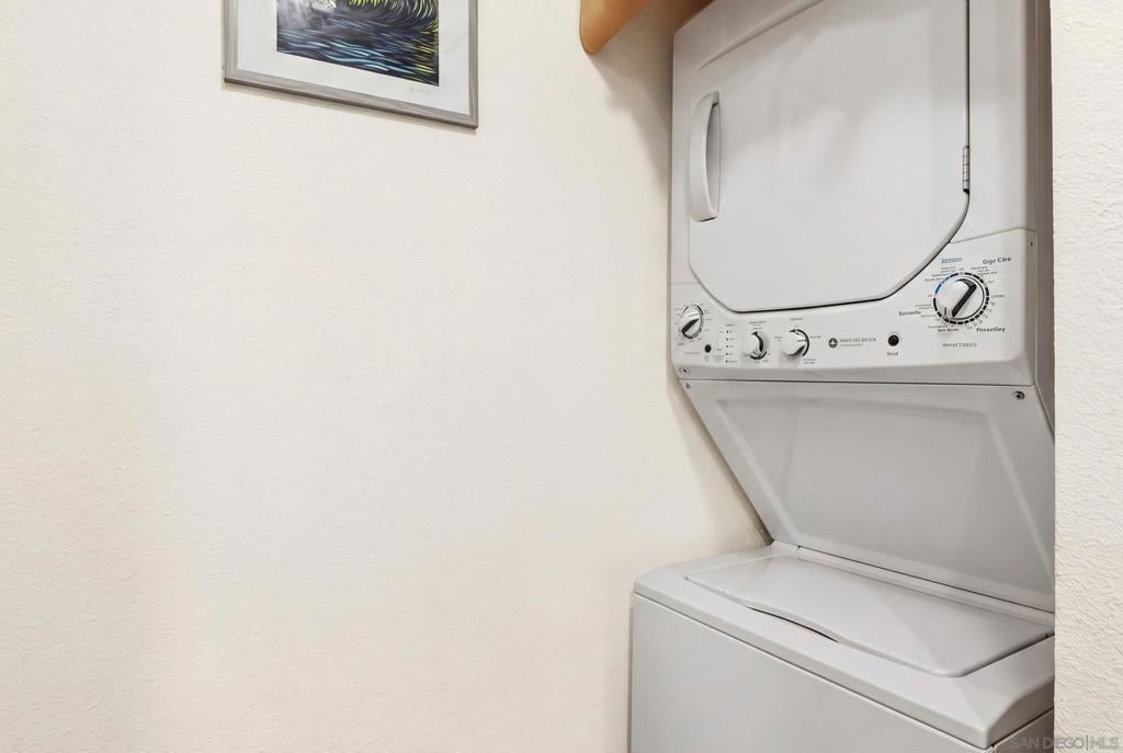 This top-floor corner unit in the resort-style Pacific Pines community offers a private balcony with storage and a highly functional layout. The interior features 1 bedroom with spacious walk-in closet, a walk-in shower, stainless steel appliances in kitchen, plantation shutters on all windows, a cozy fireplace, and the significant convenience of in-unit laundry located right in the closet. Residents benefit from a dedicated covered carport space and an HOA fee that includes water service, making for a simplified and comfortable living experience. The community provides an active lifestyle with access to a clubhouse, gym, pool, spa, and tennis courts. Practical additions like EV charging stations and a fob entry system enhance the property's utility. Situated in a prime Encinitas location, this condo is a great find for those seeking a well-maintained home with extensive amenities in a peaceful coastal environment.