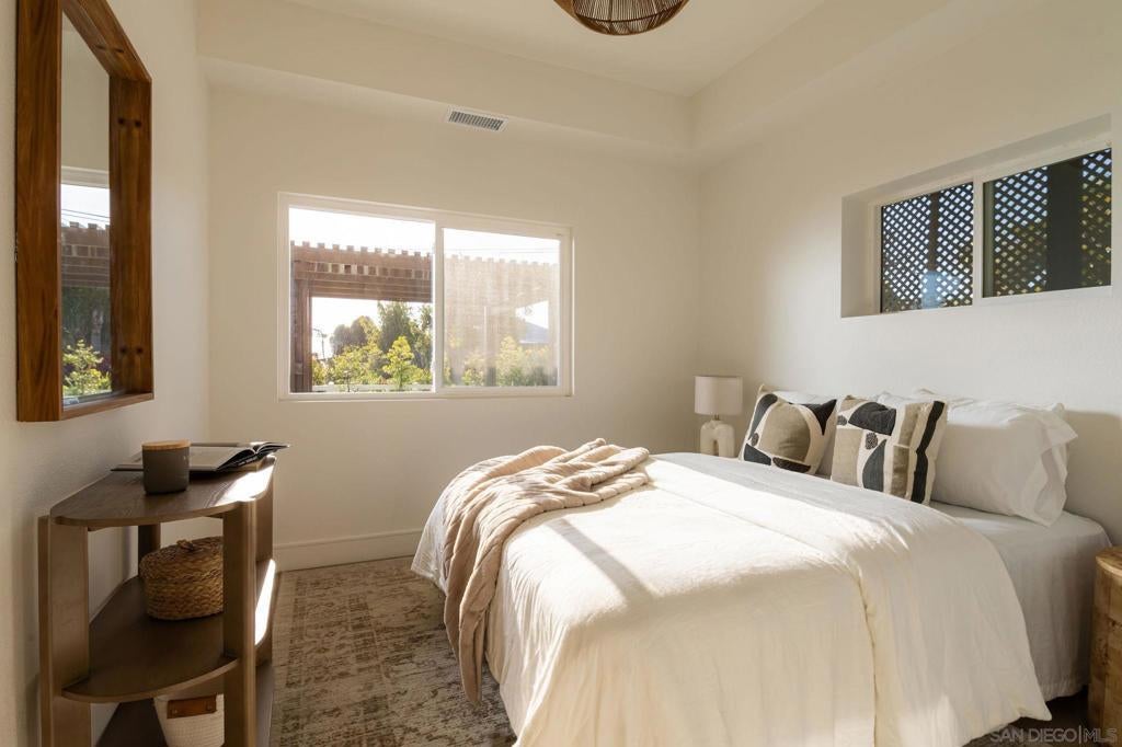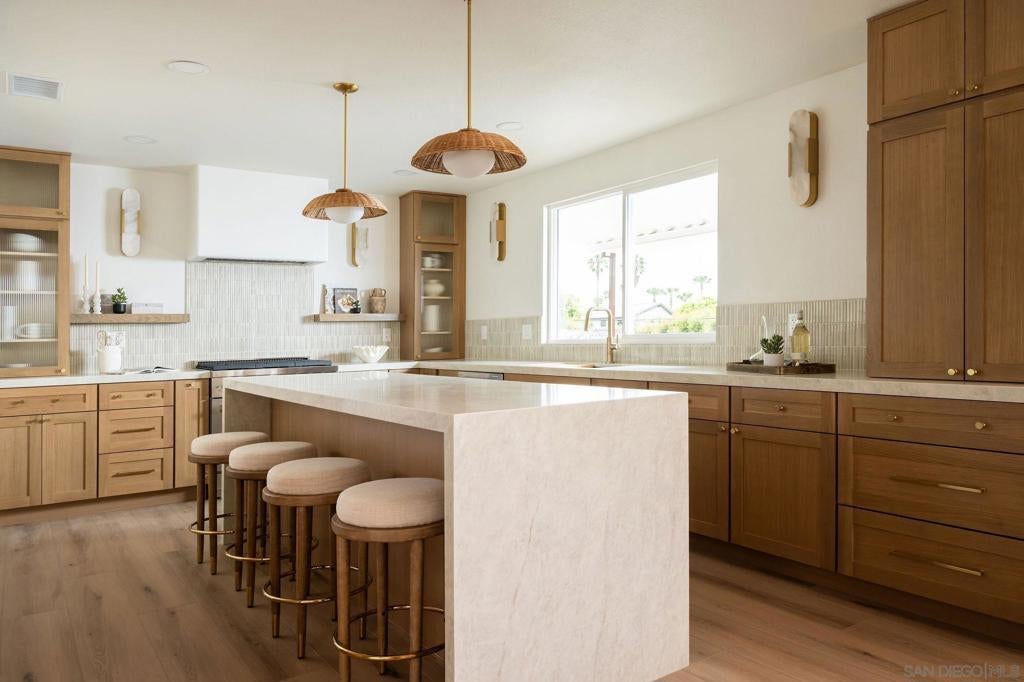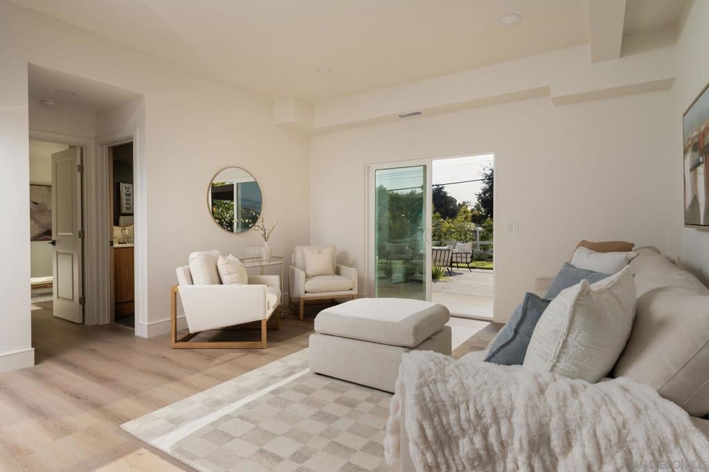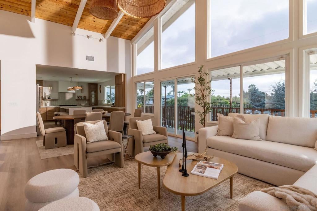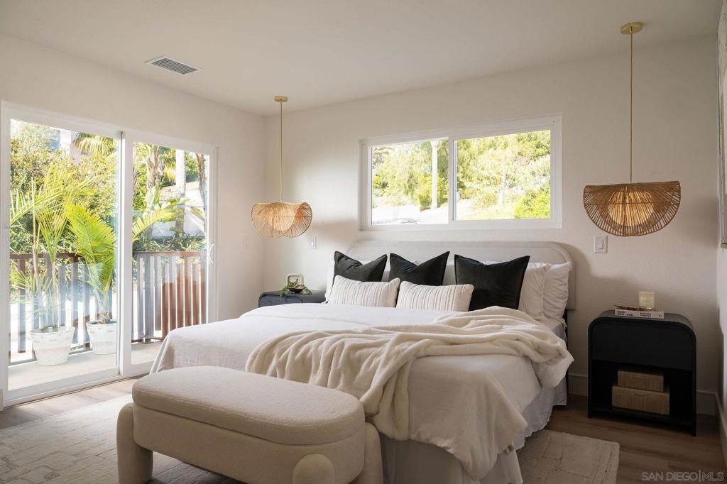 Designed for how you live! A rare opportunity to own a design-forward home with functionality, and a magazine-worthy aesthetic. Beyond what you see, this home is built around what you feel: comfort, ease, & confidence supported by major upgrades like a new roof, new HVAC, new electrical panel, owned solar, fruit trees, & a garden for home-grown fresh produce. The cherry on top: your own space for pickleball with court lights for evening matches! Both levels have their own entrance, are wheelchair accessible, & have fully fenced outdoor spaces. The main level boasts a dramatic great room flooded with natural light, & peekaboo ocean views. A wraparound balcony offers multiple seating areas & outdoor dining. The primary retreat features balcony access, a walk-in closet, & a spa-like bathroom. Downstairs is ideal for guests, multigenerational living, or a home-based business. It offers great versatility with 2 bedrooms, its own living room, outdoor space, & parking. The 4th bedroom includes a bonus space, perfect for an office, home gym, media room, or whatever fits! Schools are ranked amongst the highest for test scores, student progress, and college readiness, with Capri Elementary & parks just a short walk away. 2 miles to the beach & Encinitas’ 101, with top restaurants, boutique gyms & shops. With 1551 Burgundy Rd, you are buying more than a home. You are buying a lifestyle.