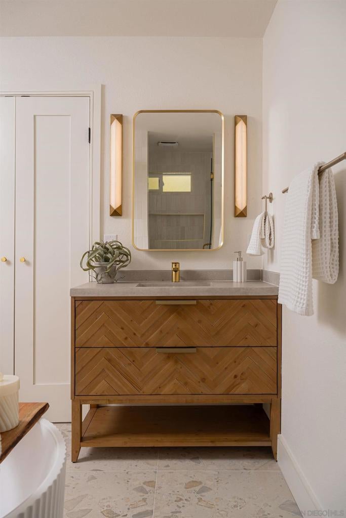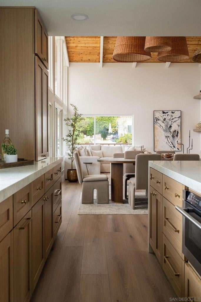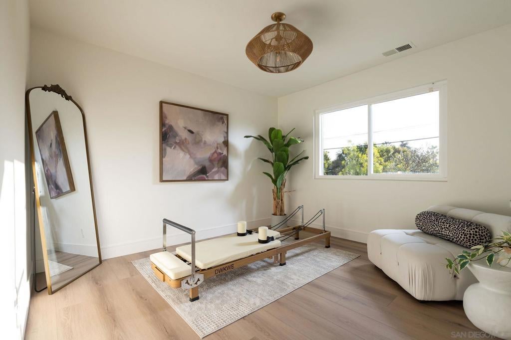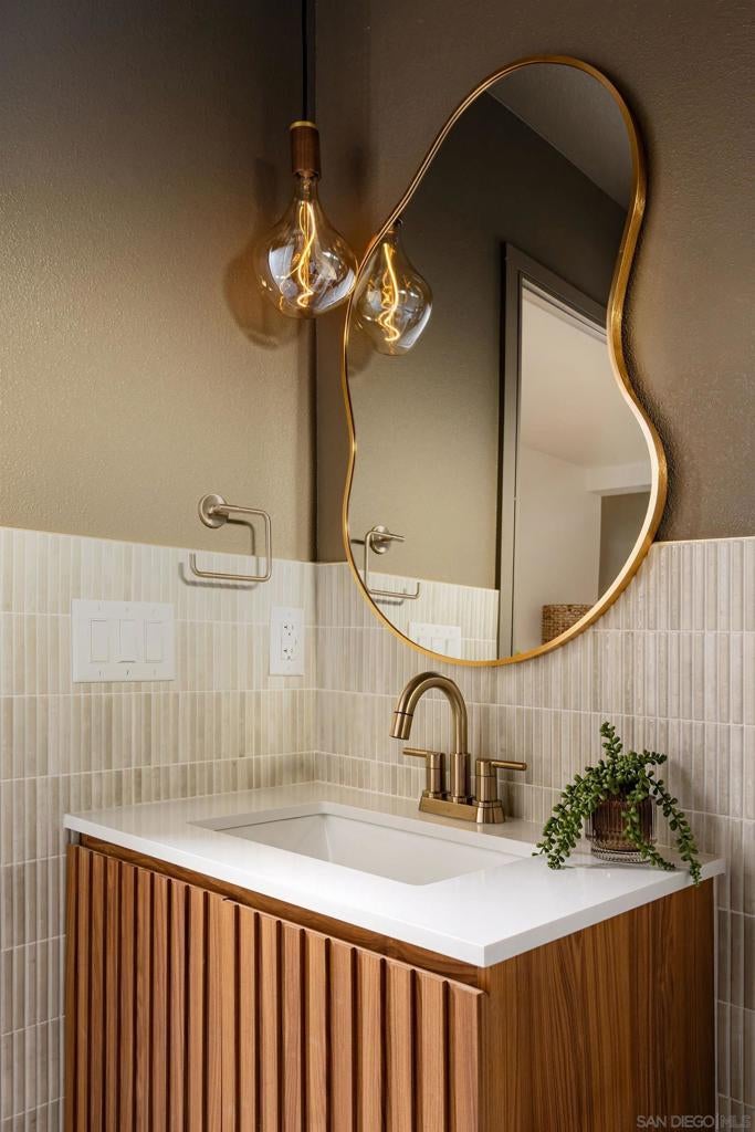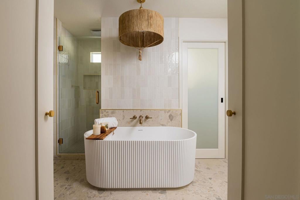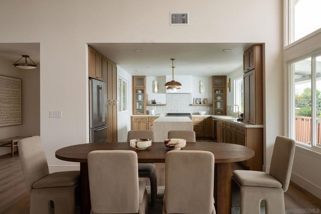 Designed for how you live! A rare opportunity to own a design-forward home with functionality, and a magazine-worthy aesthetic. Beyond what you see, this home is built around what you feel: comfort, ease, & confidence supported by major upgrades like a new roof, new HVAC, new electrical panel, owned solar, fruit trees, & a garden for home-grown fresh produce. The cherry on top: your own space for pickleball with court lights for evening matches! Both levels have their own entrance, are wheelchair accessible, & have fully fenced outdoor spaces. The main level boasts a dramatic great room flooded with natural light, & peekaboo ocean views. A wraparound balcony offers multiple seating areas & outdoor dining. The primary retreat features balcony access, a walk-in closet, & a spa-like bathroom. Downstairs is ideal for guests, multigenerational living, or a home-based business. It offers great versatility with 2 bedrooms, its own living room, outdoor space, & parking. The 4th bedroom includes a bonus space, perfect for an office, home gym, media room, or whatever fits! Schools are ranked amongst the highest for test scores, student progress, and college readiness, with Capri Elementary & parks just a short walk away. 2 miles to the beach & Encinitas’ 101, with top restaurants, boutique gyms & shops. With 1551 Burgundy Rd, you are buying more than a home. You are buying a lifestyle.