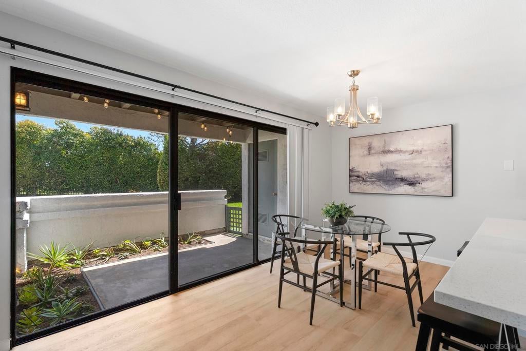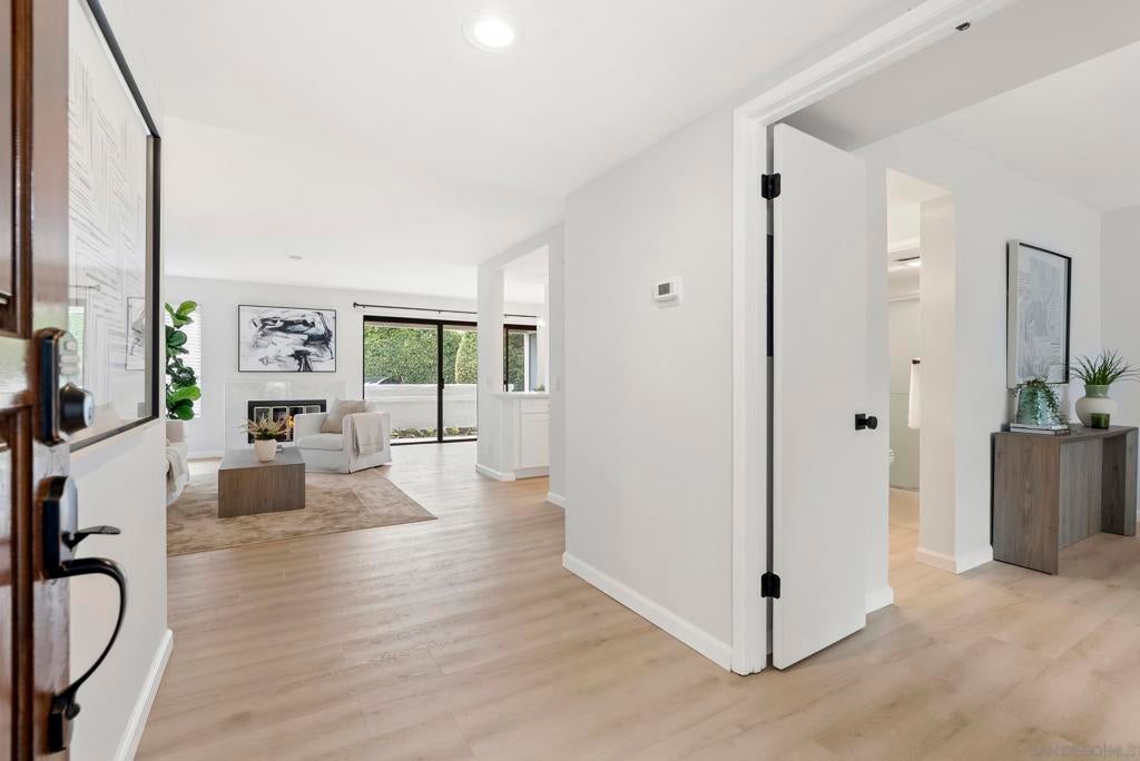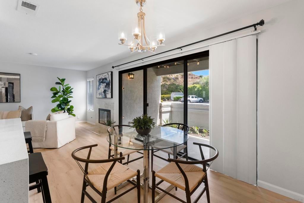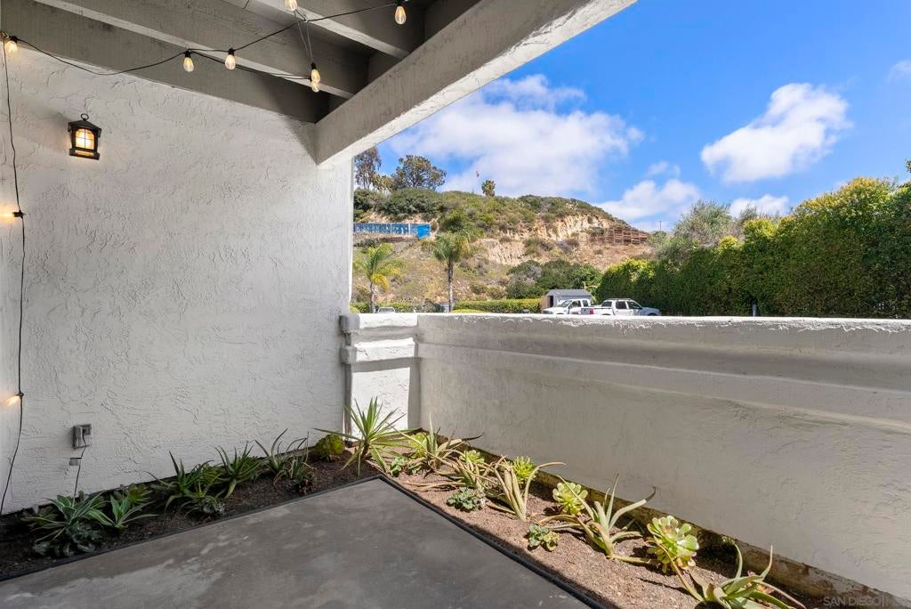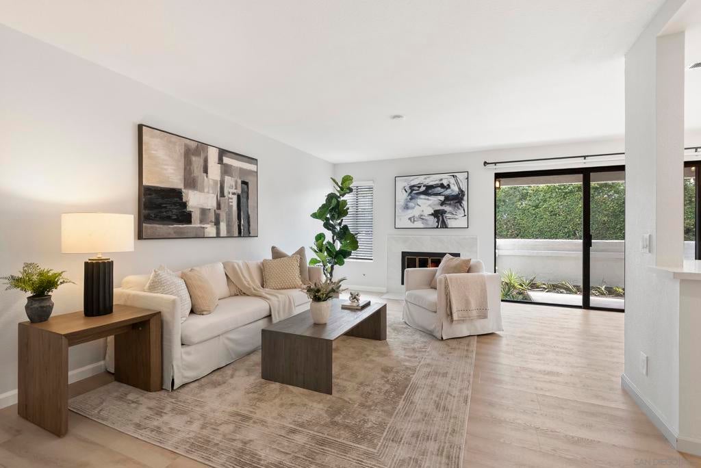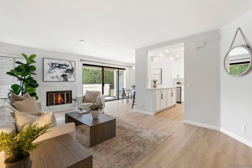 Welcome to Triple Crown - one of Solana Beach's most sought-after communities, tucked quietly west of the I-5. This fully remodeled condo sits in a quiet, private location overlooking a lush greenbelt, offering a peaceful retreat. Inside, you’ll find a fully remodeled kitchen featuring quartz countertops, updated cabinetry, and stainless-steel appliances, while a cozy gas fireplace anchors the living space - perfect for those cool coastal evenings. The spacious primary suite opens directly onto a private patio and includes an ensuite bathroom with a walk-in shower, all-new fixtures, and an updated vanity. A second private patio gives you even more outdoor space to breathe. Practical details are just as polished: stacked in-unit washer/dryer and a private detached one-car garage. Step outside and you're minutes from the Del Mar Racetrack, the Cedros Design District, boutique shops, and some of the best dining the North County coast has to offer. And just a 3 minute car ride or a 20-minute stroll to Dog Beach. Whether you're walking the shoreline or grabbing a table at a favorite local spot, this location puts it all within reach without sacrificing the quiet, tucked-away feel that makes Triple Crown so special.
