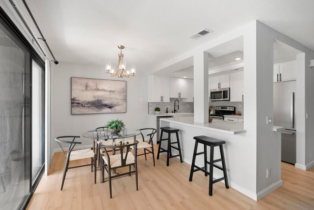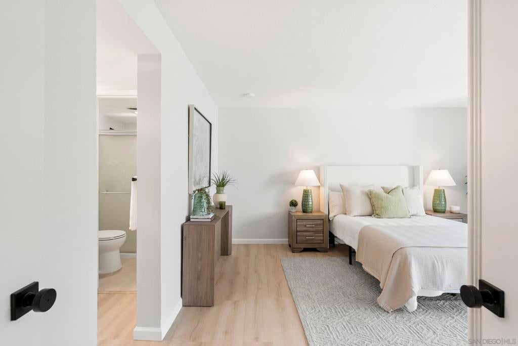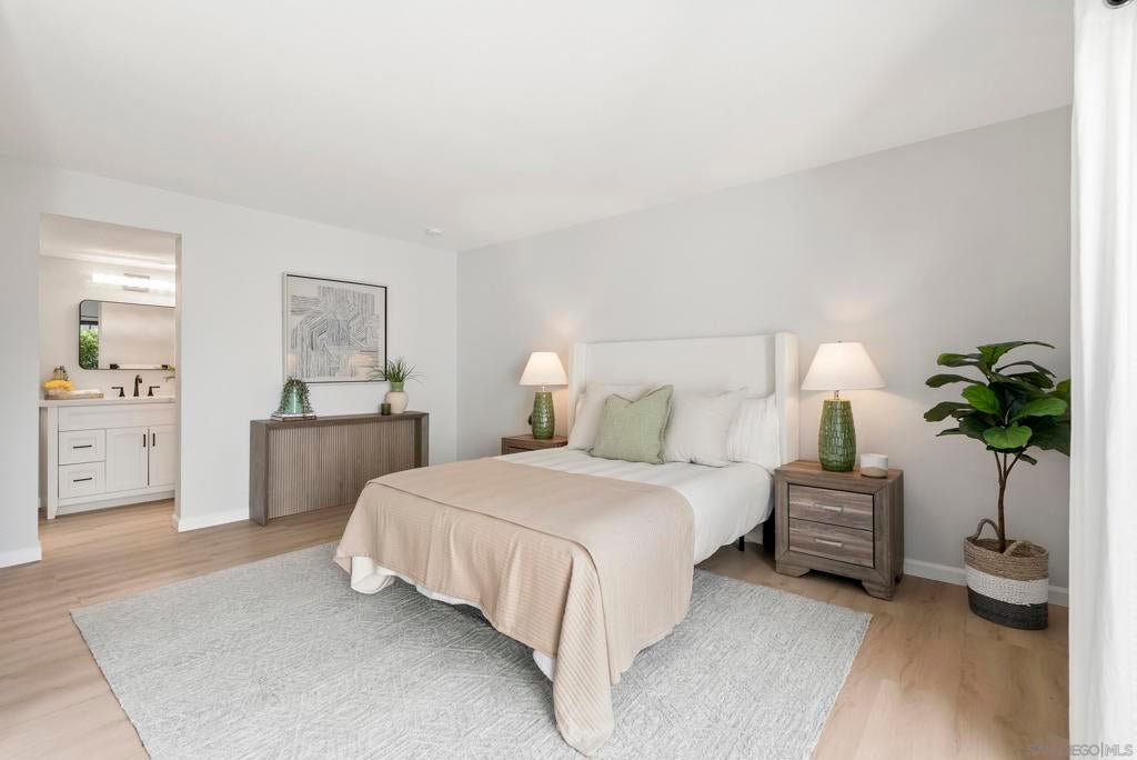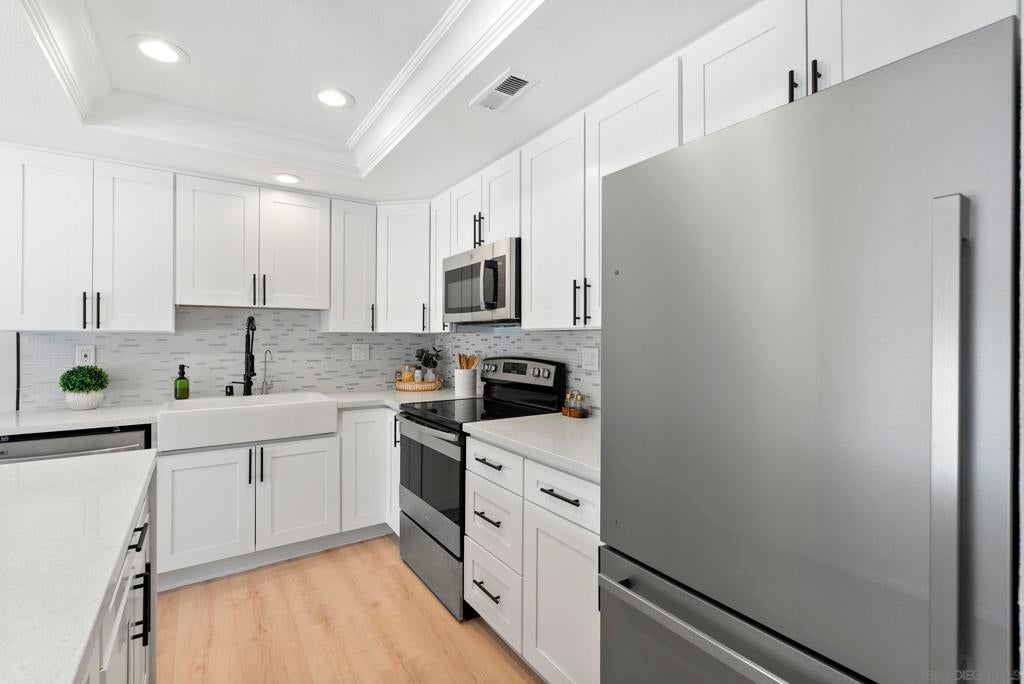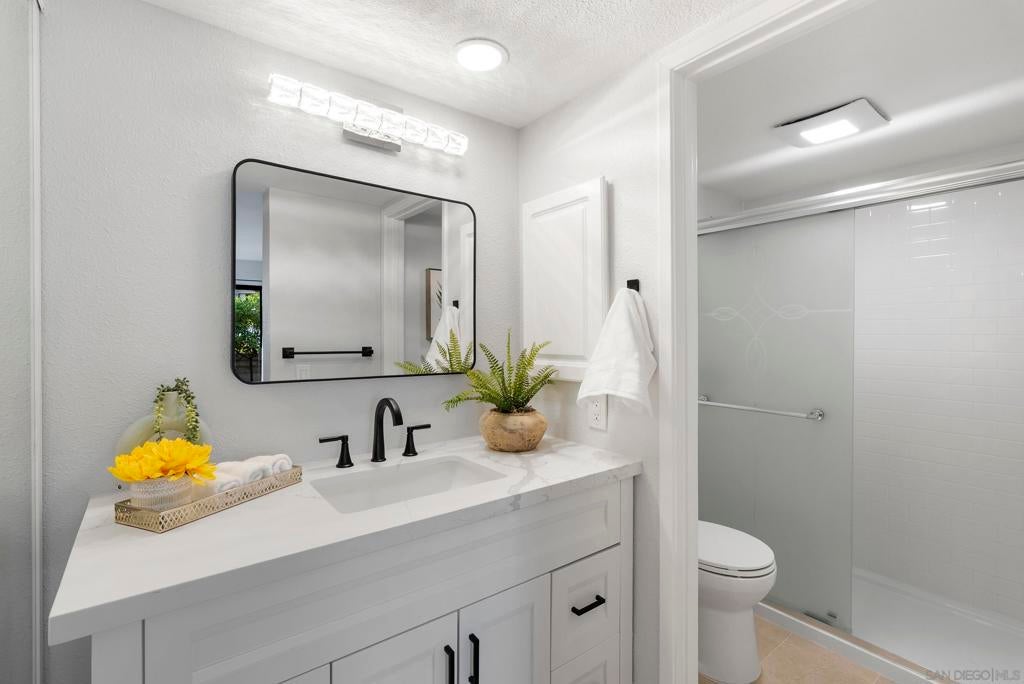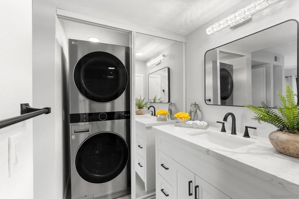Welcome to Triple Crown - one of Solana Beach's most sought-after communities, tucked quietly west of the I-5. This fully remodeled condo sits in a quiet, private location overlooking a lush greenbelt, offering a peaceful retreat. Inside, you’ll find a fully remodeled kitchen featuring quartz countertops, updated cabinetry, and stainless-steel appliances, while a cozy gas fireplace anchors the living space - perfect for those cool coastal evenings. The spacious primary suite opens directly onto a private patio and includes an ensuite bathroom with a walk-in shower, all-new fixtures, and an updated vanity. A second private patio gives you even more outdoor space to breathe. Practical details are just as polished: stacked in-unit washer/dryer and a private detached one-car garage. Step outside and you're minutes from the Del Mar Racetrack, the Cedros Design District, boutique shops, and some of the best dining the North County coast has to offer. And just a 3 minute car ride or a 20-minute stroll to Dog Beach. Whether you're walking the shoreline or grabbing a table at a favorite local spot, this location puts it all within reach without sacrificing the quiet, tucked-away feel that makes Triple Crown so special.