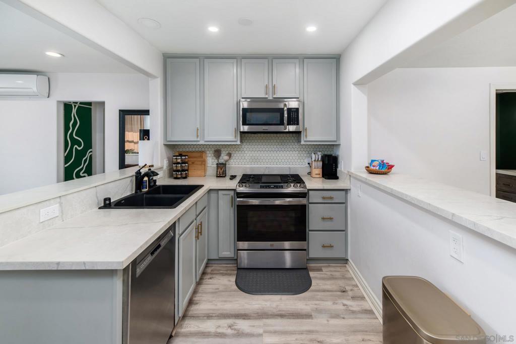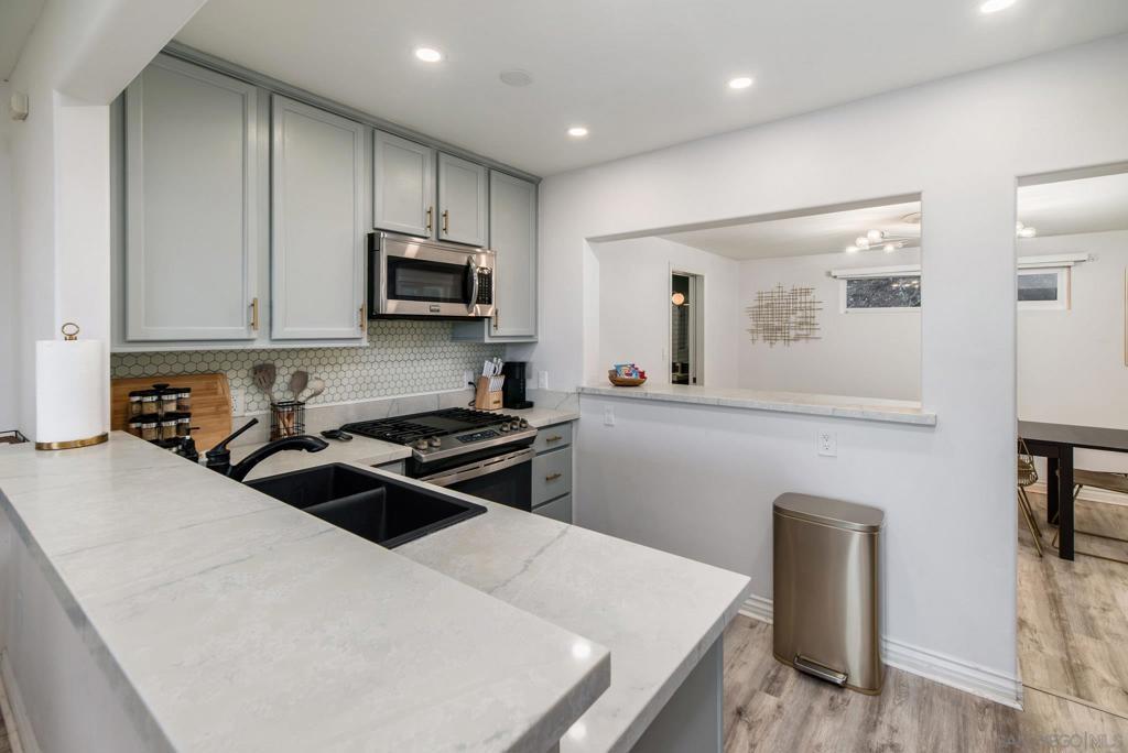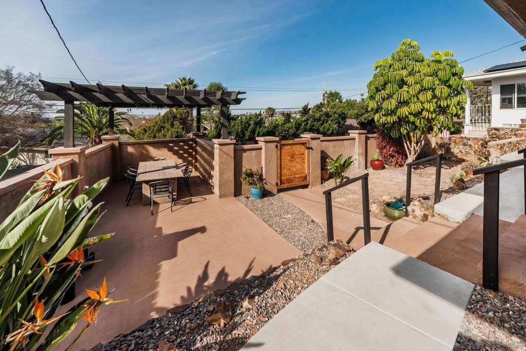 Views + Paid Solar | Fully Renovated with Income Potential Turnkey 3 bed, 2 bath home offering the perfect blend of comfortable living and short-term rental income potential. Fully updated throughout, this home features a bright, open layout with defined living, dining, and work spaces. The upgraded kitchen showcases modern cabinetry, sleek quartz-style countertops, stainless steel appliances, and a clean, designer tile backsplash, all opening seamlessly to the main living area, perfect for everyday living and entertaining. The bathrooms has been tastefully renovated with updated vanity, modern fixtures, and a beautifully finished walk-in shower. Wide plank flooring runs throughout the home, creating a cohesive, durable, and contemporary feel. Enjoy comfort year-round with mini-split systems in all rooms, complemented by owned solar for long-term energy savings. Step outside to a beautifully designed garden-style setting featuring low-maintenance landscaping, multiple seating areas, and a front patio deck with a pergola. A 1-car detached garage sits below, while the elevated outdoor space is perfect for enjoying stunning views and sunsets, entertaining guests, or simply relaxing. Located just minutes from historic La Mesa Village, dining, and local attractions, making it highly desirable for both residents and short-term guests. A clean, move-in ready property with strong upside, flexibility, and immediate usability.