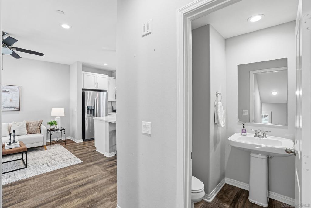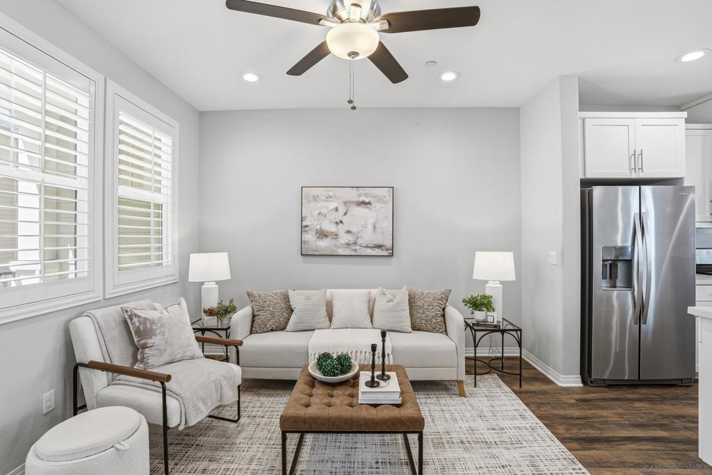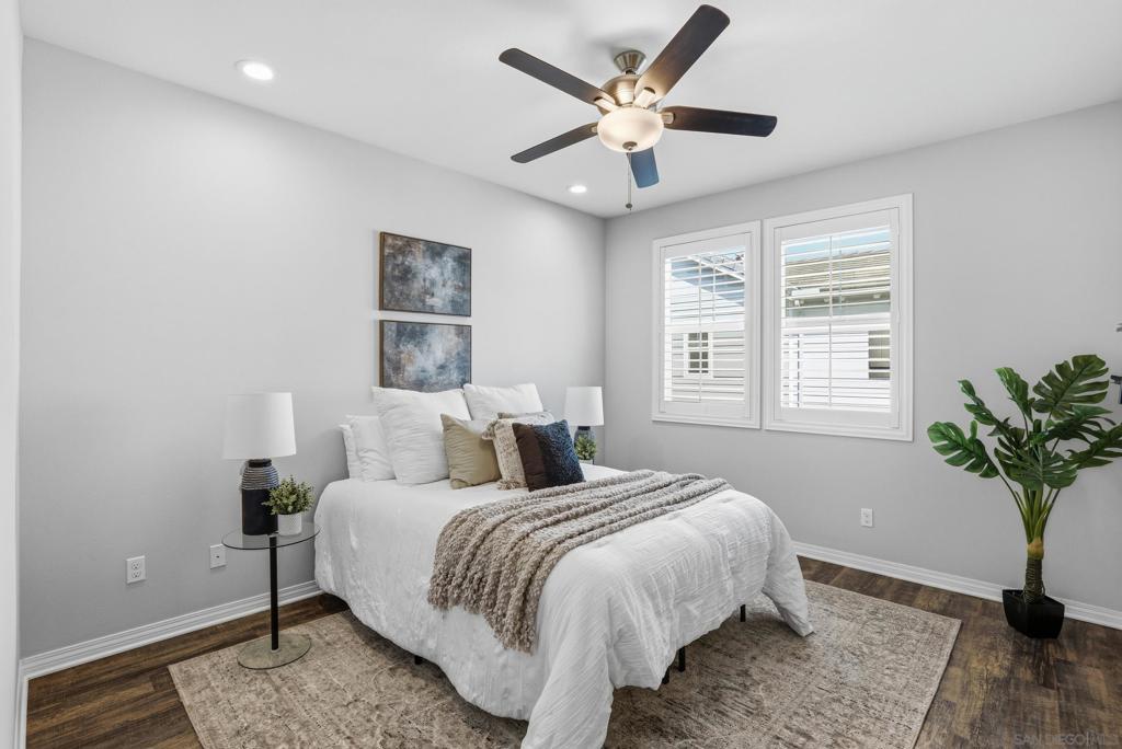 VA APPROVED! Tucked away in the sought-after Bayside Landing community, this newer-built (2018) townhome offers the perfect blend of comfort, style, and convenience. Featuring one of the few desirable two-bedroom floor-plans with a true open-concept layout and ample island, the kitchen is designed for both everyday living and easy entertaining. Upstairs, you’ll find luxury vinyl flooring throughout, along with a thoughtfully designed layout that includes laundry on the same level as the bedrooms. The spacious primary suite offers a walk-in closet and an oversized en-suite bath, creating a private retreat to unwind. The entire unit has custom built-ins and shelving throughout, including both closets, bar area, dining room and bathroom. For further convenience, the unit also has an upgraded full two car garage with storage, epoxy coating, and a tankless hot water heater. Located just steps from the Bayshore Bikeway, this home is ideal for an active coastal lifestyle, whether you’re biking into Coronado, heading toward the upcoming Gaylord Pacific Resort, cruising over to the new local Suncoast Coop, or making your way to Seacoast Avenue for dining, coffee shops, and beach days. Bayside Landing residents enjoy access to resort-style amenities including a pool, hot tub, and community BBQ areas.